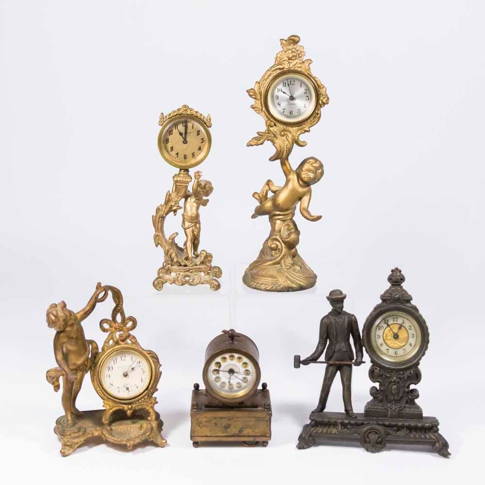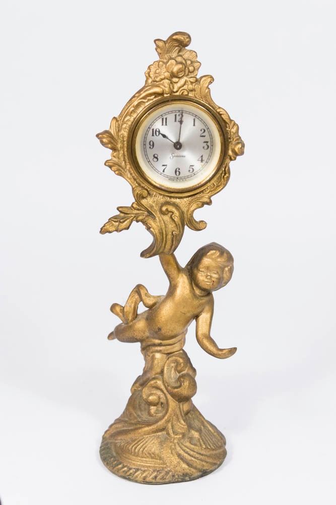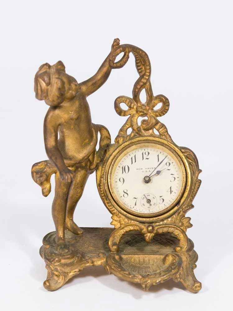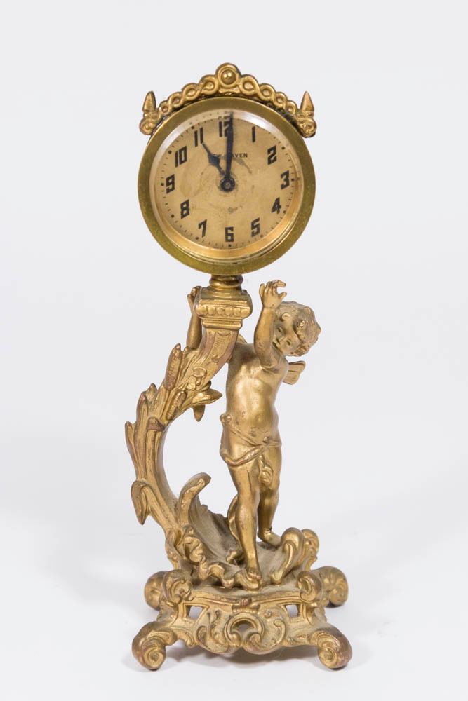 4 figural desk clocks with cherubs. Tallest approx. 11" H. (6055)
