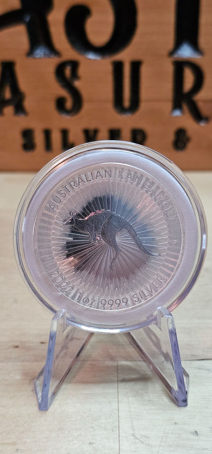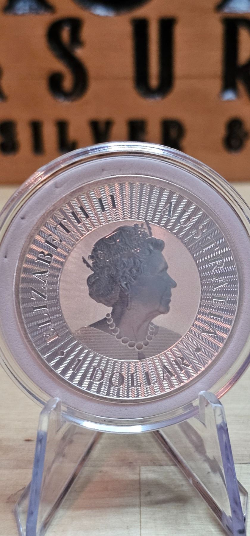 The 1 oz Australian Koala 2022 Silver Coin features a charming depiction of a koala resting in a eucalyptus tree, showcasing the beauty of this iconic Australian marsupial. Crafted from 99.99% pure silver, the coin is produced by the Perth Mint and features intricate detailing that highlights the koala’s fur and natural habitat. The obverse displays the effigy of Queen Elizabeth II. With its high-quality minting and unique annual design, the Koala coin is a popular choice among collectors and investors, celebrating Australia’s wildlife and heritage.