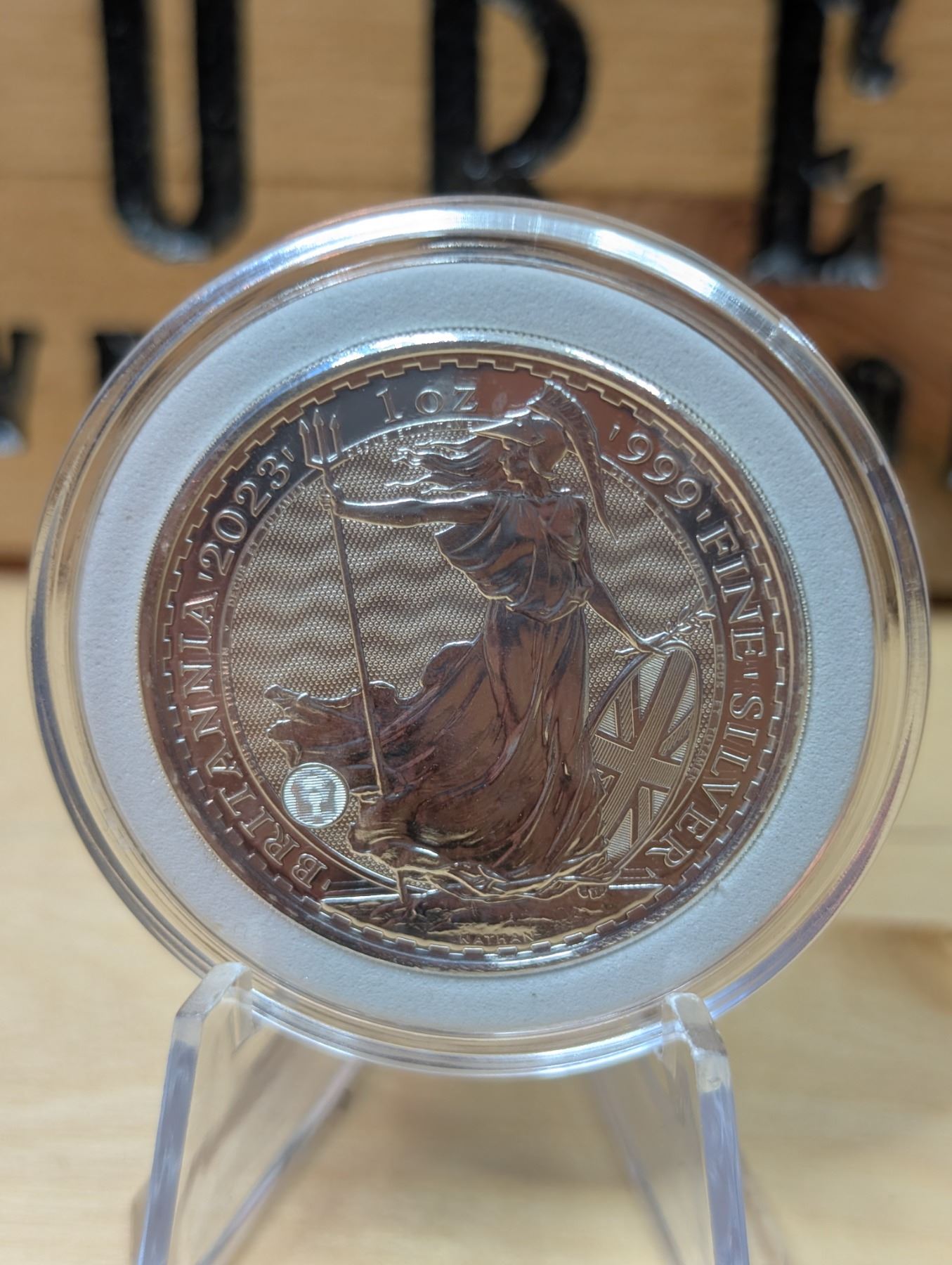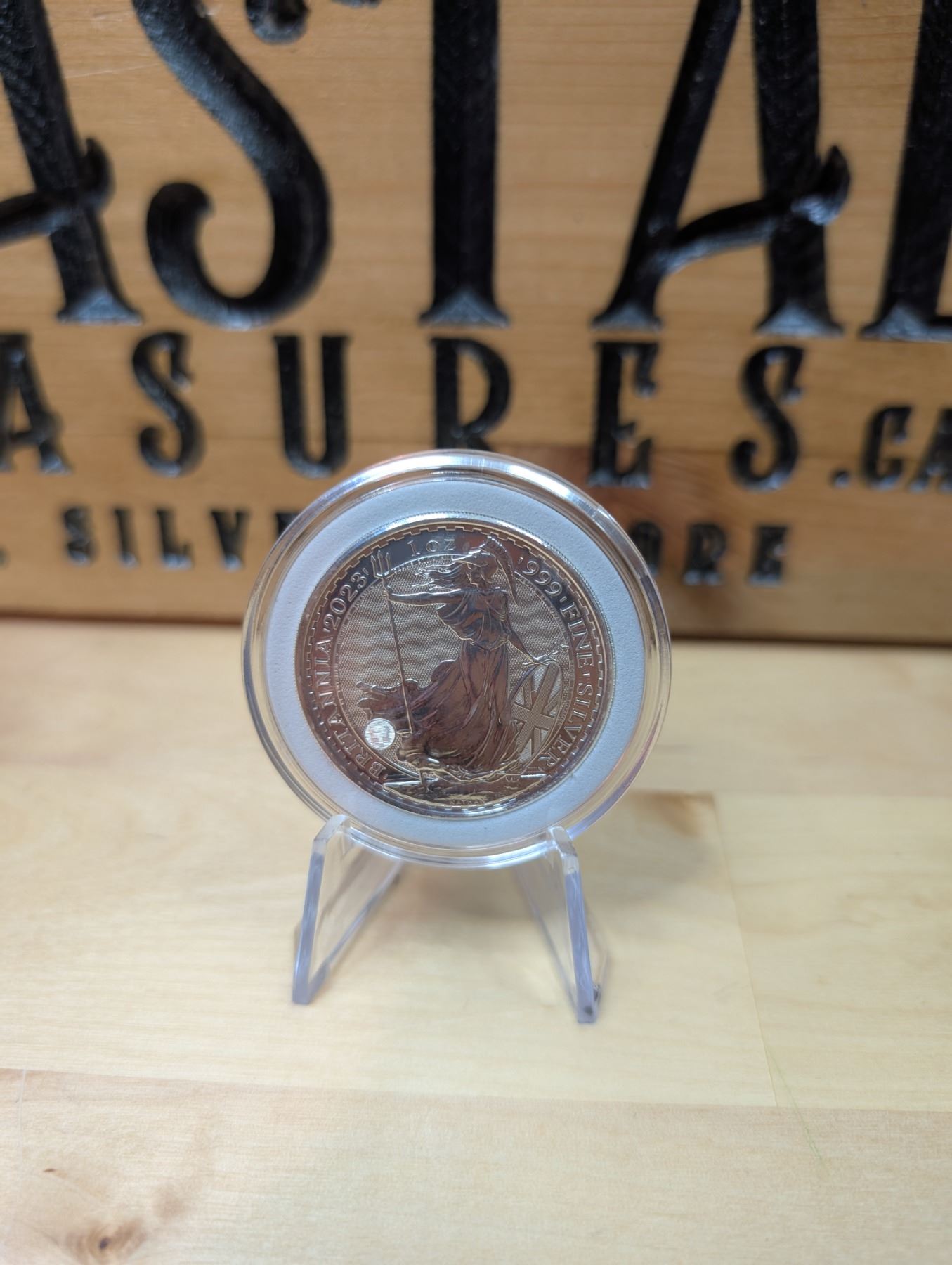 The 1 oz Britannia 2023 Silver Coin is part of the popular Britannia series, produced by the Royal Mint. It contains 1 ounce of .999 fine silver and features the iconic image of Britannia, symbolizing strength and resilience. The 2023 edition features an updated design with enhanced security features, such as a new background wave pattern and a holographic foil that changes in the light, making it more difficult to counterfeit. The coin is widely sought after by collectors and investors alike.