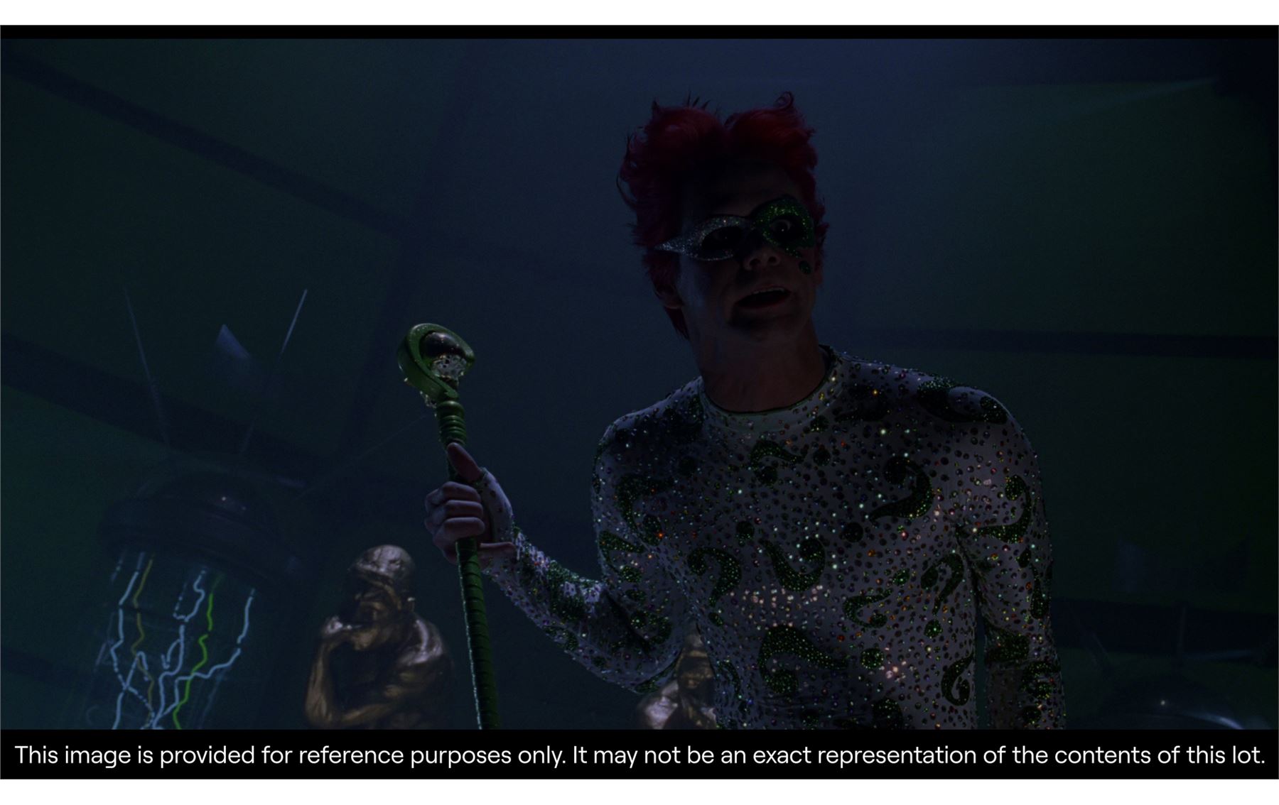 The Riddler's (Jim Carrey) green cane with skull from Joel Schumacher's superhero sequel Batman Forever. The Riddler utilised his flashy green cane during the climatic scene where he forced Batman (Van Kilmer) to decide between saving his partner Robin (Chris O'Donnell), or his love interest Dr. Meridian (Nicole Kidman).