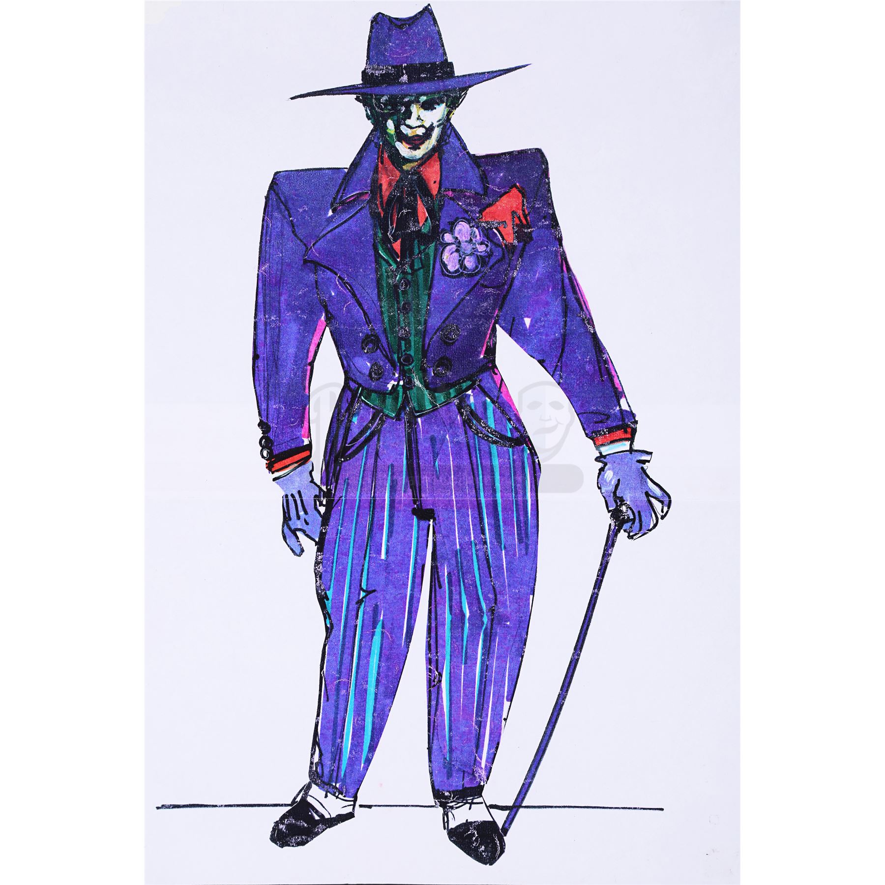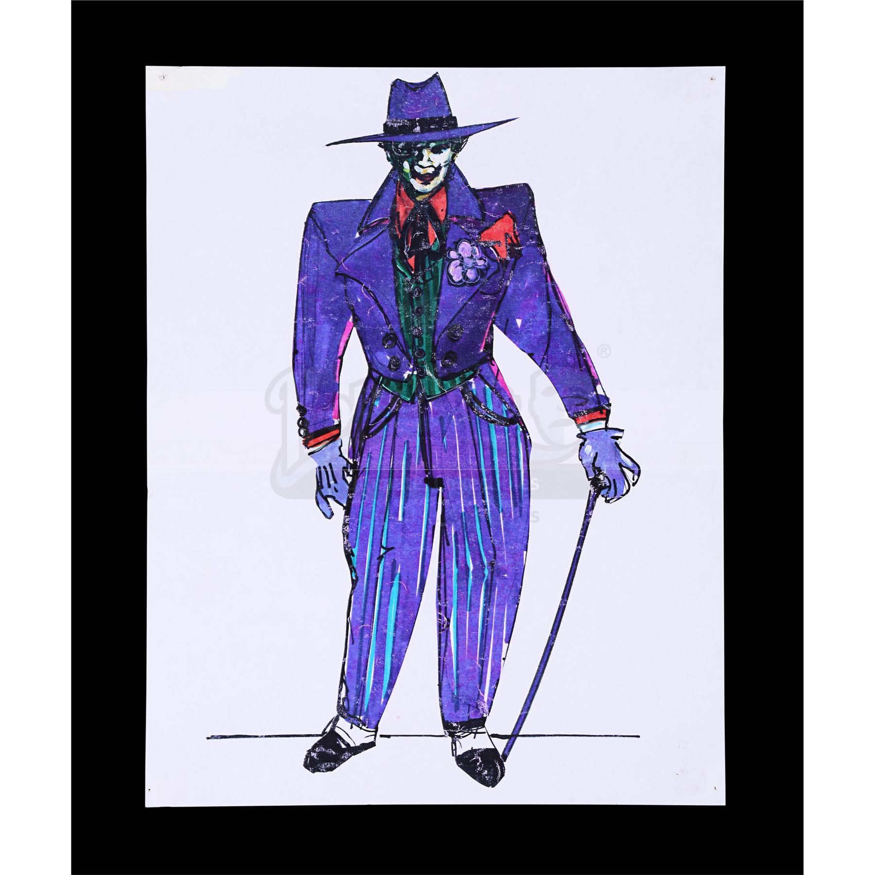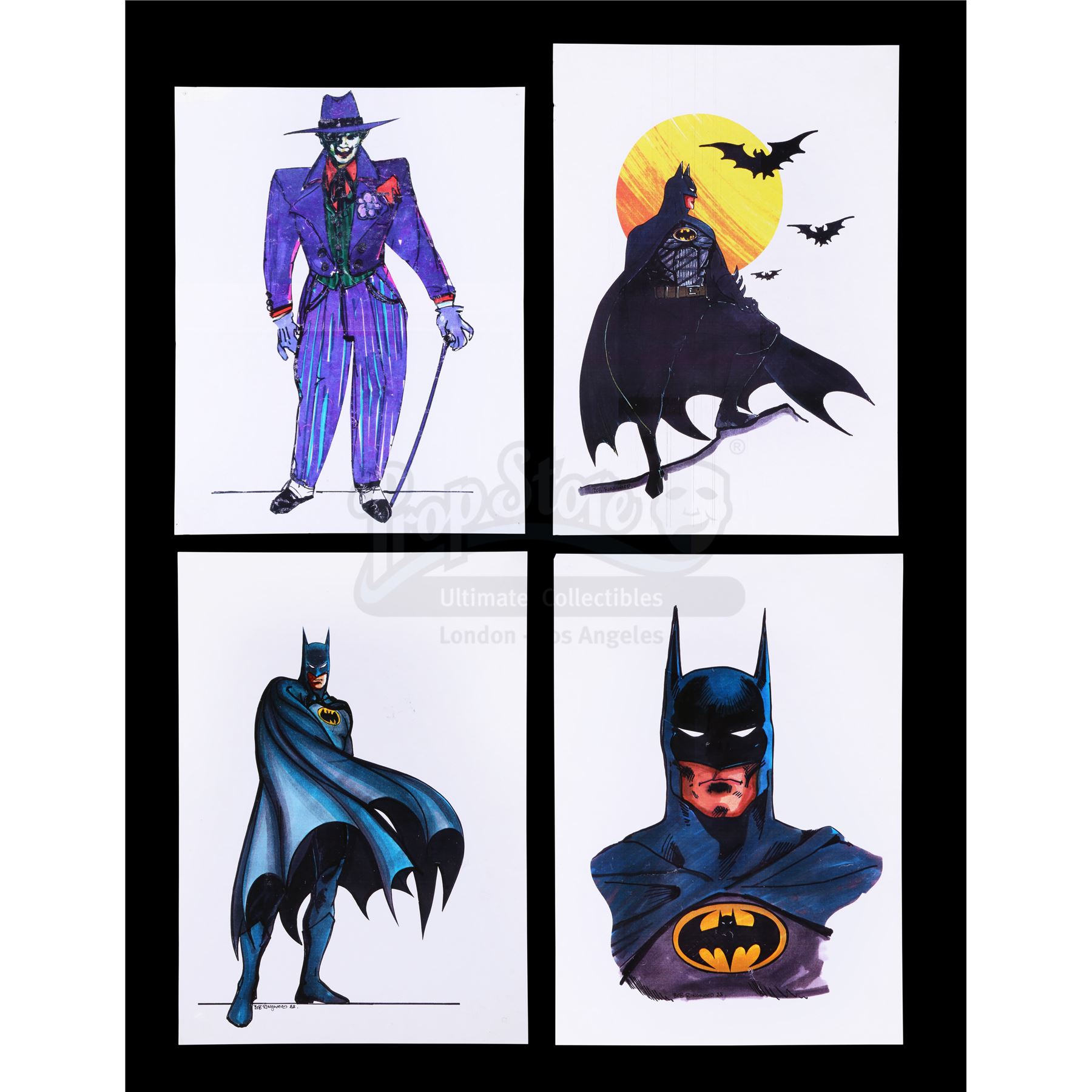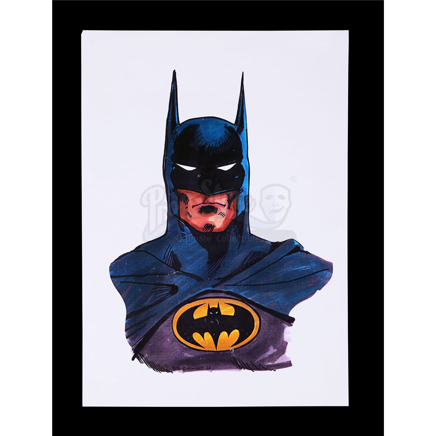 This lot will be auctioned on Wednesday, June 30th. The auction will begin at 9:00am PDT and lots are sold sequentially via live auctioneer; tune in to the live streaming broadcast on auction day to follow the pace. Note other lots in the auction may close on June 29th or July 1st. Costume design prints for Batman (Michael Keaton) and The Joker (Jack Nicholson) from the production of Tim Burton's superhero film Batman. This lot was originally part of a Batman prop exhibition displayed at Harrods. The four prints by Academy Award-nominated costume designer Bob Ringwood include two Batman designs, a close-up of his cowl and chest, and an illustration of the Joker. They exhibit light edge wear, pinholes, and fold lines, but are in good overall condition. Dimensions: (largest) 16.5" x 11.5" (42 cm x 29.5 cm) Sold without copyright; see copyright notice in the Buyer's Guide. Estimate: $1,000 - 1,500