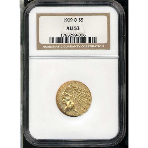 Lot 504 - 1909-O $5 Indian NGC AU53