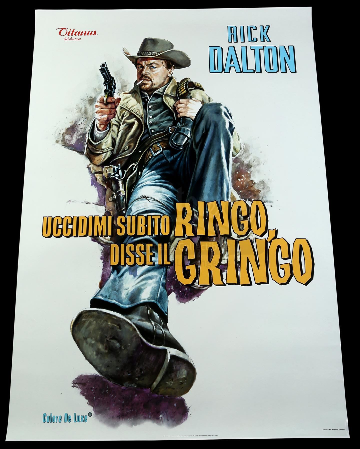 This set consists of one oversize locandina poster for Nebraska Jim and one for Uccidimi Subito Ringo, Disse il Gringo! , both designed by legendary poster artist Renato Casaro, as well as two slightly less oversized posters for Operazione Dyn-O-Mite! designed by Steven Chorney and one for Tanner designed by Martin Duhovic. Each poster is printed in full color on heavyweight posterboard.