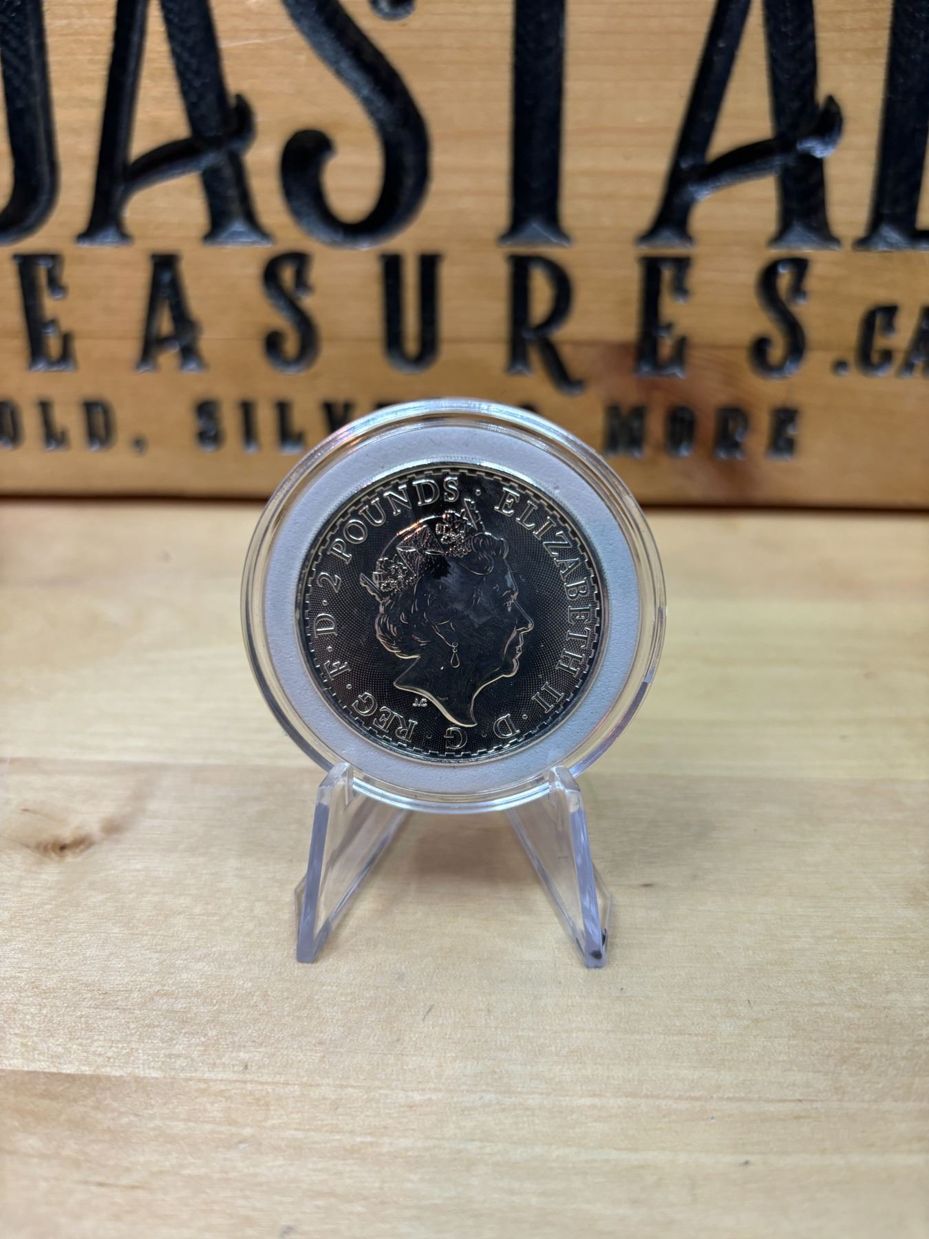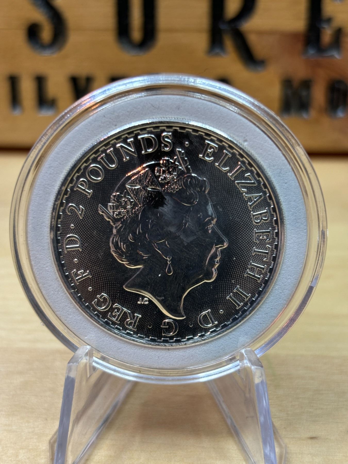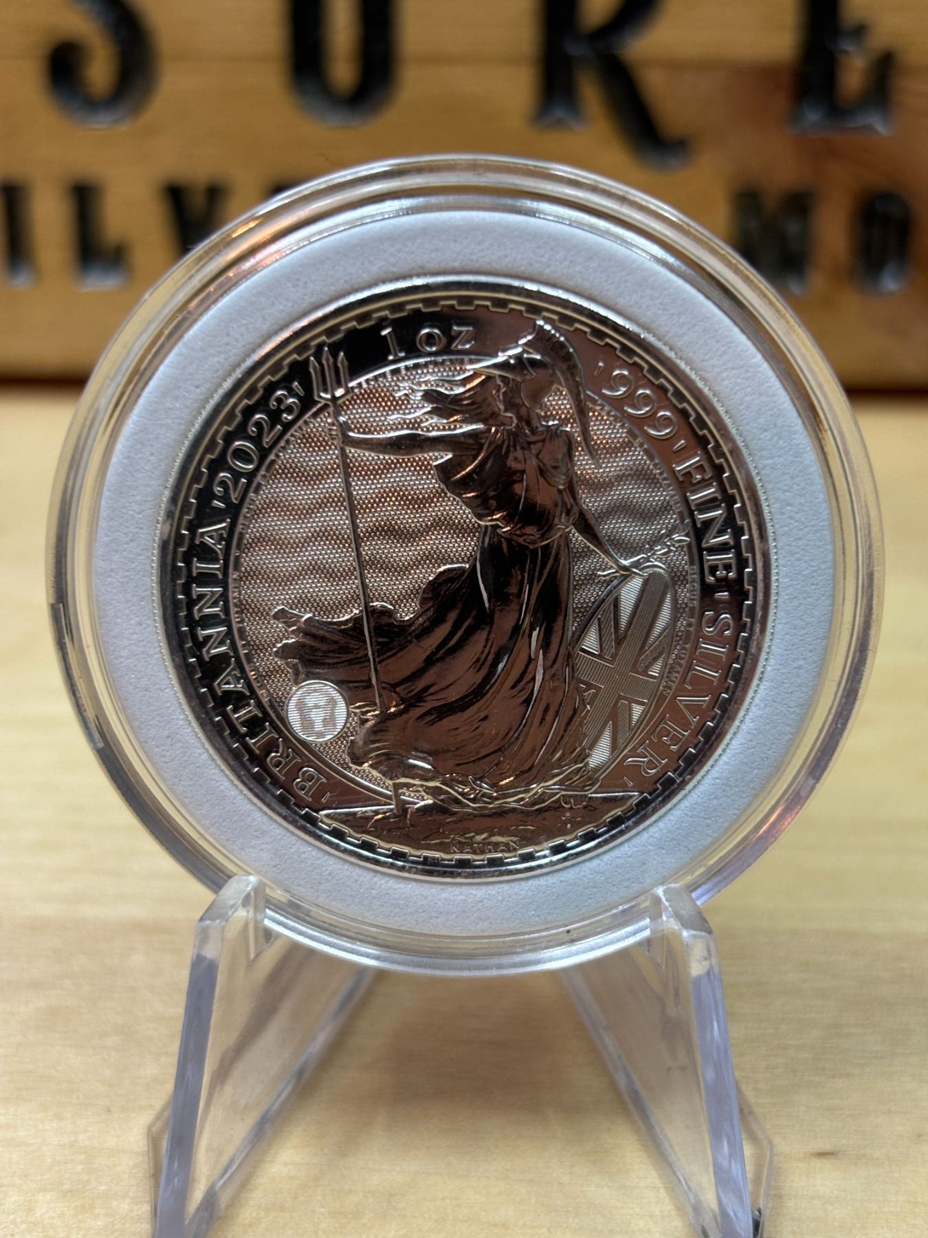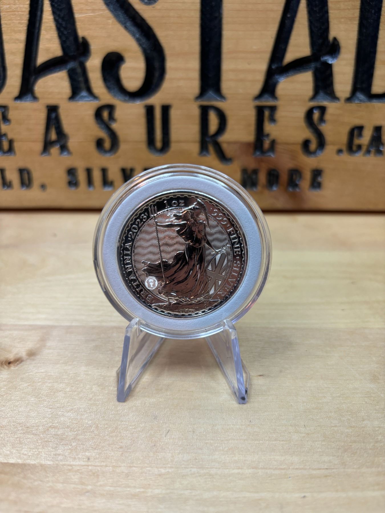 The 1 oz Britannia 2023 Silver Coin is part of the popular Britannia series, produced by the Royal Mint. It contains 1 ounce of .999 fine silver and features the iconic image of Britannia, symbolizing strength and resilience. The 2023 edition features an updated design with enhanced security features, such as a new background wave pattern and a holographic foil that changes in the light, making it more difficult to counterfeit. The coin is widely sought after by collectors and investors alike.