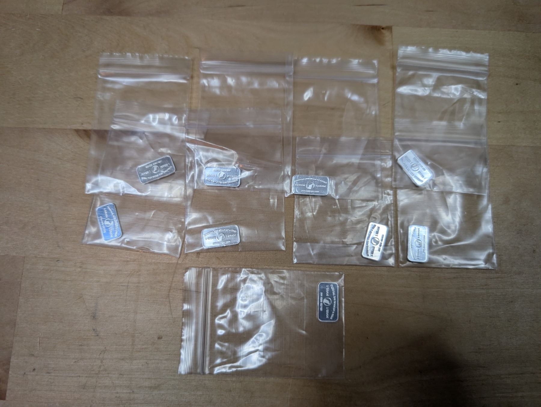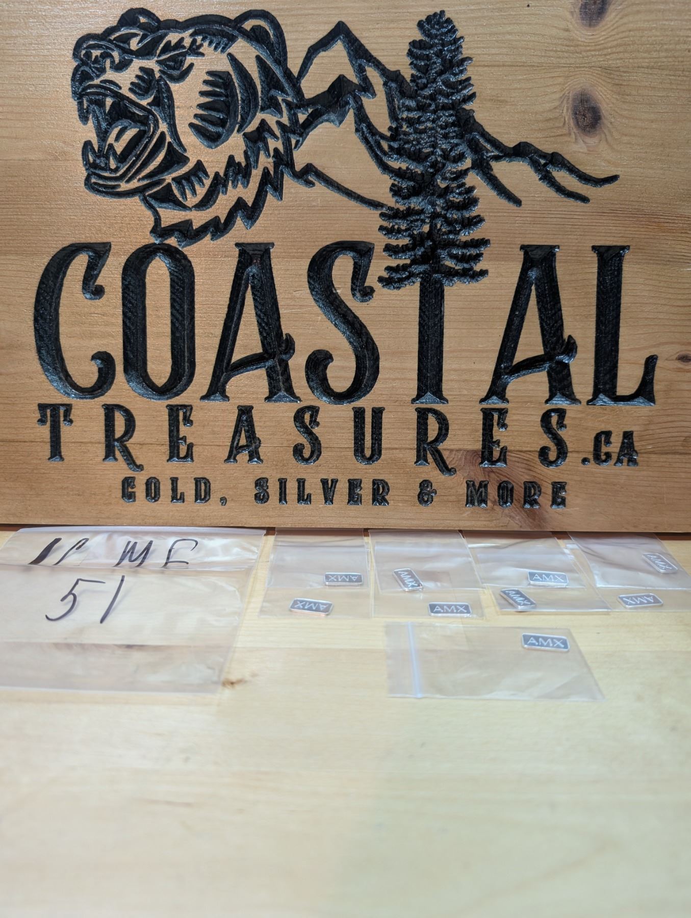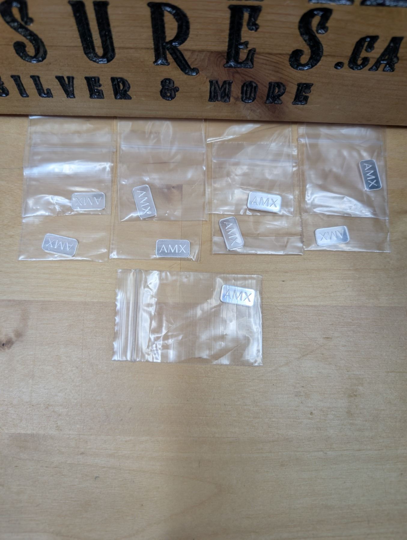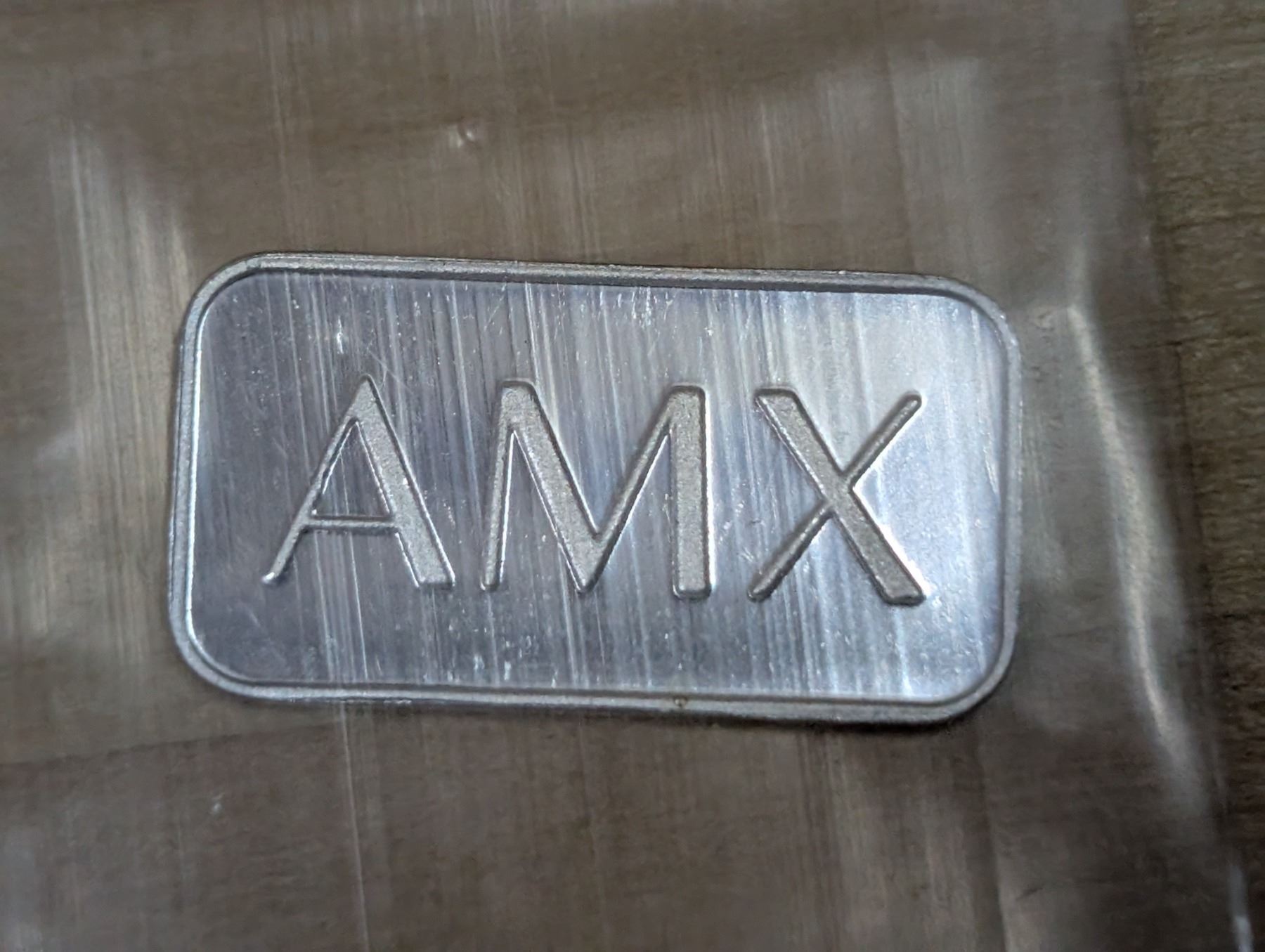 The 9x1g AMX Mini Bars are small, 1-gram silver bars, with 9 bars in total, often made of 99.9% pure silver. The bars are branded with the AMX logo, a known name in precious metals, and they are typically compact, making them easy to store or display. These mini bars are popular for investors looking to accumulate silver in smaller increments, and they can also appeal to collectors due to their compact size and the brand’s reputation.