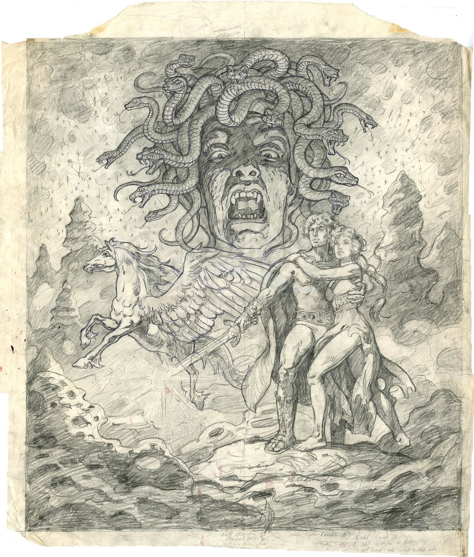 Lot # 51: CLASH OF THE TITANS (1981) - Hand-Drawn Brothers Hildebrandt Final Poster Sketch