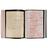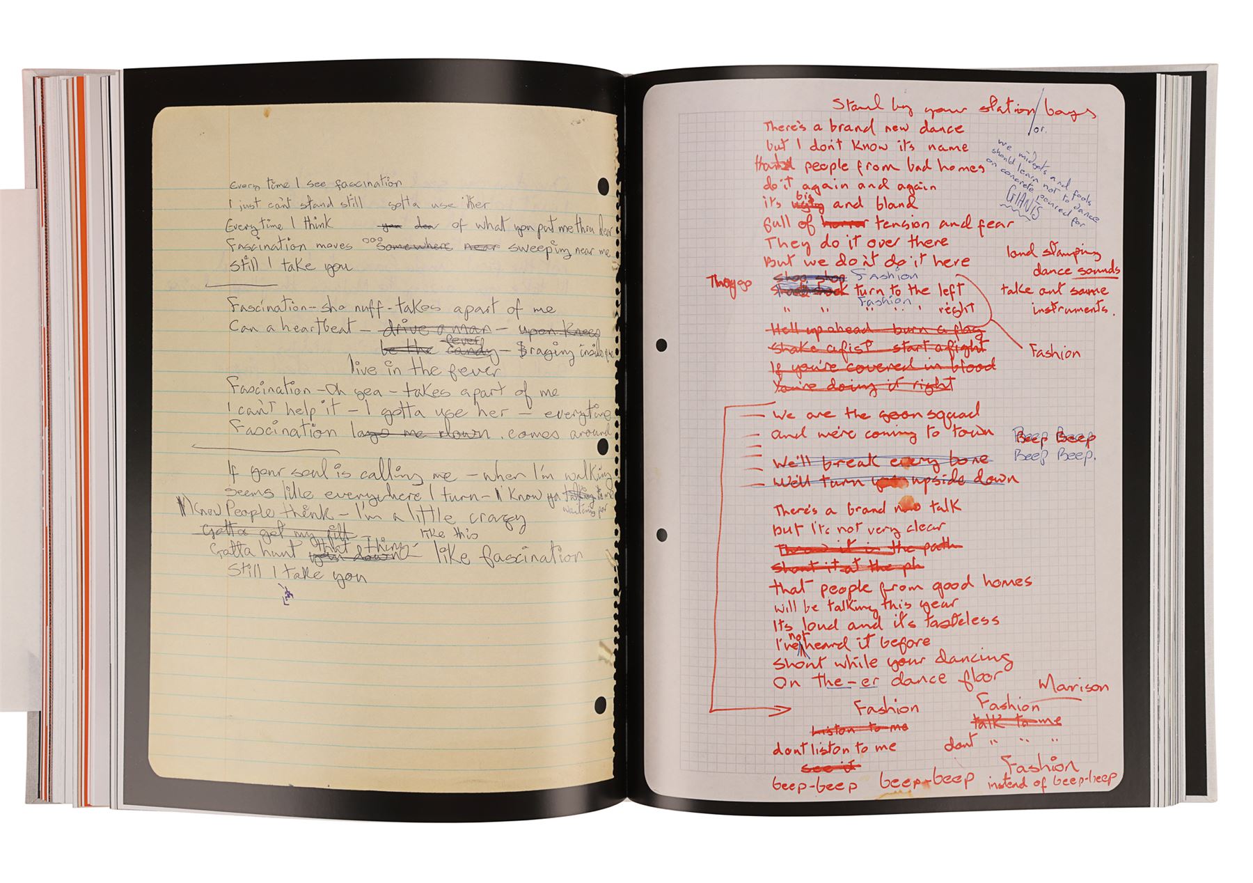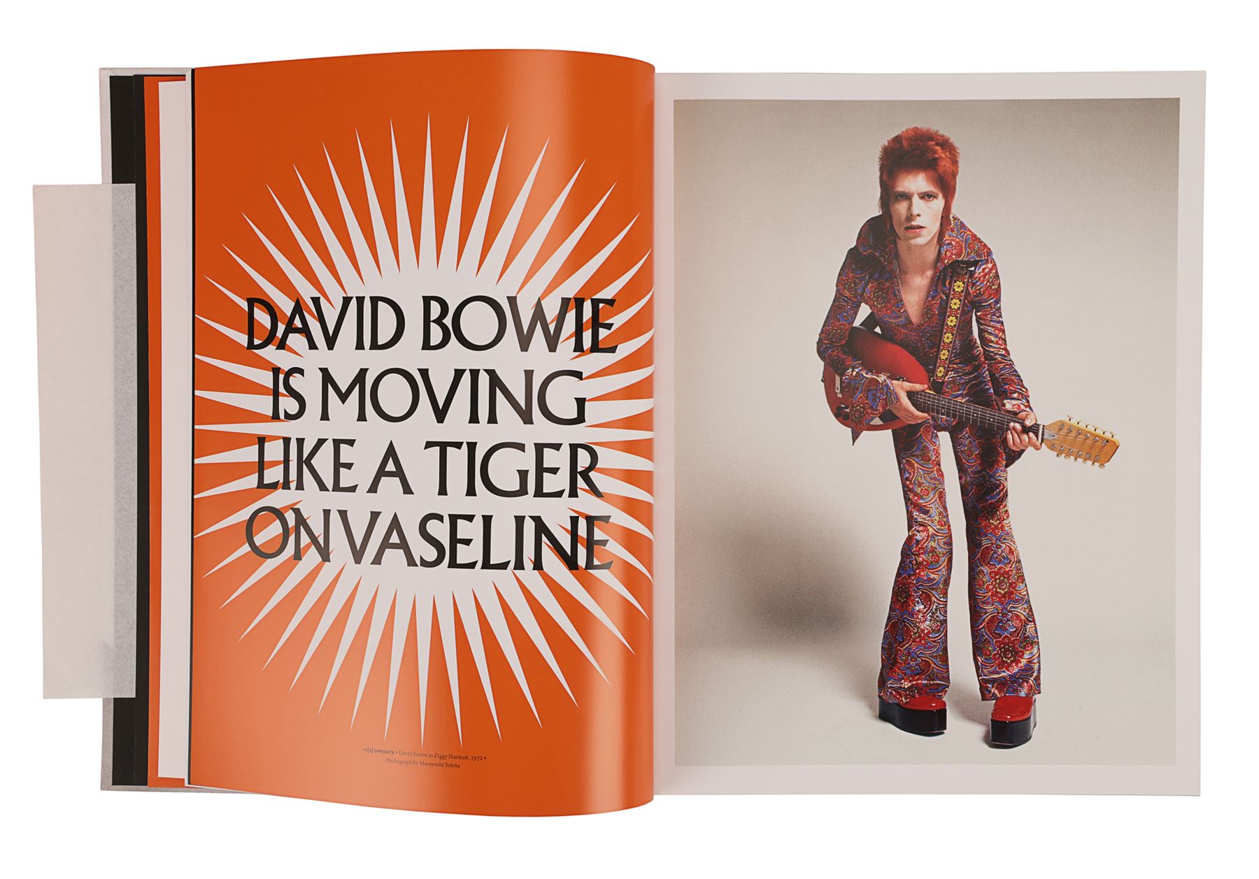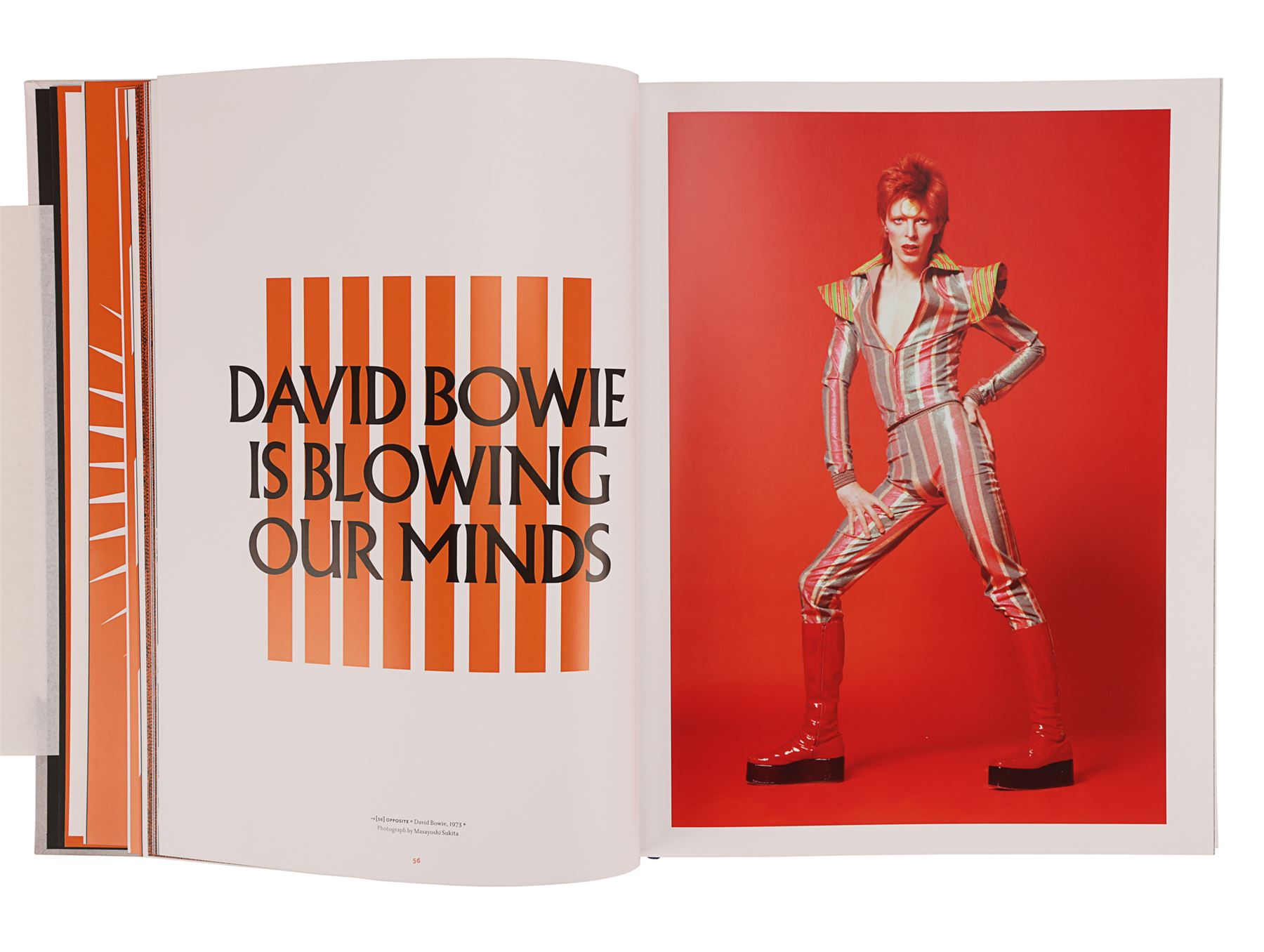 The title page is autographed in black ink by Bowie, and dated "13". The book comes with a neon orange acrylic slipcase featuring laser-cut detailing, as well as its original box. The case displays some light surface scratching, and the box displays signs of wear. Dimensions (book in case): 33 cm x 25.5 cm x 4.5 cm (13" x 10" x 1 3/4")