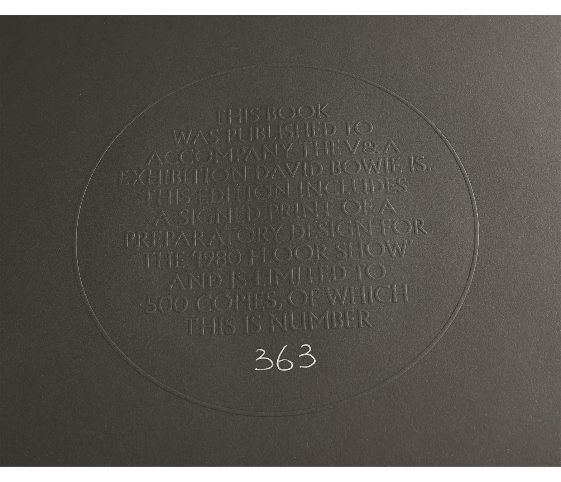 A Signed Collector's Special Edition of David Bowie Is, created by V&A Publishing in collaboration with graphic design studio Barnbrook. The book details Bowie's illustrious career, with exclusive insight and access into the David Bowie Archive, as featured in the David Bowie Is exhibition at the V&A Museum in 2013. This example is numbered "#363" out of a limited run of 500 copies.