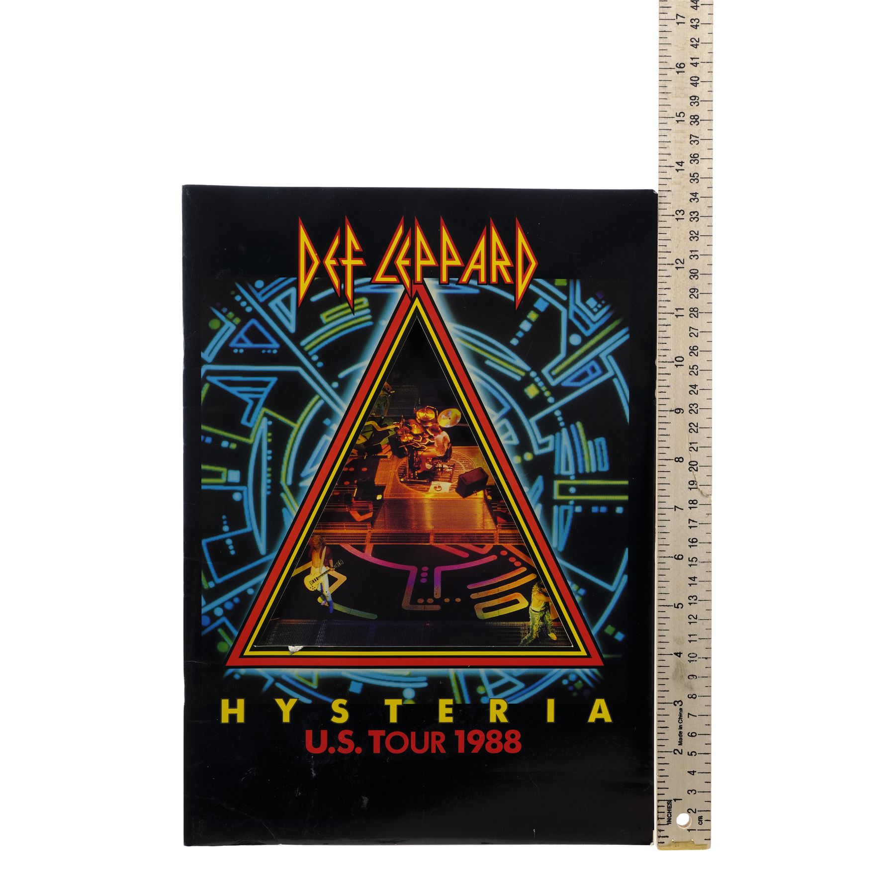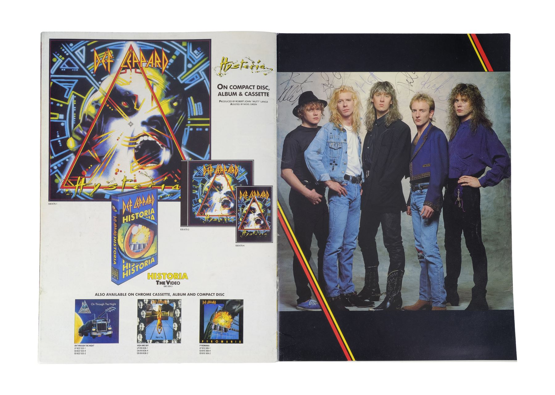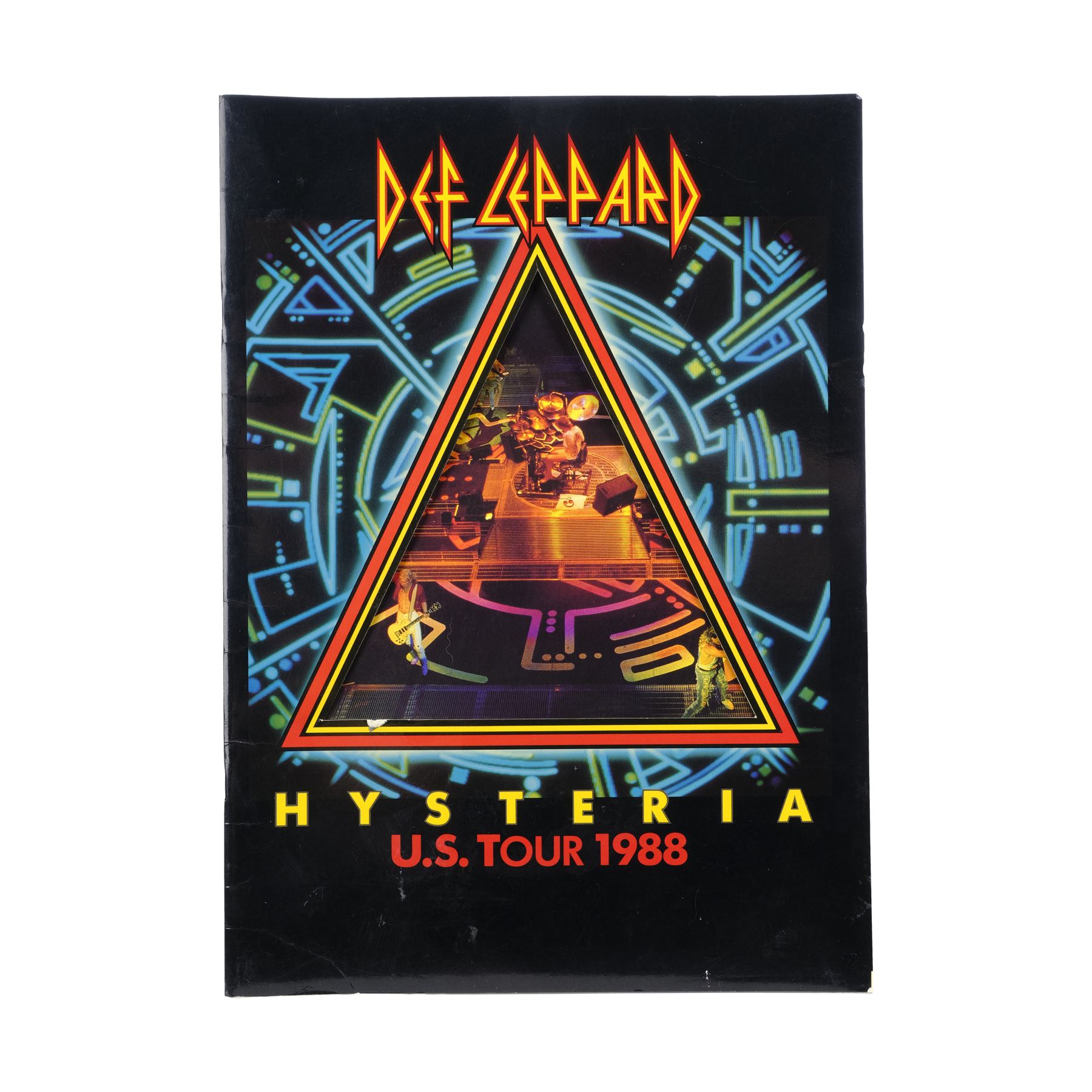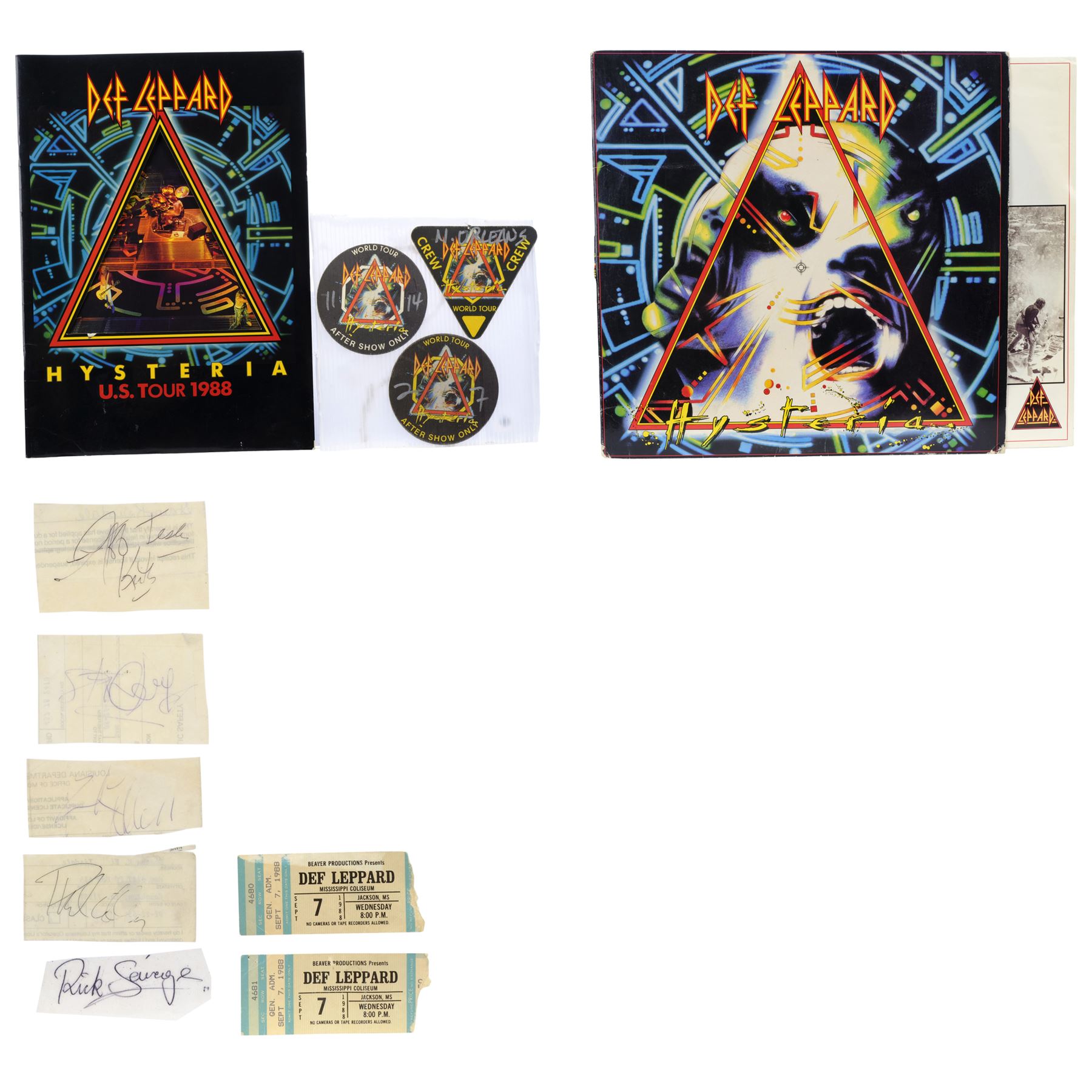 A Def Leppard-autographed 1987 Mercury Records Hysteria vinyl LP and autographed tour book from the 1988 Hysteria tour.