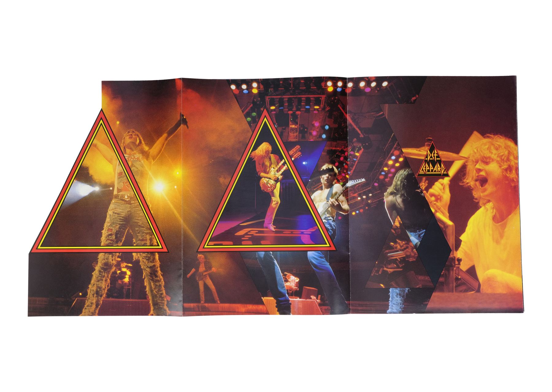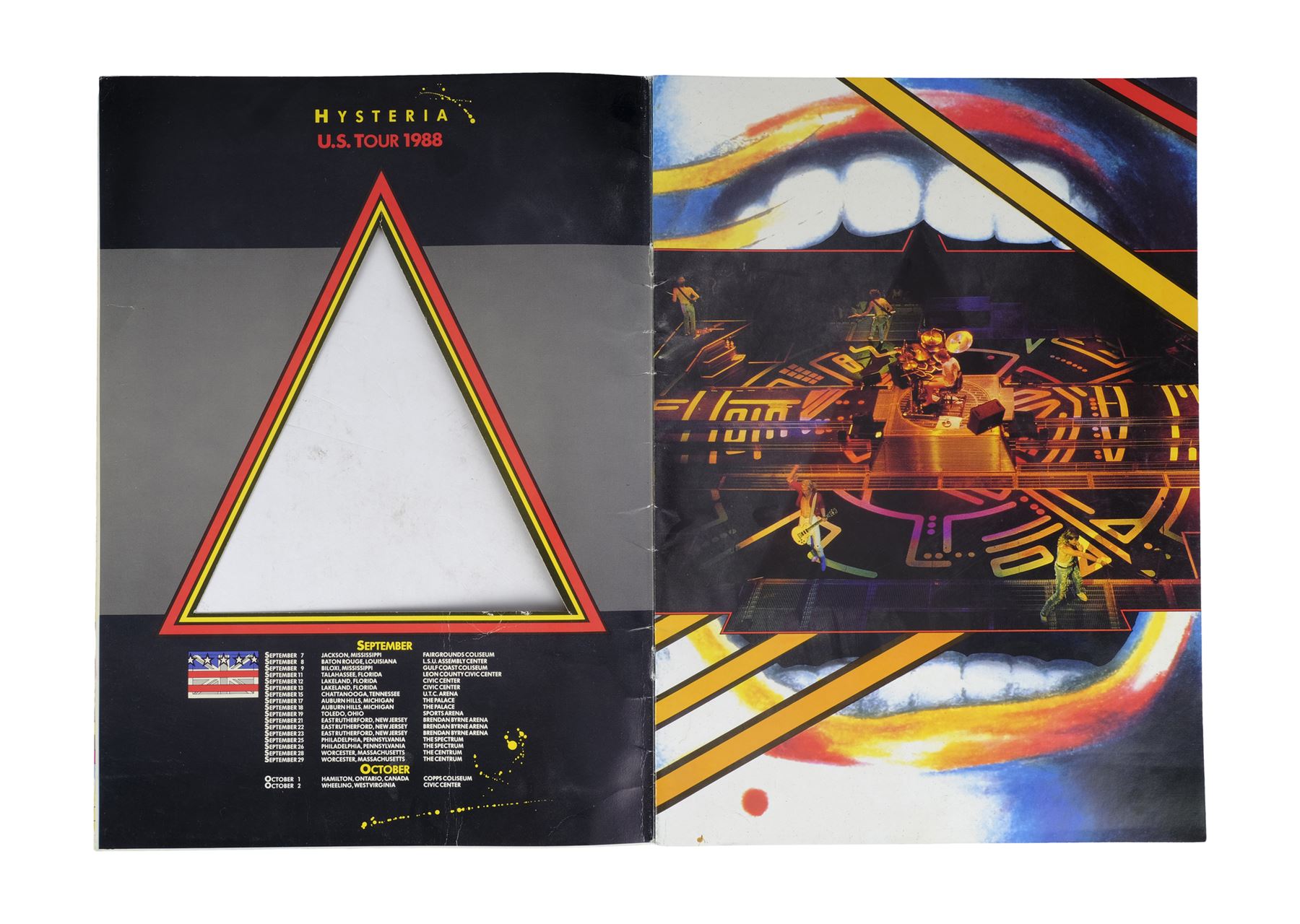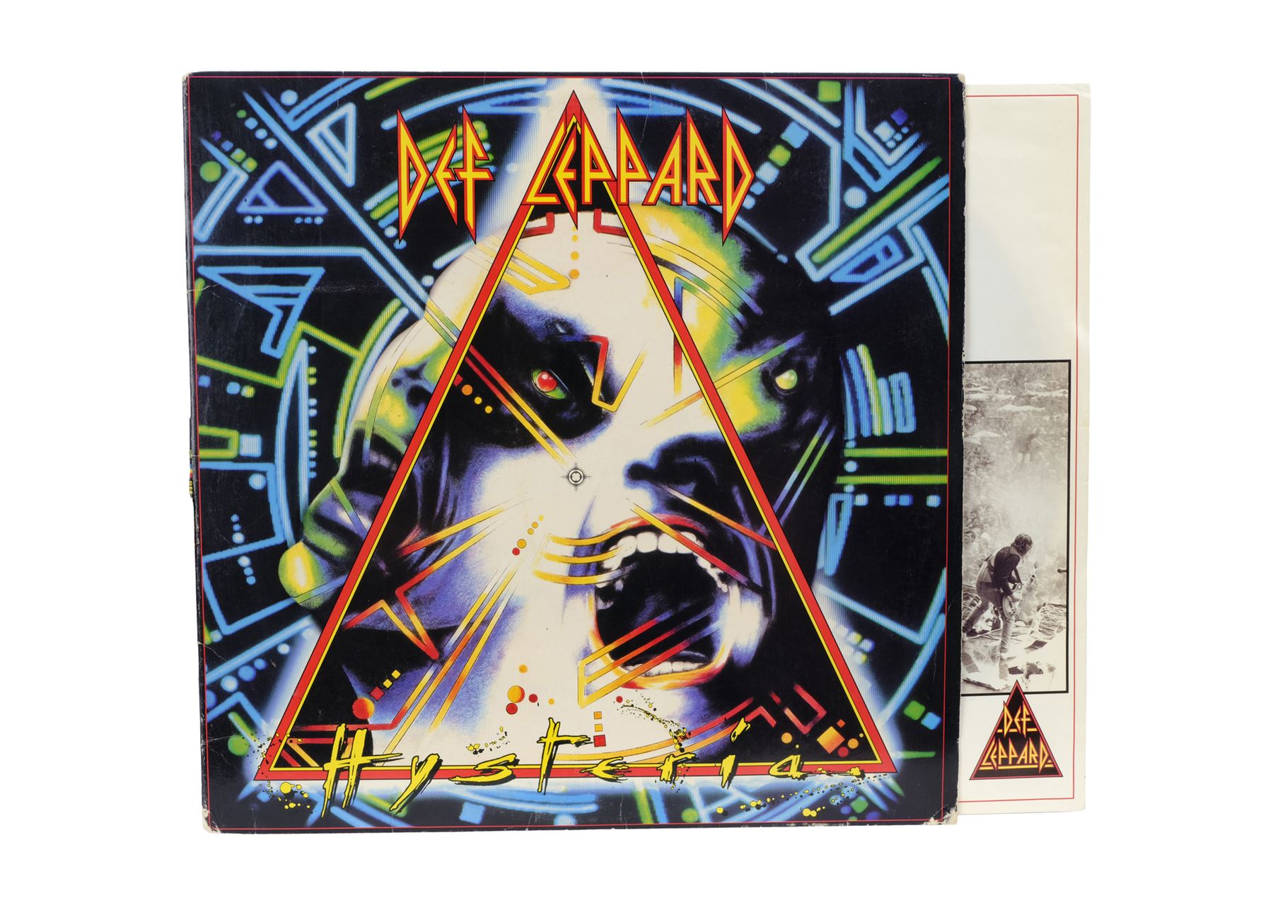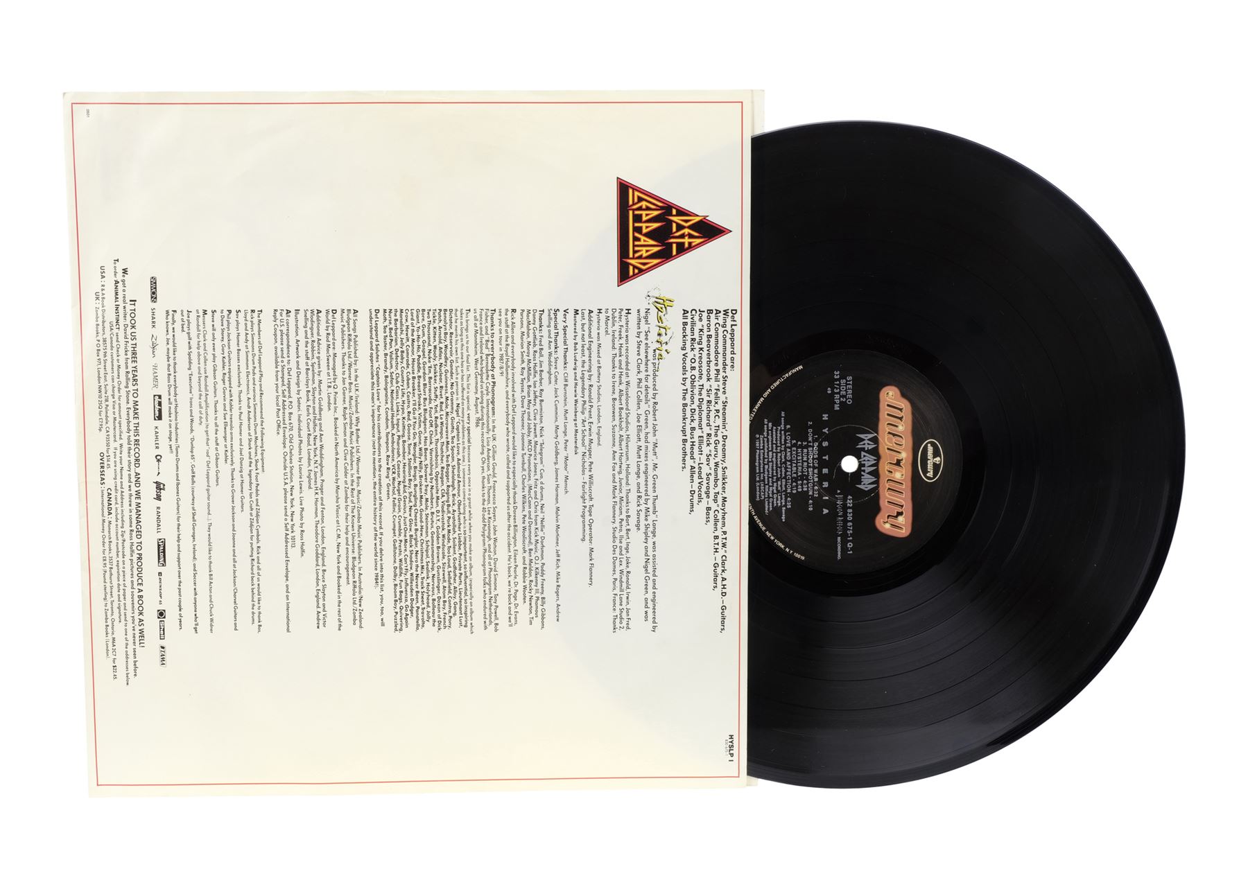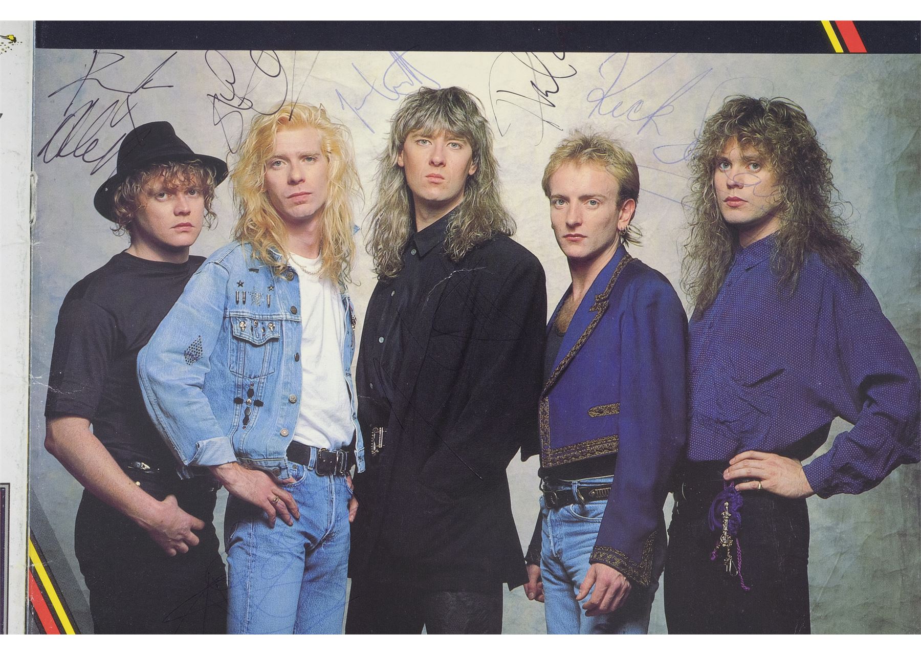 A Def Leppard-autographed 1987 Mercury Records Hysteria vinyl LP and autographed tour book from the 1988 Hysteria tour.