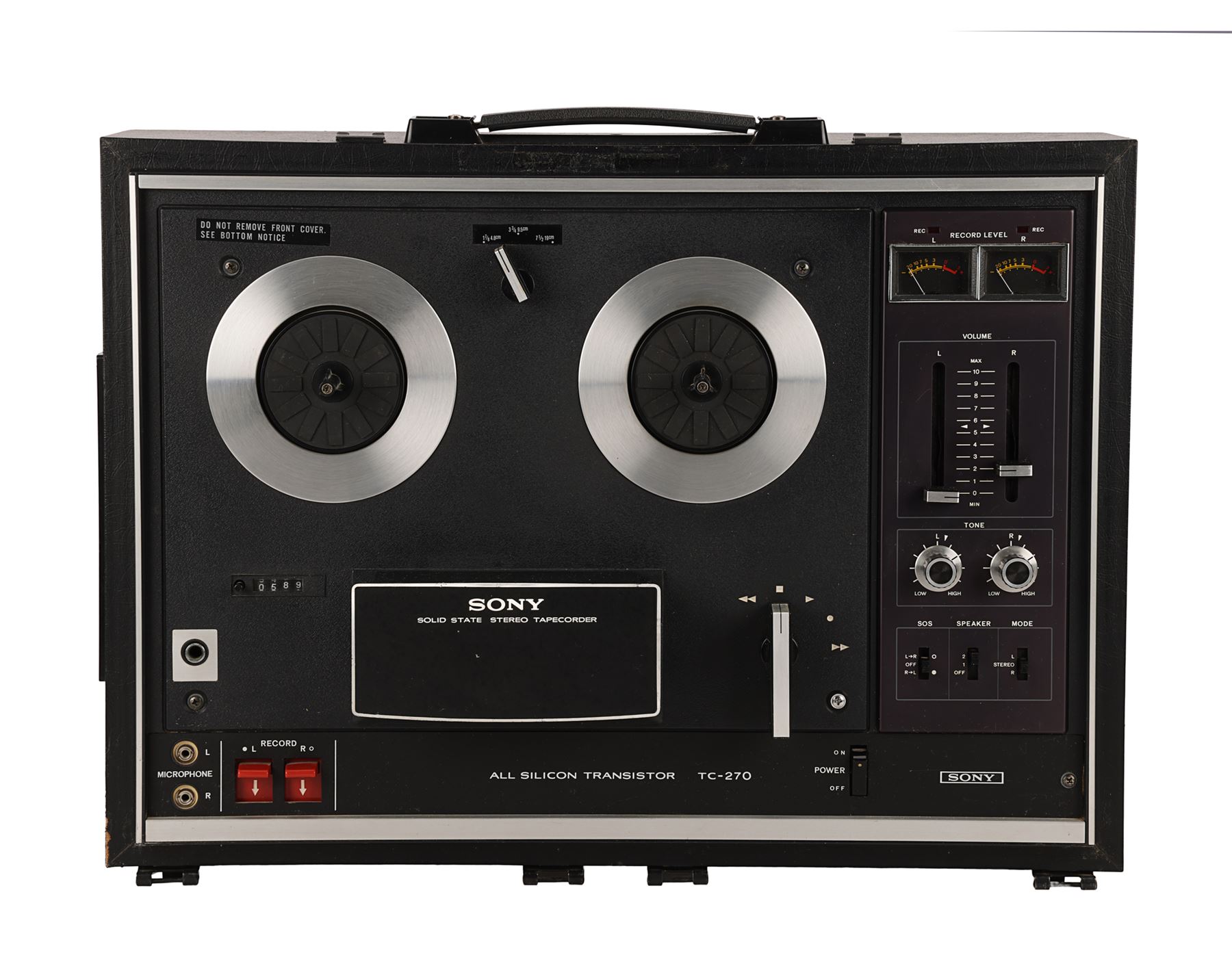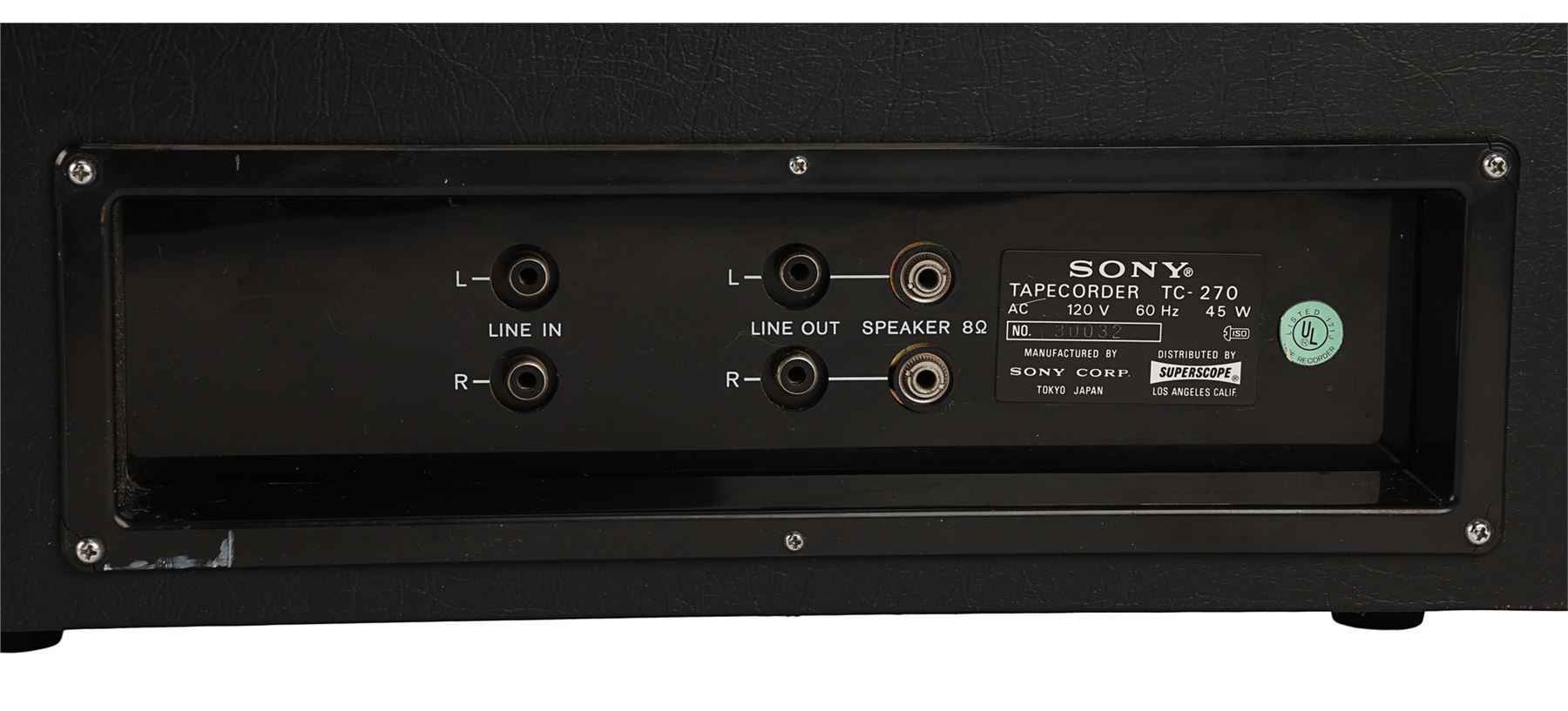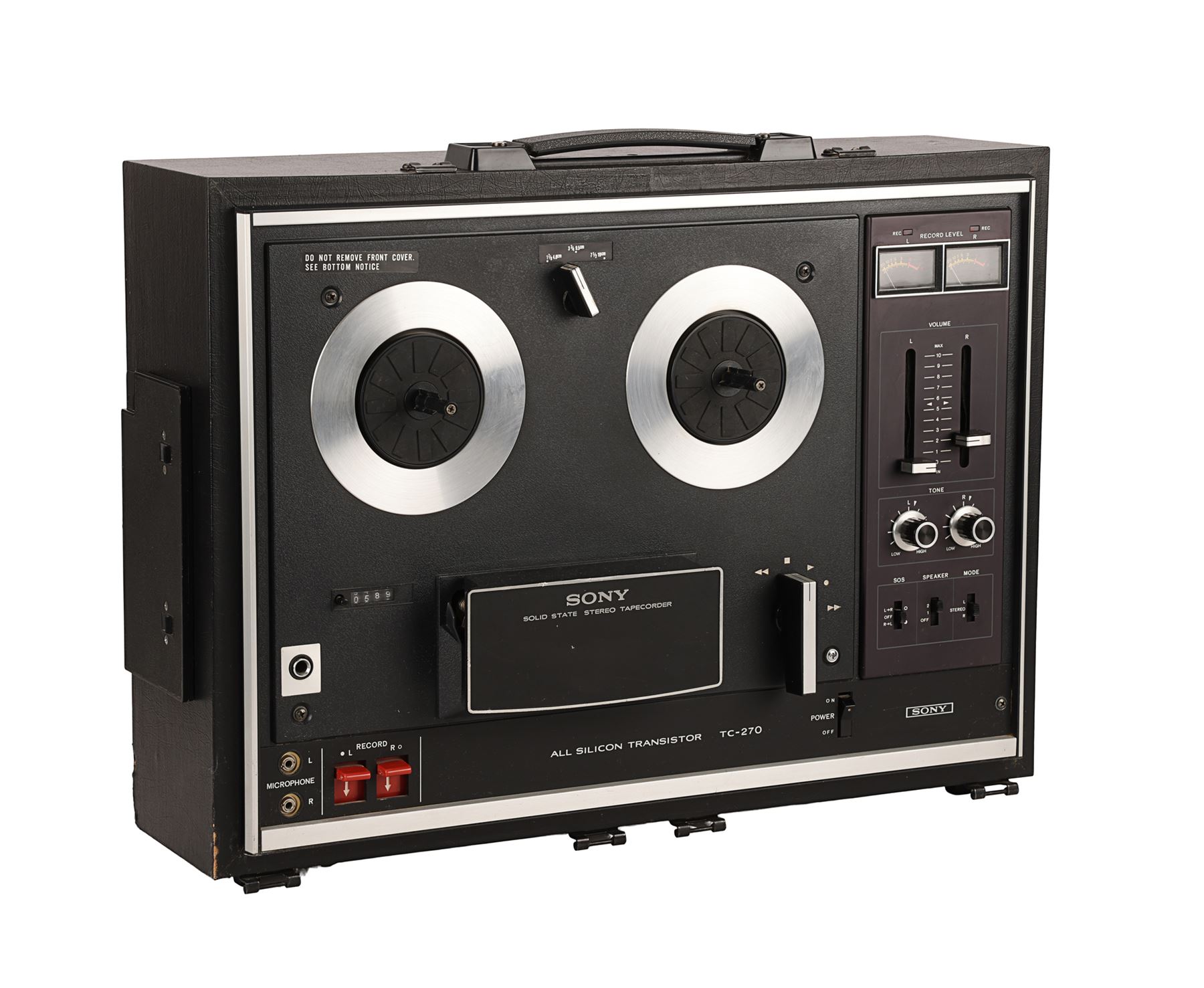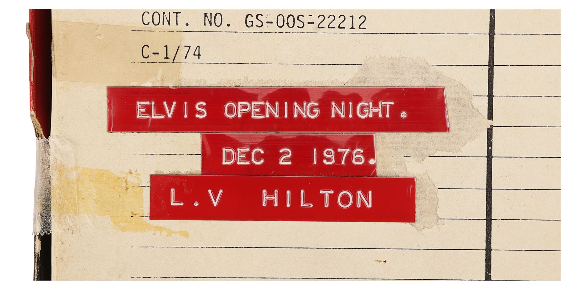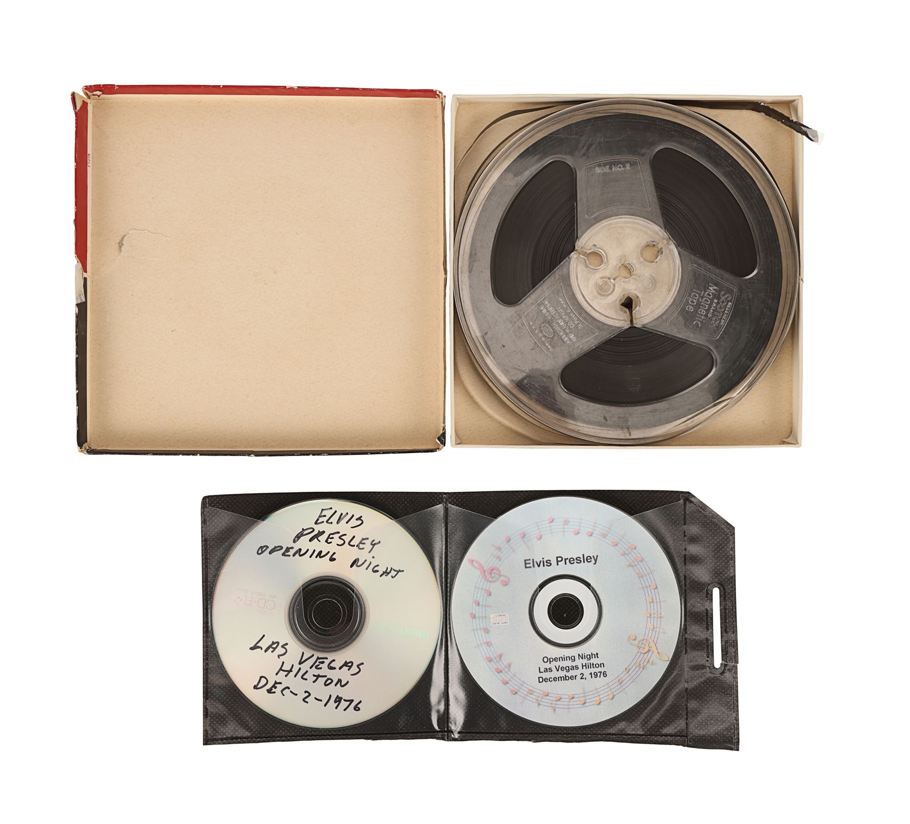 A rare live recording of Elvis Presley's concert on December 2, 1976, the opening night of his final set of performances at the Las Vegas Hilton. This audio was recorded by Presley's manager Colonel Tom Parker on his Sony TC-270 tape recorder (also included in this lot). Parker sometimes recorded Presley's live performances for the pair to review later. He would sit stage right with celebrities and the owners and managers of the Las Vegas Hilton resort during Presley's headliner residency. Parker gave this recording to talent agent and manager Seymour Heller - best known for being the personal manager of famed pianist Liberace - when they were both in Liberace's dressing room at the Hilton a few years later. Parker and Heller often exchanged gifts from one another's entertainers and had been friends since the 1950s. It was obtained directly from Heller before his death in October 2001. The recording includes the entire performance and lasts over an hour, including 19 songs, talking segments and interaction with the audience. Songs include "Teddy Bear", "All Shook Up", "Jailhouse Rock", "Don't Be Cruel", and more. The lot includes the original acetate Ampex 641 reel, two remastered CD versions of the recording, the Sony reel-to-reel 1/4" tape recorder it was initially captured on, and three Sony microphones used by Parker. The remastered CD, transferred from the reel-to-reel Ampex tape, was created by an oldies doo-wop radio station in Pittsburgh, Pennsylvania in 2000. The lot is accompanied by a signed letter of authenticity from Heller with his business card attached, a typed description of the recording's contents, including a list of the songs performed, and a handwritten letter of authenticity obtained from Phillip Mehaffey, head engineer and owner of Cyberteknics Creative Recording Studio in Dayton, Ohio dated "May 13, 2023, after he compared the music on the Ampex tape to the remastered CD and noted the age of the tape. The recorder exhibits minor scuffing from age, and the Ampex reel box exhibits wear and creasing. Dimensions (recorder): 26 cm x 52 cm x 40 cm (10 1/4" x 20 1/2" x 15 3/4")