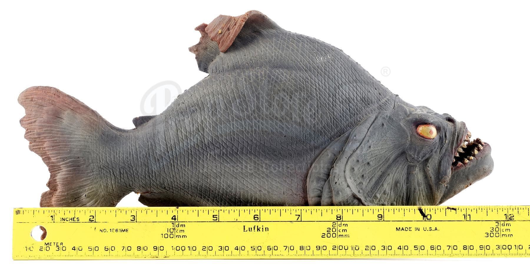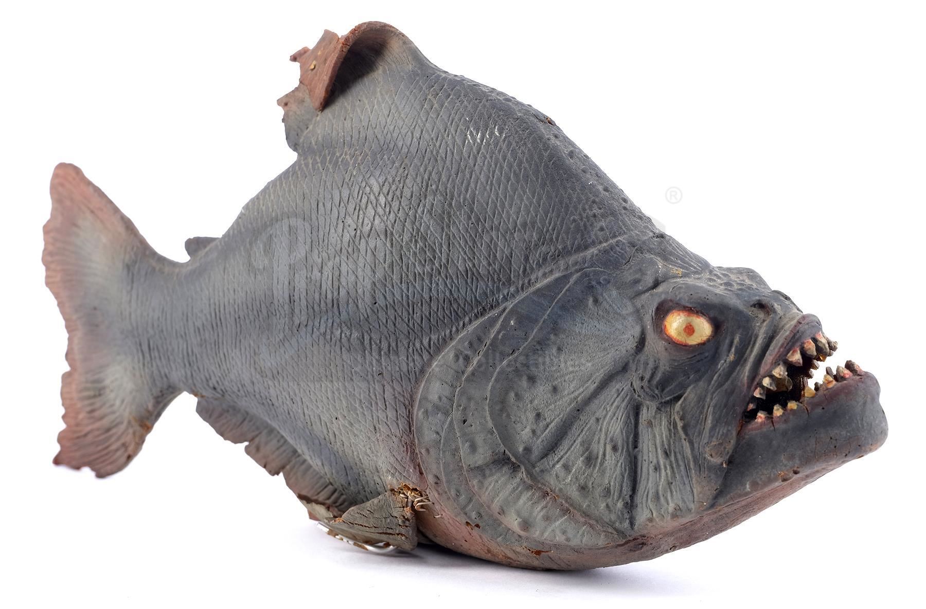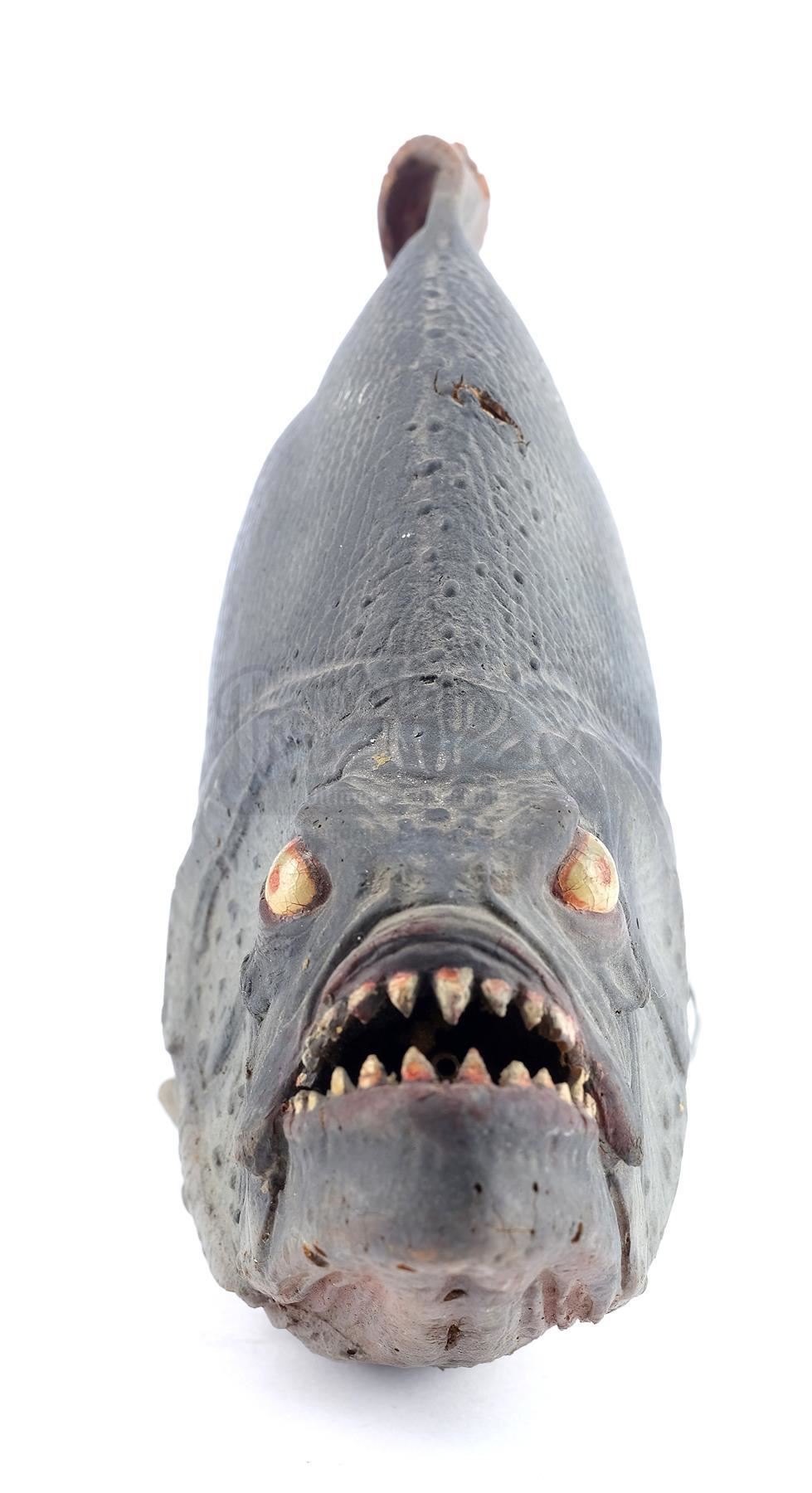 A piranha puppet from Joe Dante's horror comedy Piranha. A school of piranha were genetically engineered by the American military to eat flesh and were accidentally released into the water supply. This lot comes from the film's creature designer and animator, Phil Tippett.