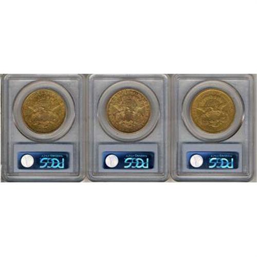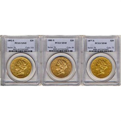 Lot of Three $20 Libs Various Dates PCGS XF. Includes 1877-S PCGS EF40, 1881-S PCGS EF45, and 1892-S PCGS EF45. (#8984)