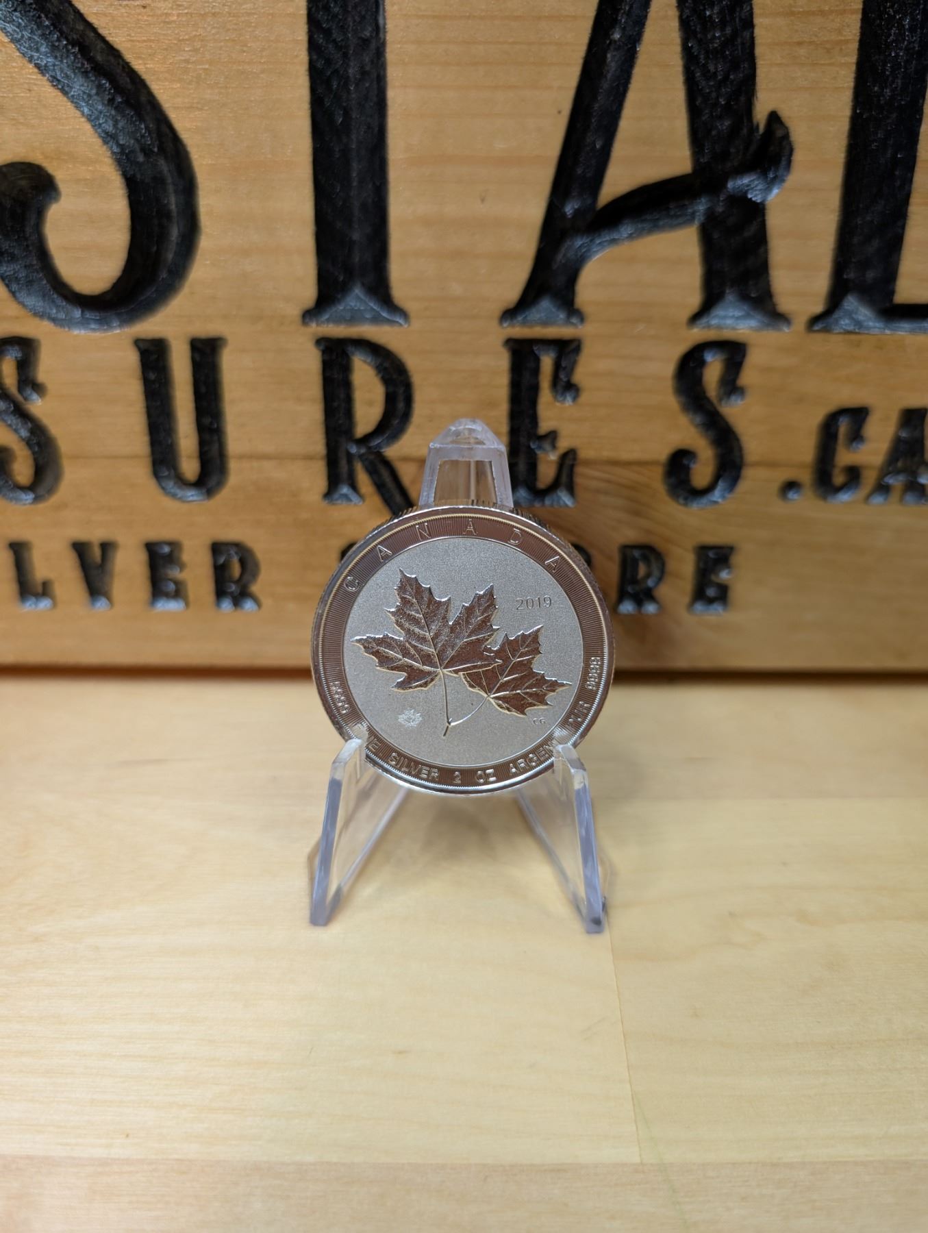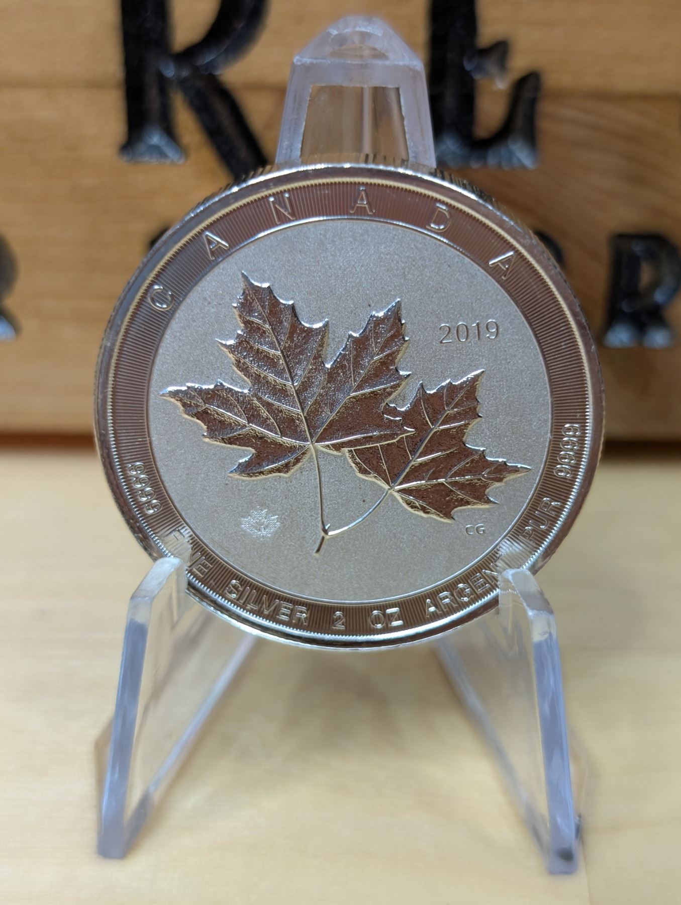 The 2 oz Magnificent Canadian Maple Leaf 2019 is a 2-ounce, 99.99% pure silver coin from the Royal Canadian Mint. It features an enhanced design of the iconic Canadian Maple Leaf in stunning detail, often with intricate patterns and high-quality engraving. This coin is part of a special series celebrating the beauty of Canada’s national symbol. The 2019 edition stands out for its larger size and the attention to detail, making it highly sought after by collectors.