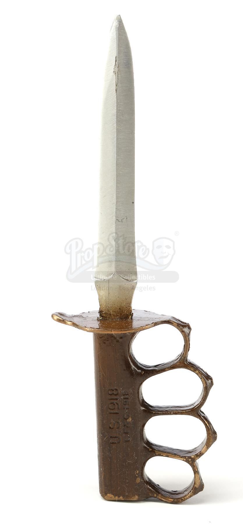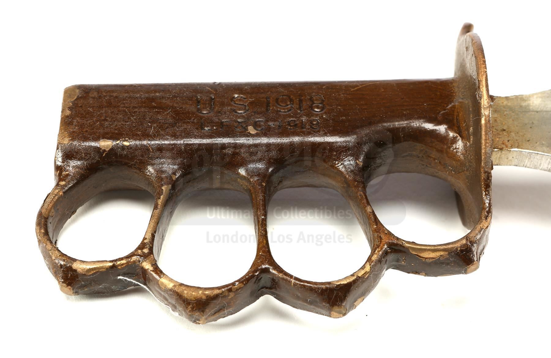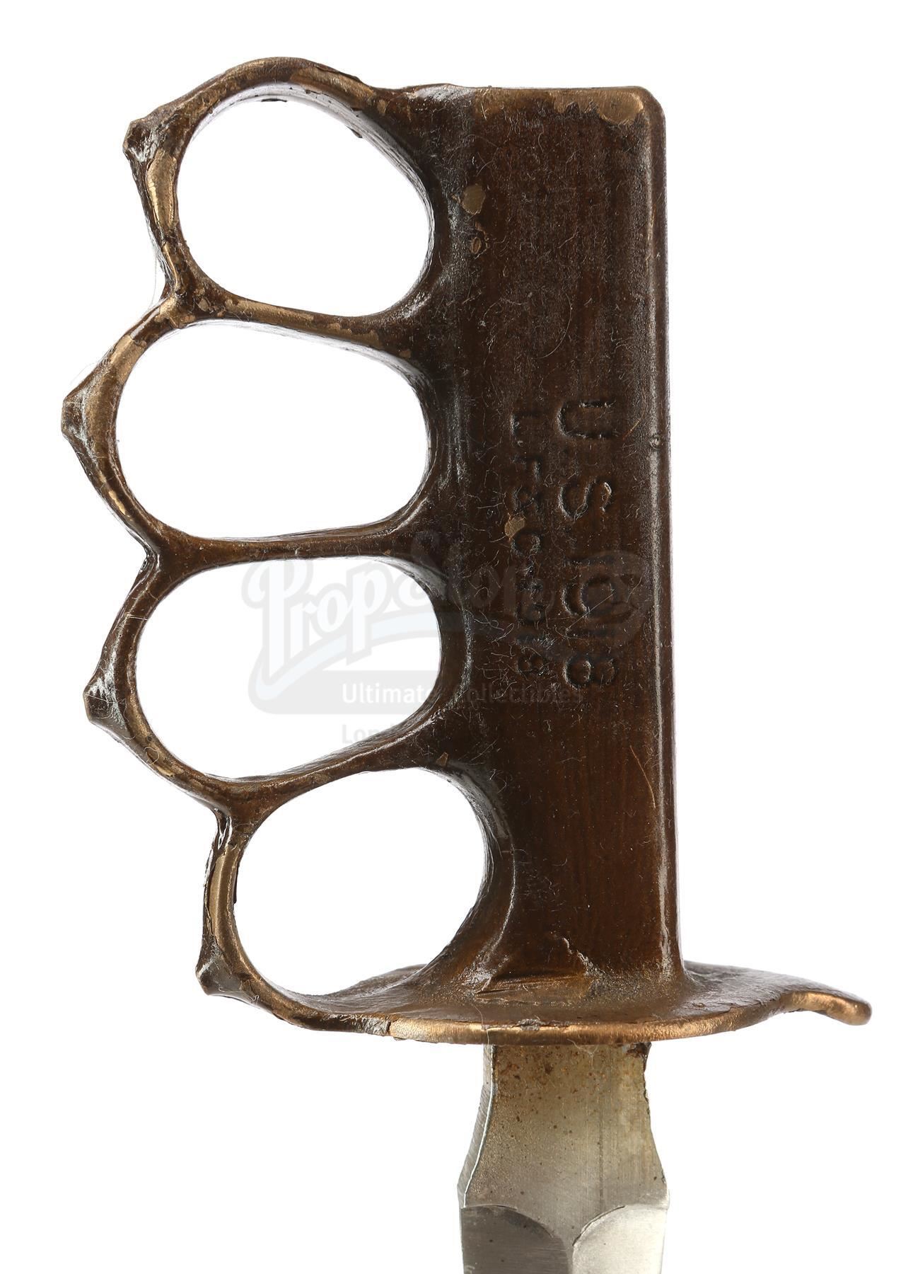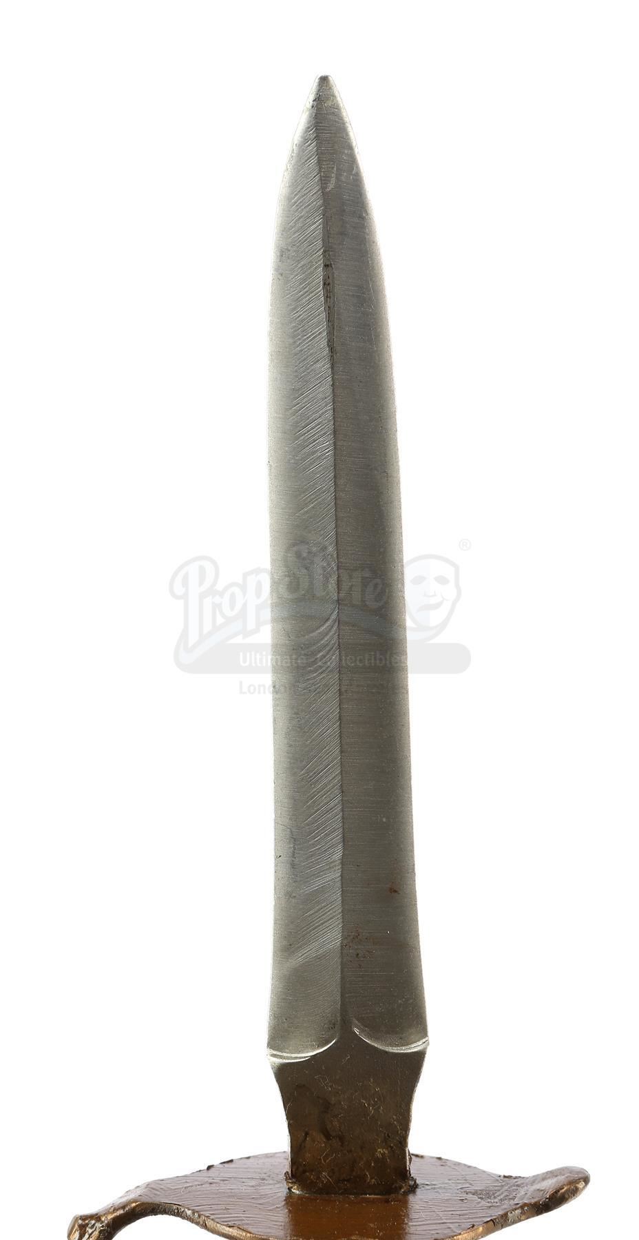 This lot will be auctioned on Wednesday, June 30th. The auction will begin at 9:00am PDT and lots are sold sequentially via live auctioneer; tune in to the live streaming broadcast on auction day to follow the pace. Note other lots in the auction may close on June 29th or July 1st. A set of Wing Kong and Chang Sing knives from John Carpenter's action comedy Big Trouble in Little China. The Chang Sing wielded knives in battle against their criminal rivals, the Wing Kong. This set consists of two resin Wing Kong blades with metal and wood handles and silver-color decals, as well as a bronze-handled metal Chang Sing dagger with knuckle grips. It is in good overall condition with some scrapes and chipping on the decals from production use. Dimensions (largest): 16" x 5.5" x 1" (40.75 cm x 14 cm x 2.75 cm); (smallest): 11" x 4" x 2" (28 cm x 10.25 cm x 5 cm) Estimate: $1,000 - 1,500