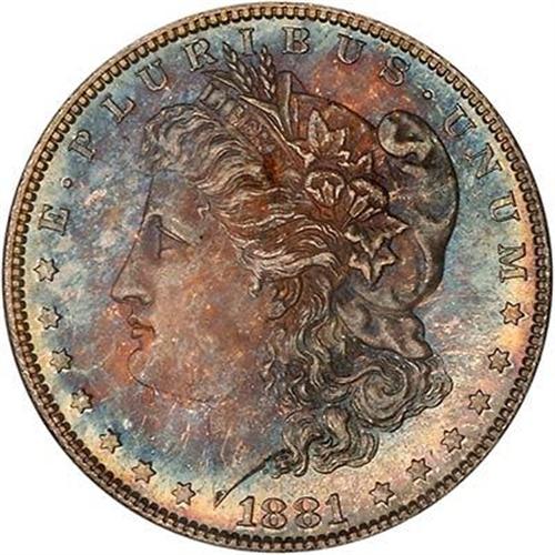 1881-S Morgan Dollar. A nice blizzard of colors tint the radiant surface of this lustrous piece. It is a joy to behold. (#7130)