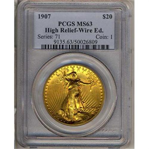 Lot 540 - 1907 $20 St. Gaudens HR Wire Rim PCGS MS63
