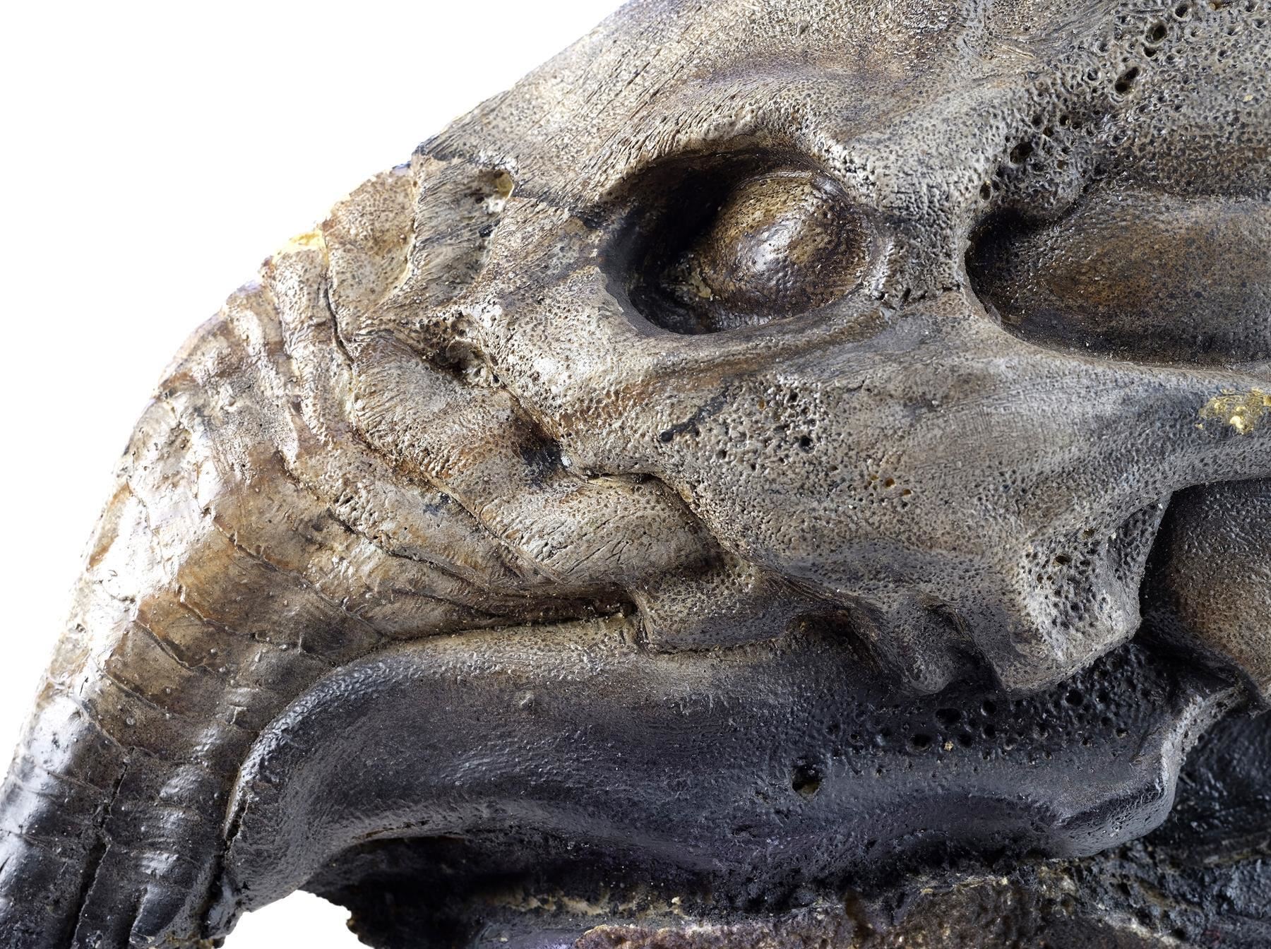 A partial Engineer helmet from Ridley Scott's Alien prequel Prometheus. The film followed scientists who traveled to a distant planet to discover the source of life on Earth, but instead uncovered a great threat. Multiple engineer remains were seen scattered throughout the ship found on LV-223.