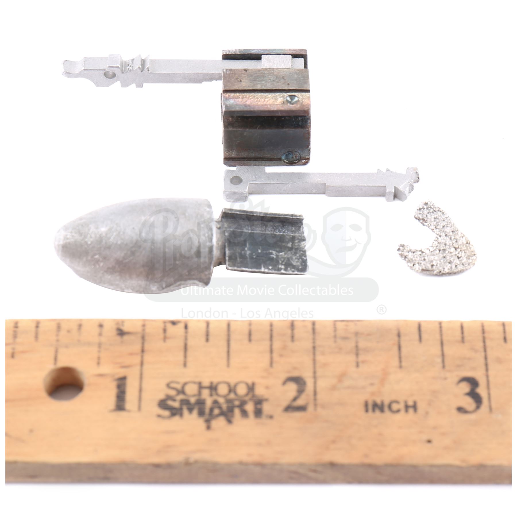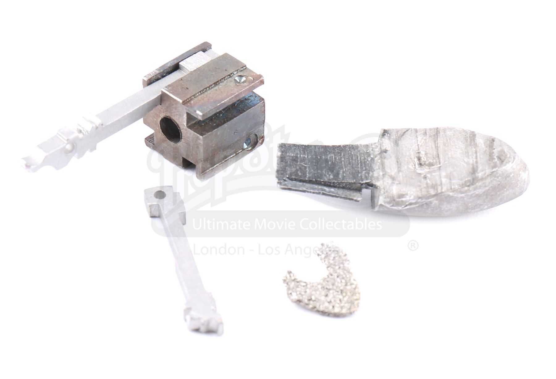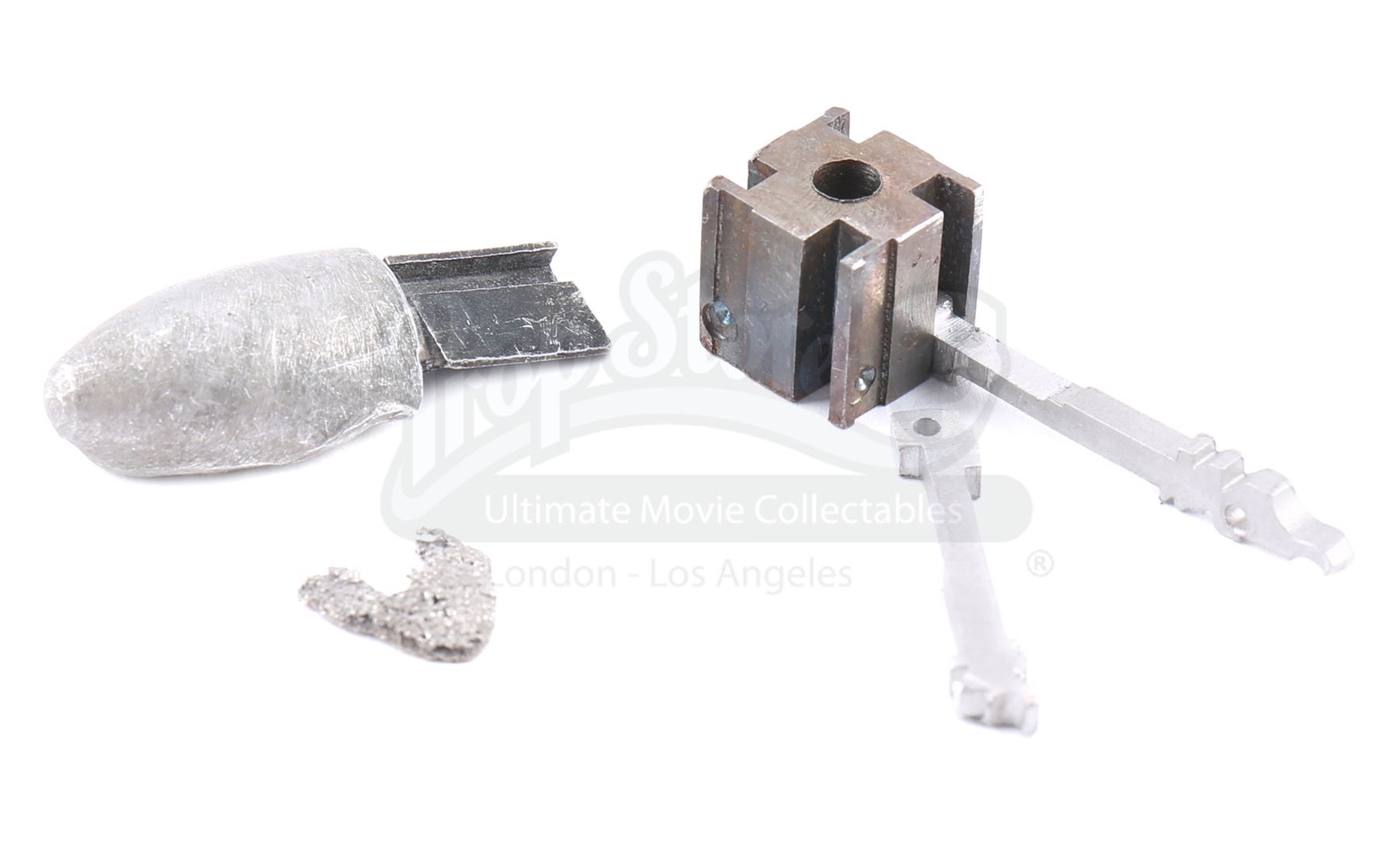 Judas bullet fragments removed from Luke Cage from the episode ‘Take it Personal’ (110) of Marvel's Luke Cage. In the episode, Claire Temple and Dr. Noah Burstein remove bullet fragments from Cage’s chest. This lot consists of four pieces of metal and resin judas bullet fragments. It is in good overall condition with some wear from production.