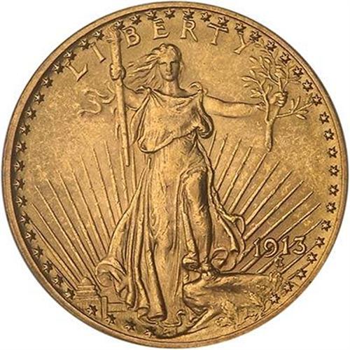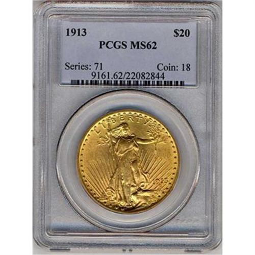1913 $20 St. Gaudens. With only 168,838 minted, the 1913 is a scarcer P-mint issue. (#9161)