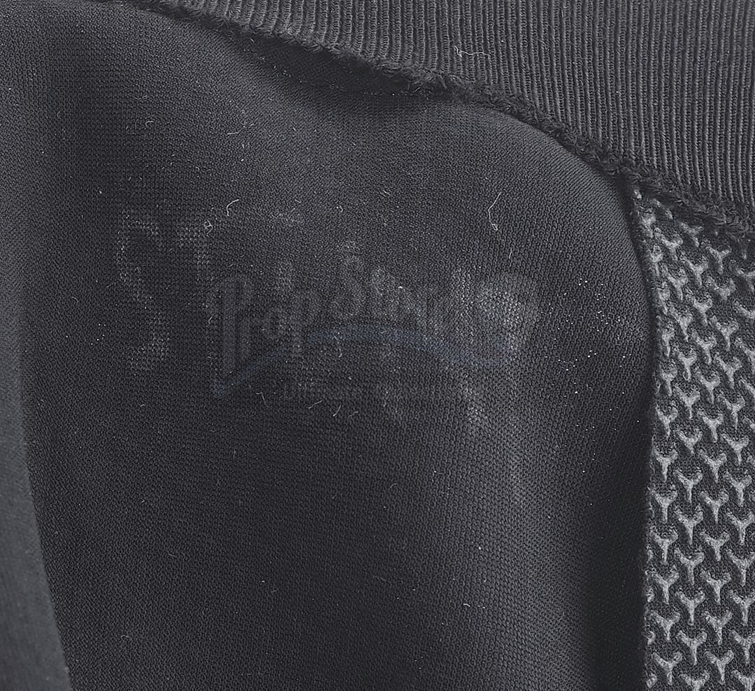 Daisy Johnson's partial stunt second iteration Quake costume from Seasons 6 and 7 of Marvel's Agents of S.H.I.E.L.D. Superpowered Inhuman and S.H.I.E.L.D. agent Daisy Johnson, formerly known as Skye, wears her redesigned costume while engaging in team missions under the codename 'Quake' throughout both seasons. This lot consists of a charcoal-colored elastane and polyester blend stunt zip-up compression jacket with metal buckles and matching stunt pants with leatherette details and purple accents, a pair of black and gray nylon and polyester fingerless gloves, and a pair of high-heeled leather stunt boots with leather shin guards affixed with fastening straps. It is in good overall condition with some minor wear from production on all items and several harness holes made throughout both the jacket and pants.