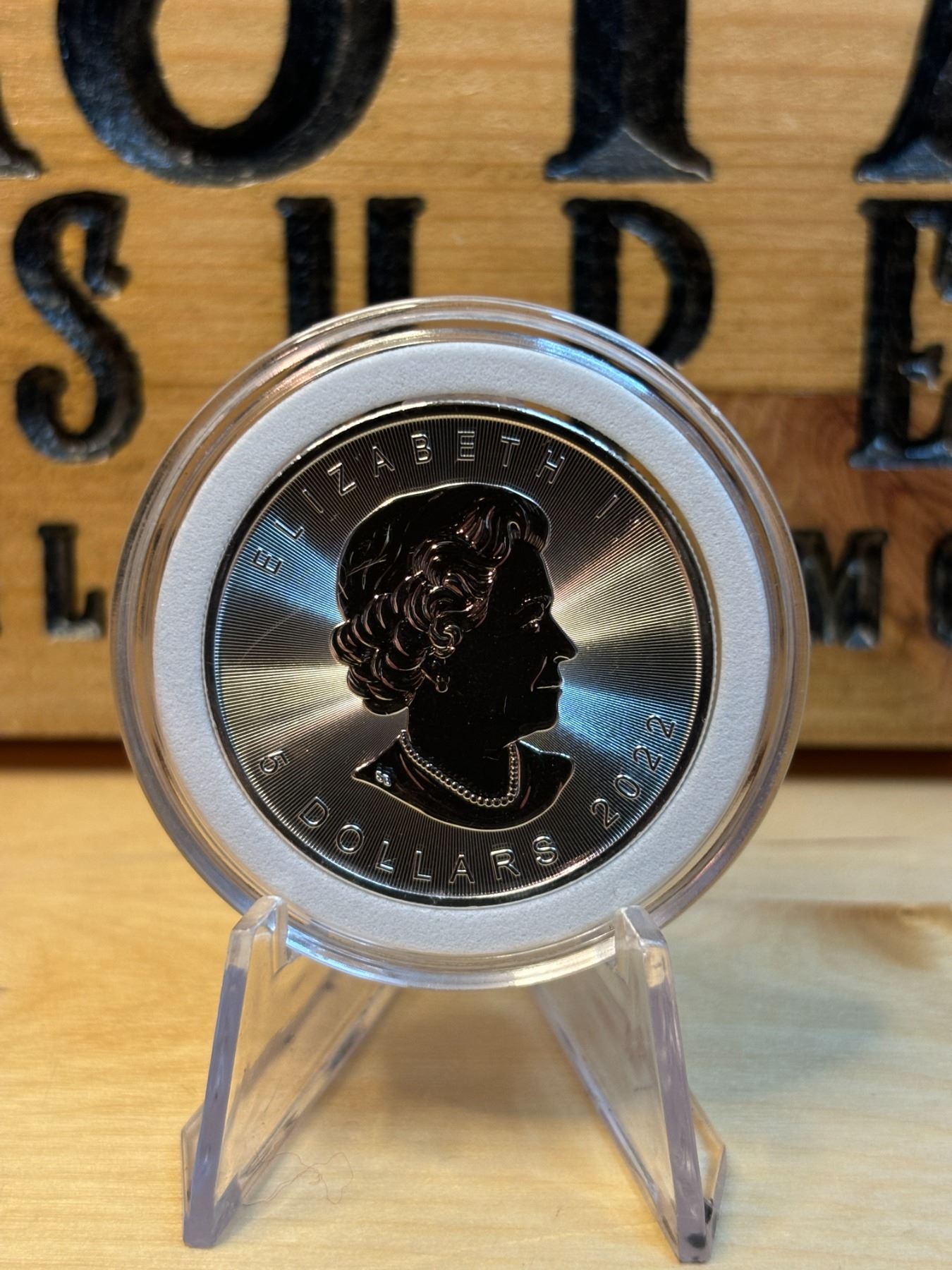 The 2022 1 oz Canadian Silver Maple Leaf is a .9999 fine silver coin featuring King Charles III on the obverse and the iconic maple leaf on the reverse. With advanced security features and MINTSHIELD™ protection, it’s perfect for collectors and investors.