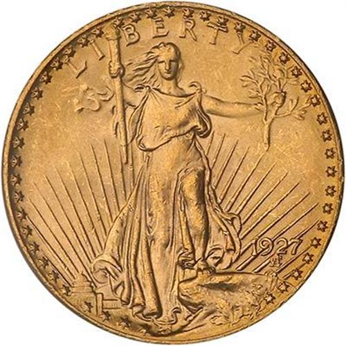 1927 $20 St. Gaudens. A golden bright specimen glowing with original mint bloom and minimal contact marks. (#9186)