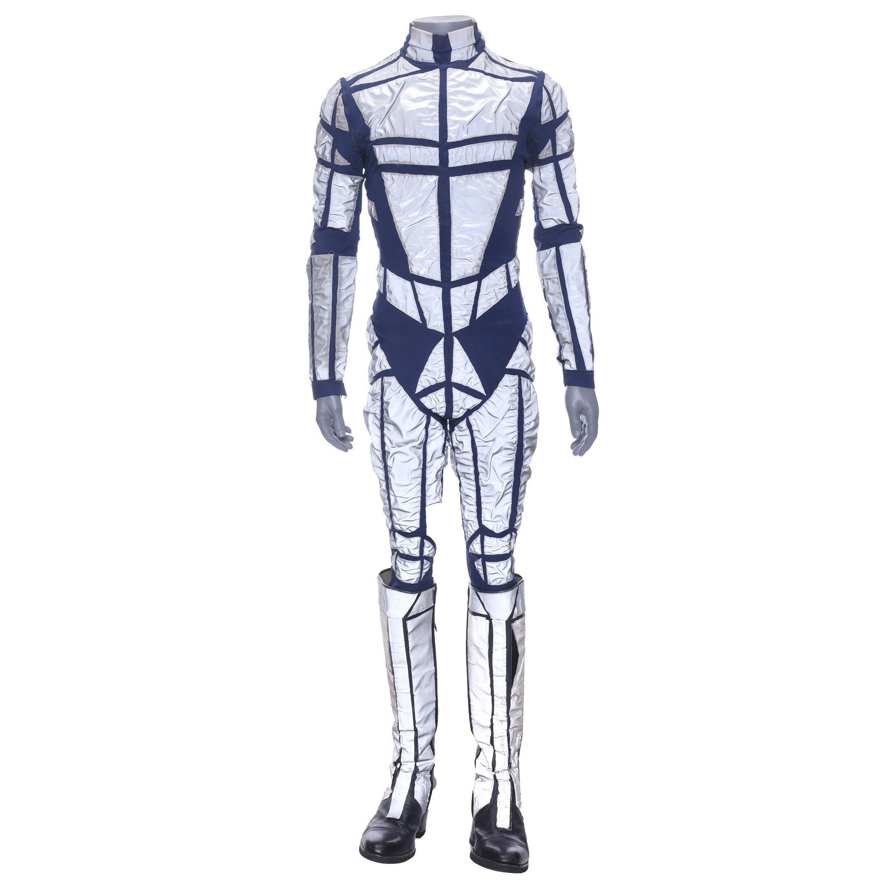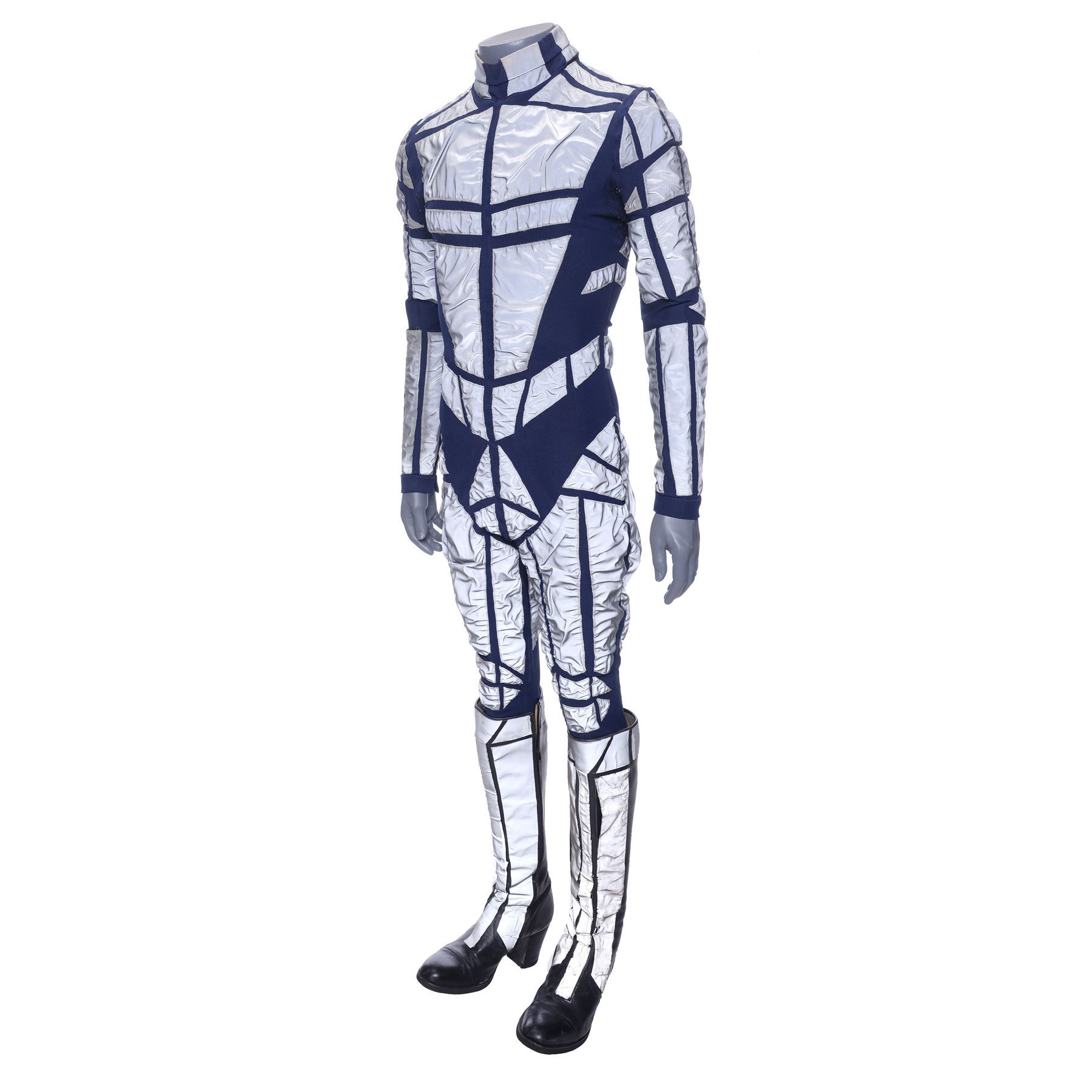 AUTOMAN (1983-1984) - Automan's (Chuck Wagner) Auto Suit with Breakaway AutoElectric Uniform - Automan's (Chuck Wagner) auto suit with breakaway AutoElectric uniform from the superhero series Automan. In the Season 1 episode "Zippers," Automan donned a breakaway electrician's uniform over his auto suit while undercover at a stripclub called Zippers.