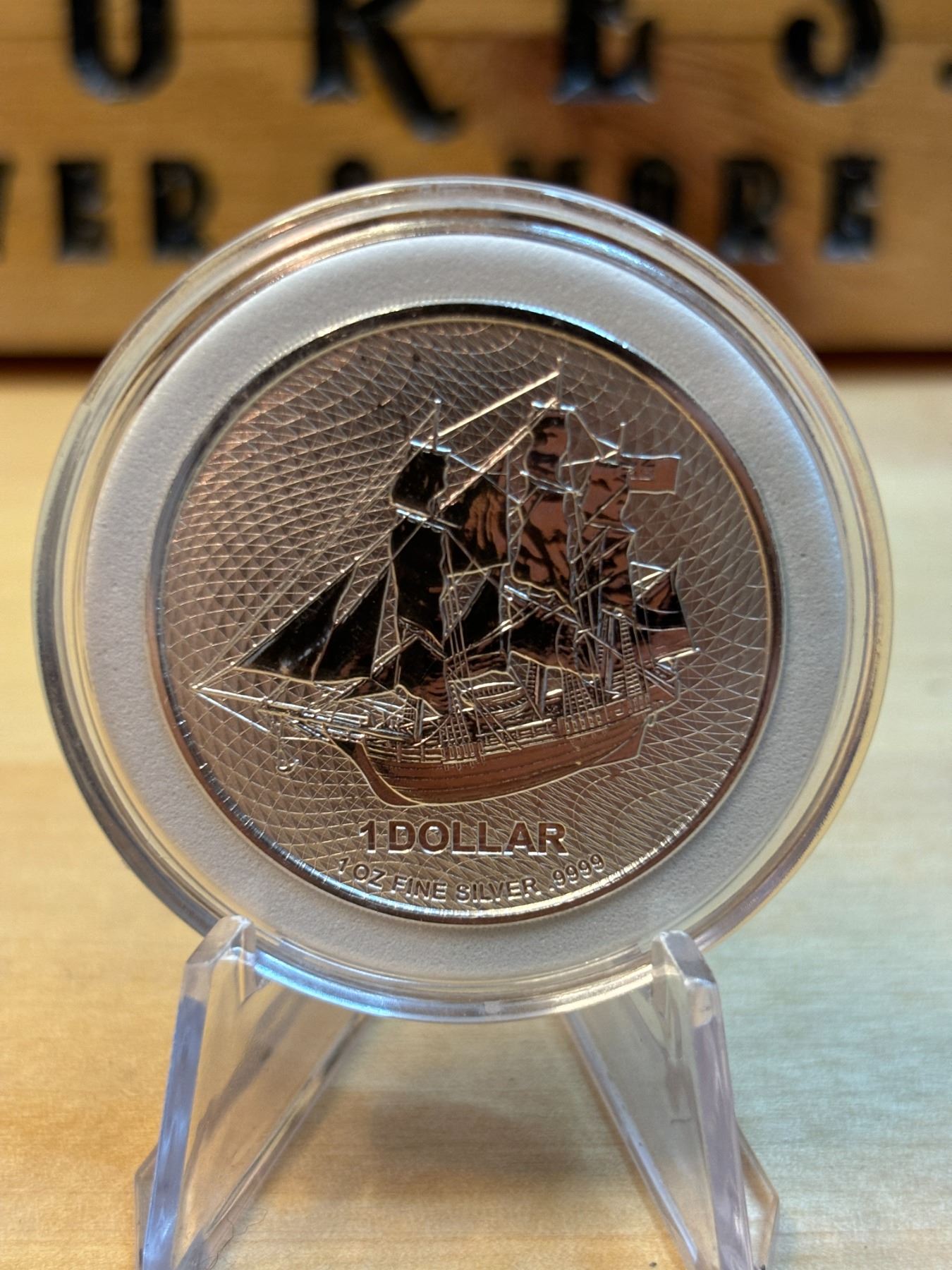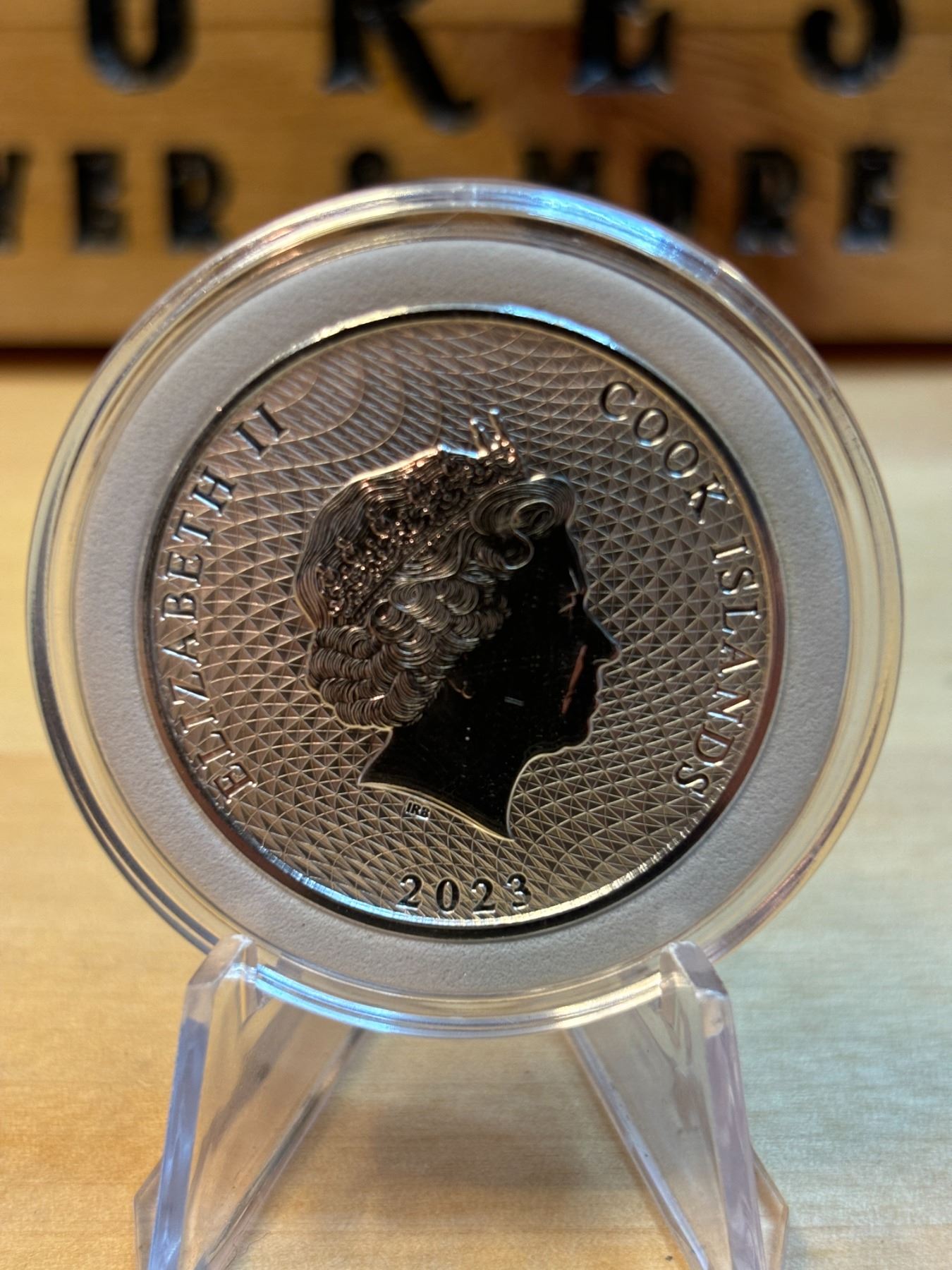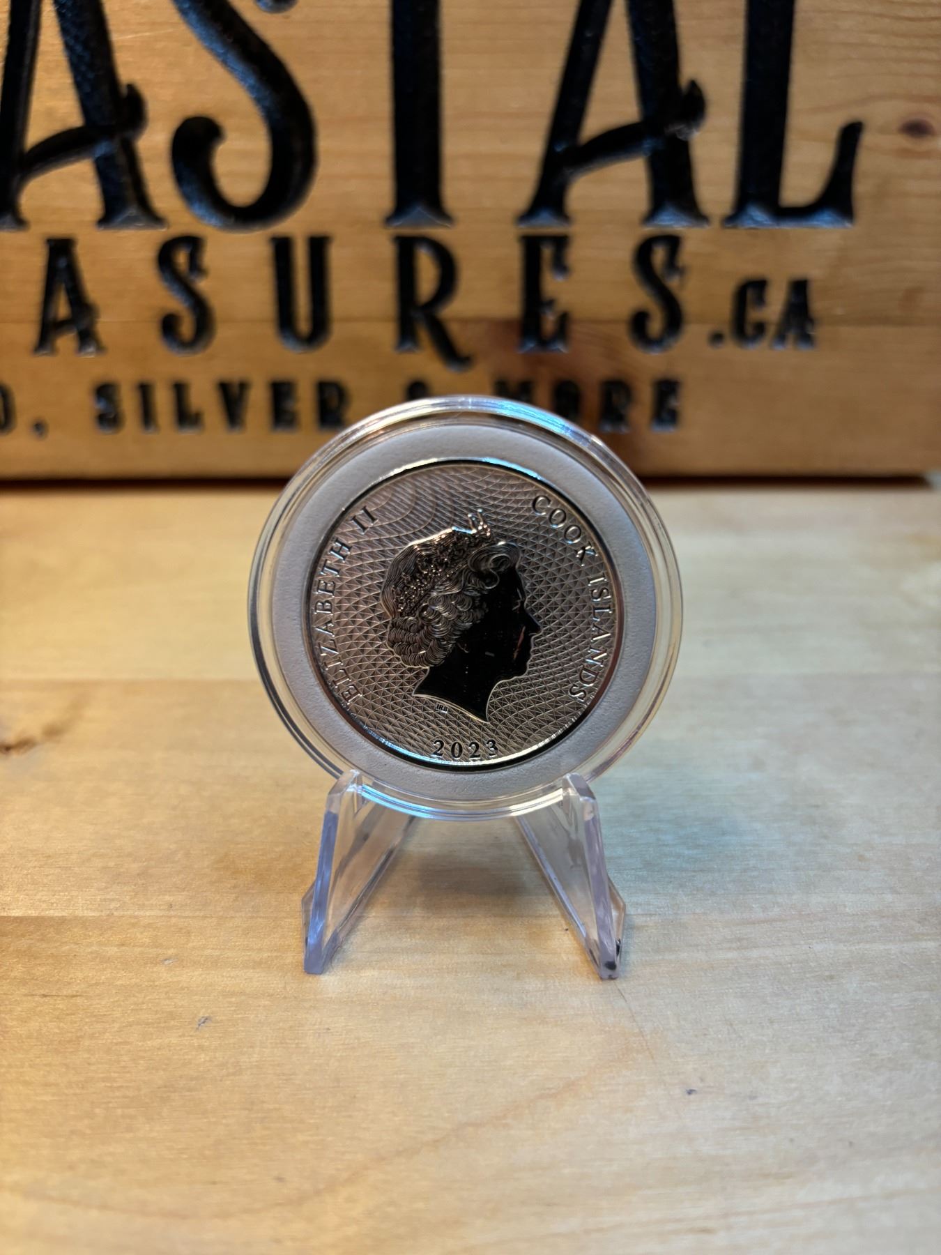 The 1 oz Cook Islands Silver Coin is a .999 fine silver coin weighing 1 ounce (31.1 grams). It is legal tender in the Cook Islands, though its value is mainly based on its silver content and collectible designs. These coins feature various themes, such as wildlife, historical events, and cultural symbols, making them popular with both investors and collectors. With a face value typically of $1 Cook Islands, the coin is recognized worldwide for its quality and craftsmanship.
