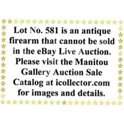 Lot #581 is an antique firearm than cannot be sold in the eBay Live Auction. Please see to Manitou Gallery Auction Sale Catalog at icollector.com fro images & details.