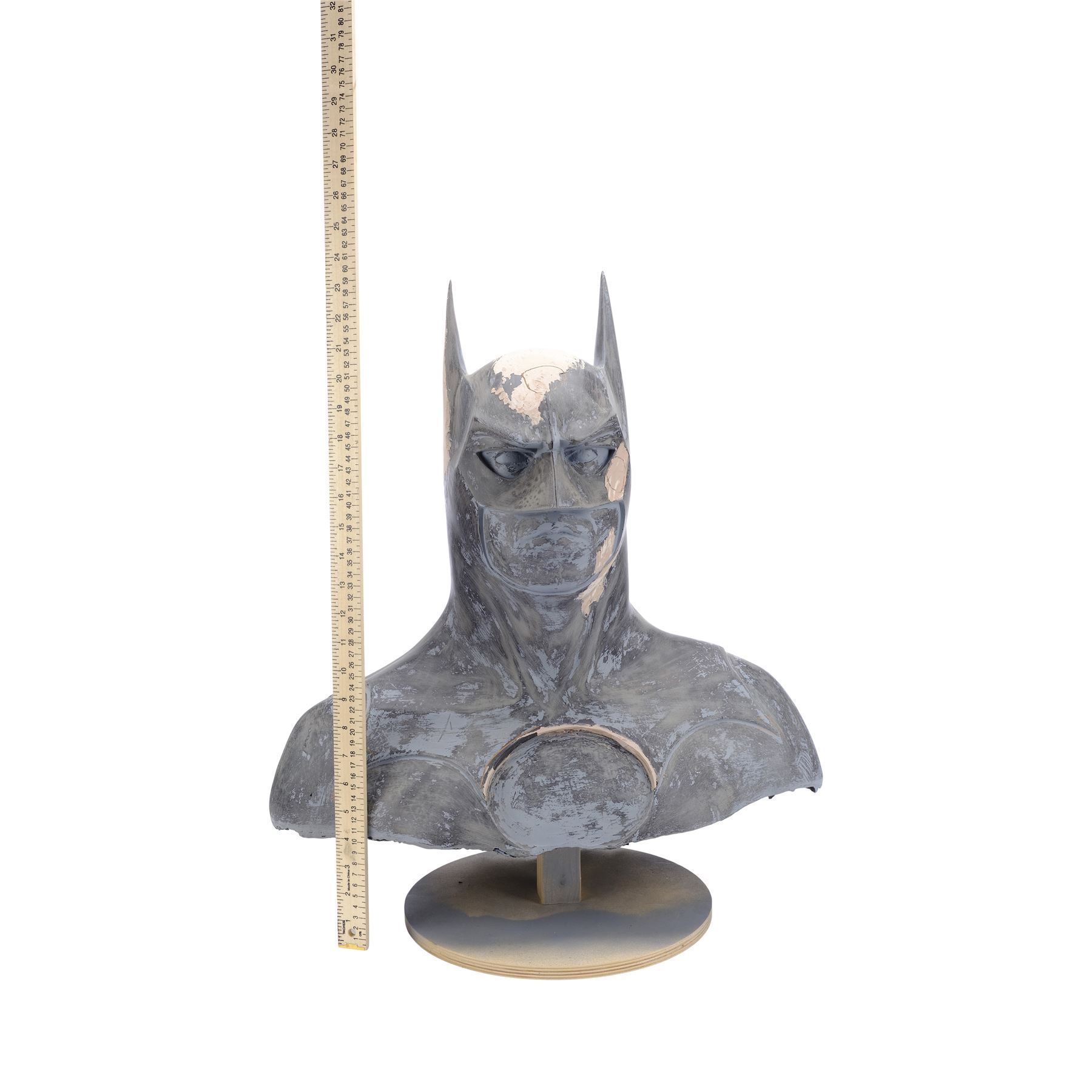 BATMAN RETURNS (1992) - Production-Made Batman (Michael Keaton) Cowl Cast Display and Mold - A production-made Batman (Michael Keaton) cowl cast display and mold from Tim Burton's superhero sequel Batman Returns. Production commissioned this bust for aid in the visualization of the cowl's design. The mold was created in the workshop during the time of production, but not in an official production capacity.