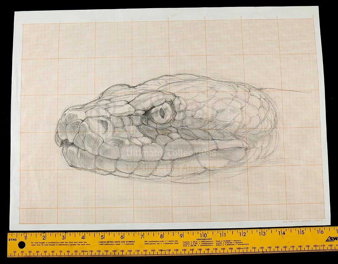 Lot # 587: CONAN THE BARBARIAN (1982) - Hand-Drawn Ron Cobb Snake Concept Sketch