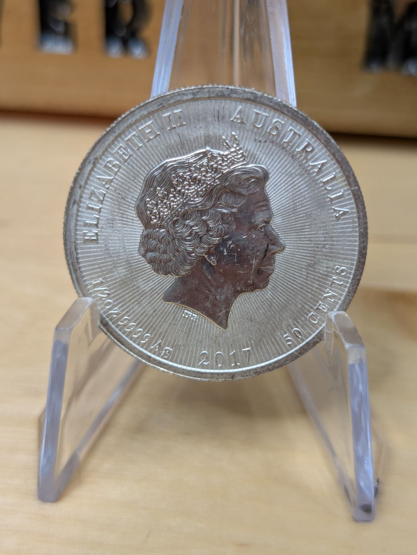 The 1/2 oz Australian "Victory in the Pacific" silver coin is made from .999 fine silver and commemorates the end of World War II in the Pacific. Issued by the Perth Mint, it features designs related to the historic victory and the significance of the Pacific campaign. The coin is popular with collectors due to its historical importance and limited mintage. Its value is based on the current silver price and collector interest.