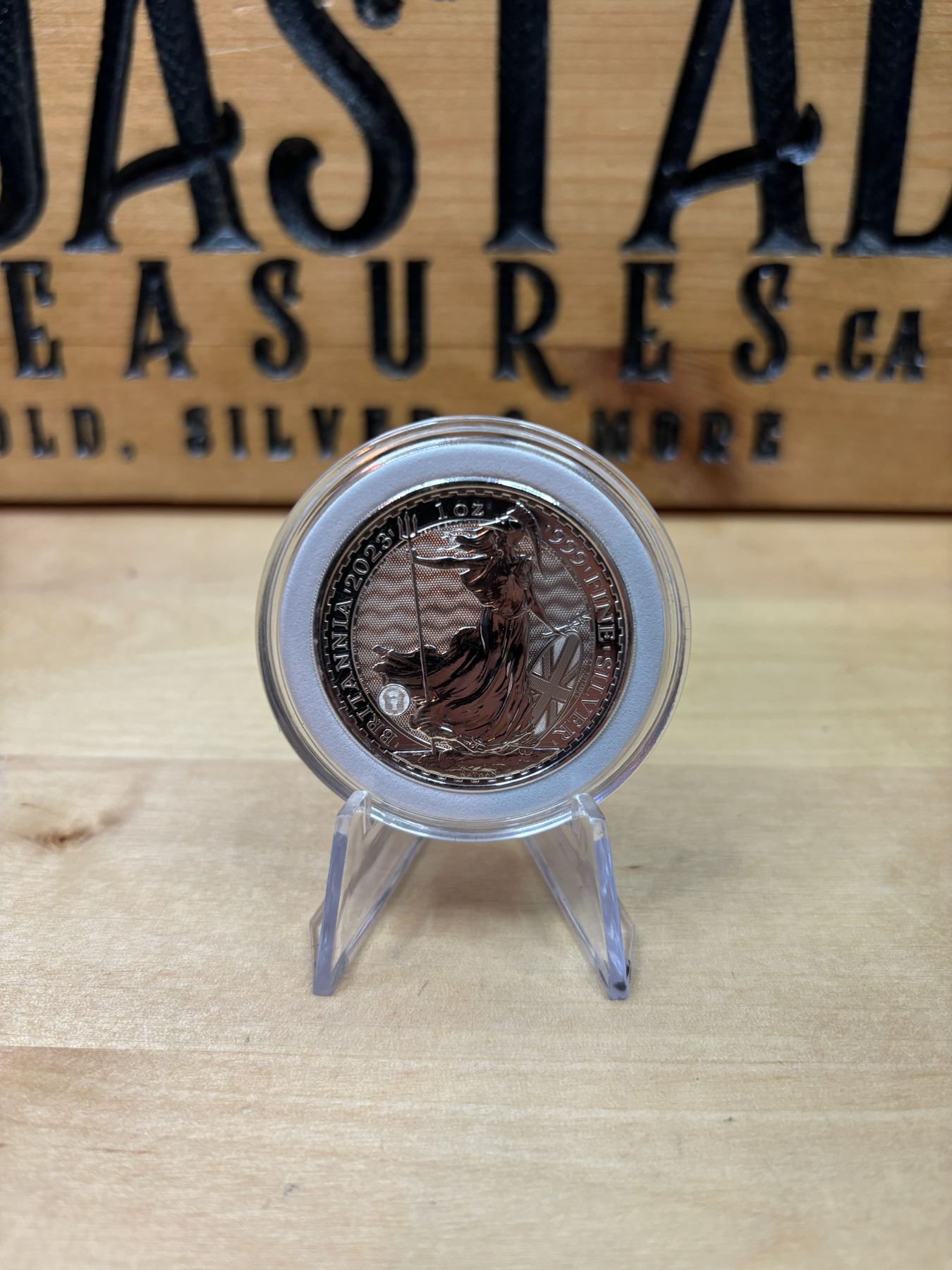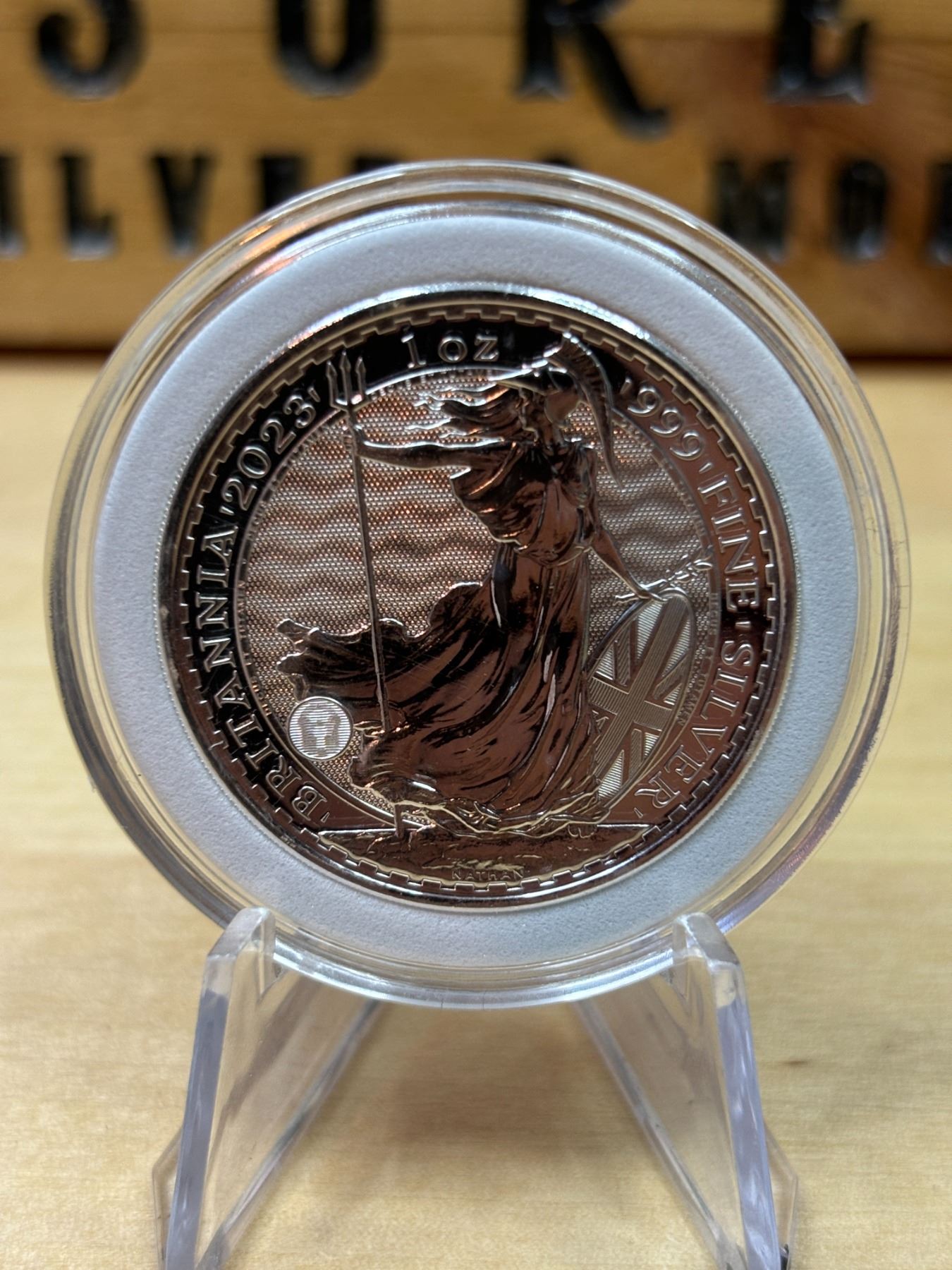 The 1 oz Britannia 2023 Silver Coin is part of the popular Britannia series, produced by the Royal Mint. It contains 1 ounce of .999 fine silver and features the iconic image of Britannia, symbolizing strength and resilience. The 2023 edition features an updated design with enhanced security features, such as a new background wave pattern and a holographic foil that changes in the light, making it more difficult to counterfeit. The coin is widely sought after by collectors and investors alike.