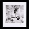 The black-and-white print shows both Gallagher brothers lying on a bed, with a female model standing. The image is printed on Hahnemuhle Photo Rag 308g cotton base paper and is labelled "Cigarettes & Alcohol #1". It is numbered "1/5 AP" and is hand-signed by Spencer Jones. Dimensions: 63.5 cm x 61 cm (25" x 24")