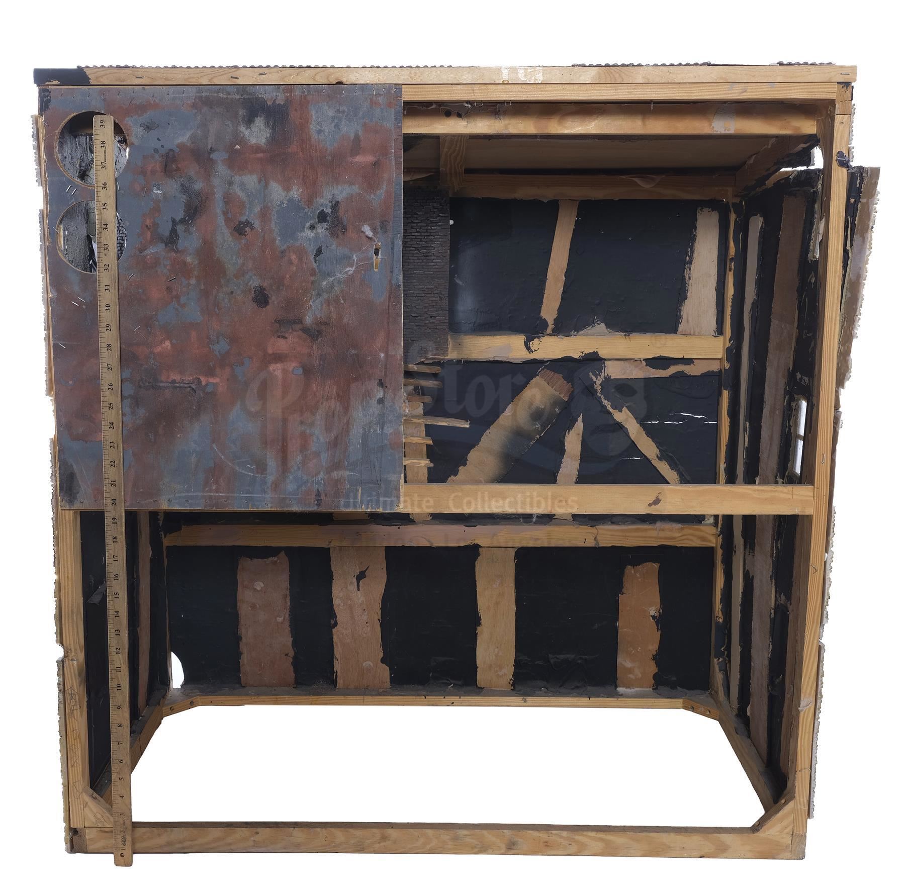 This lot will be auctioned on Wednesday, June 30th. The auction will begin at 9:00am PDT and lots are sold sequentially via live auctioneer; tune in to the live streaming broadcast on auction day to follow the pace. Note other lots in the auction may close on June 29th or July 1st. An oversized destroyed warehouse model miniature from Alex Proyas' action fantasy The Crow. Detroit was set aflame in the title sequence. The effect was created using a combination of model miniatures and special projection technology. This model miniature features a resin exterior painted to resemble collapsing brickwork with metal details and an internal wood foundation by effects company Dream Quest Images (DQI). Production has caved in the roof and applied minor scrapes throughout, but the model remains in otherwise good overall condition. Dimensions: 42" x 42" x 42" (106.75 cm x 106.75 cm x 106.75 cm) Special shipping required; see notice in the Buyer's Guide. Estimate: $1,500 - 2,500