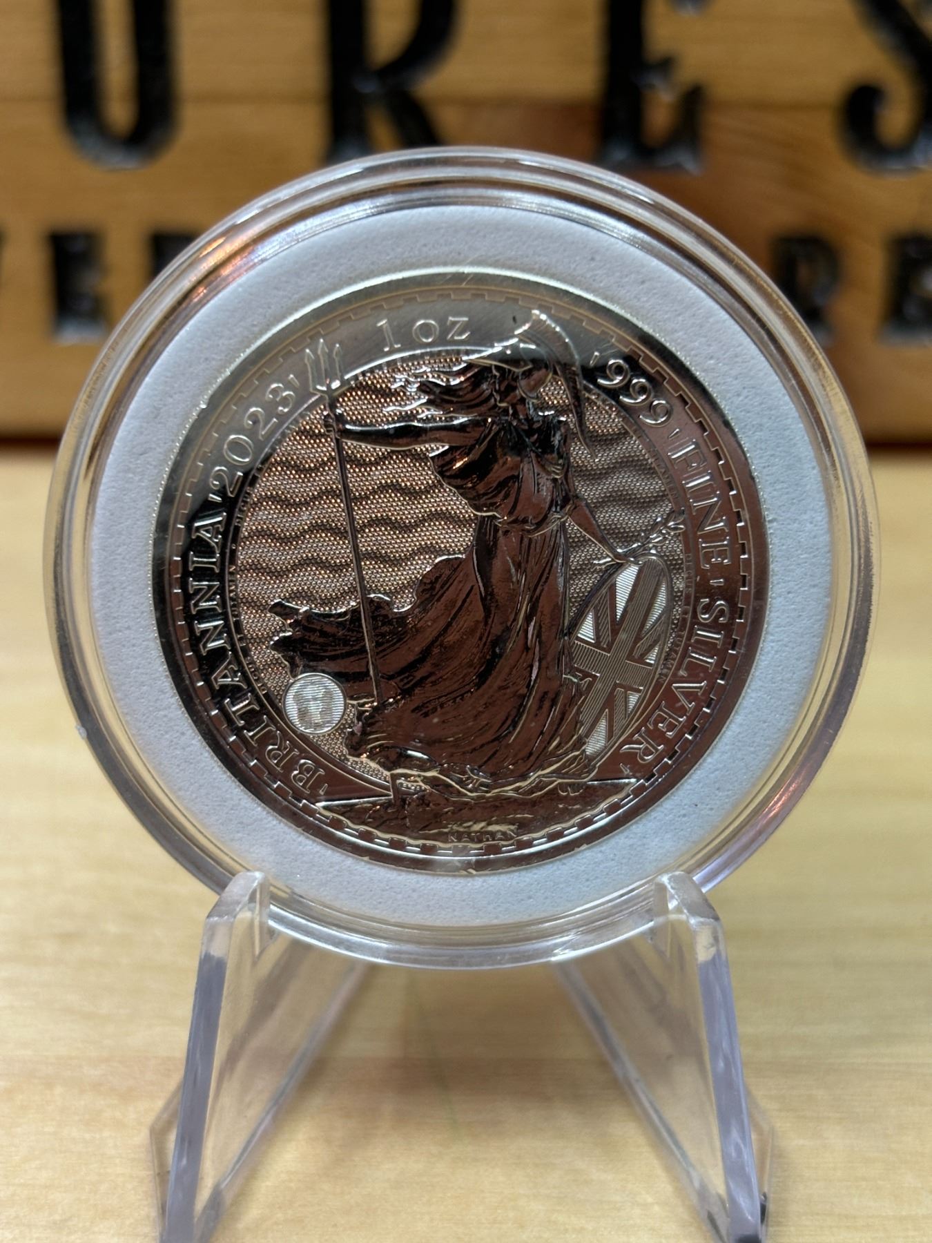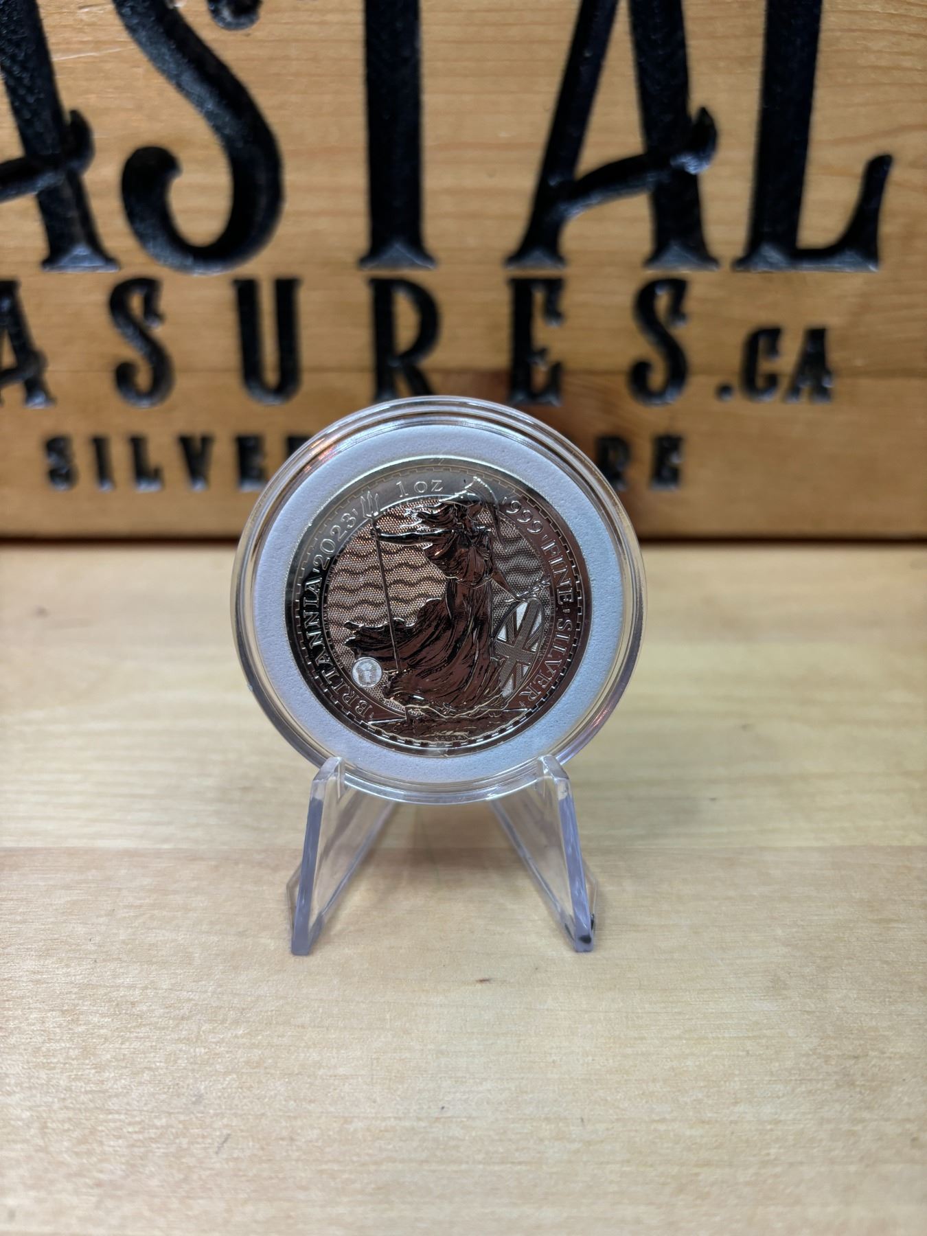 The 1 oz Britannia 2023 Silver Coin is part of the popular Britannia series, produced by the Royal Mint. It contains 1 ounce of .999 fine silver and features the iconic image of Britannia, symbolizing strength and resilience. The 2023 edition features an updated design with enhanced security features, such as a new background wave pattern and a holographic foil that changes in the light, making it more difficult to counterfeit. The coin is widely sought after by collectors and investors alike.