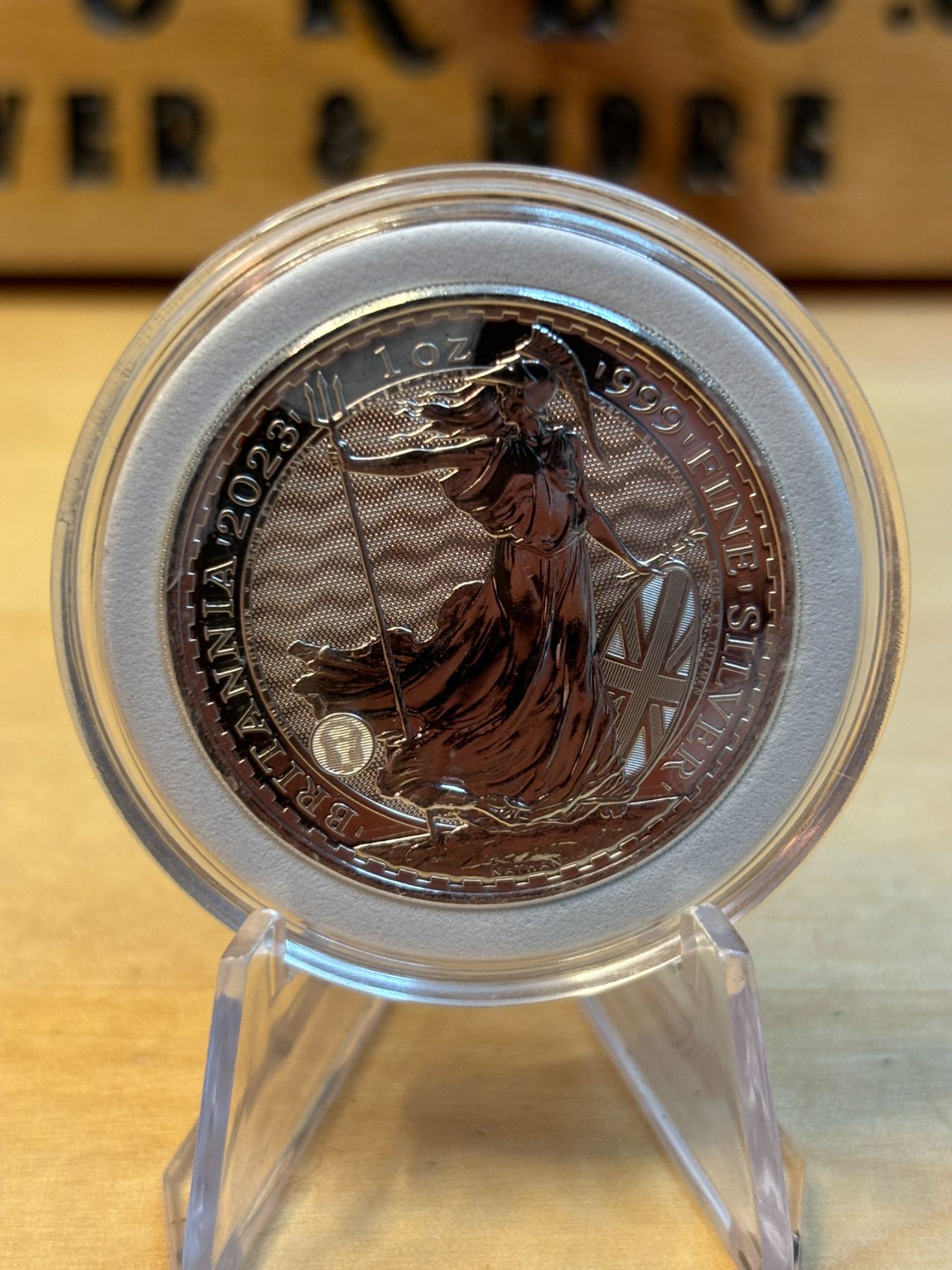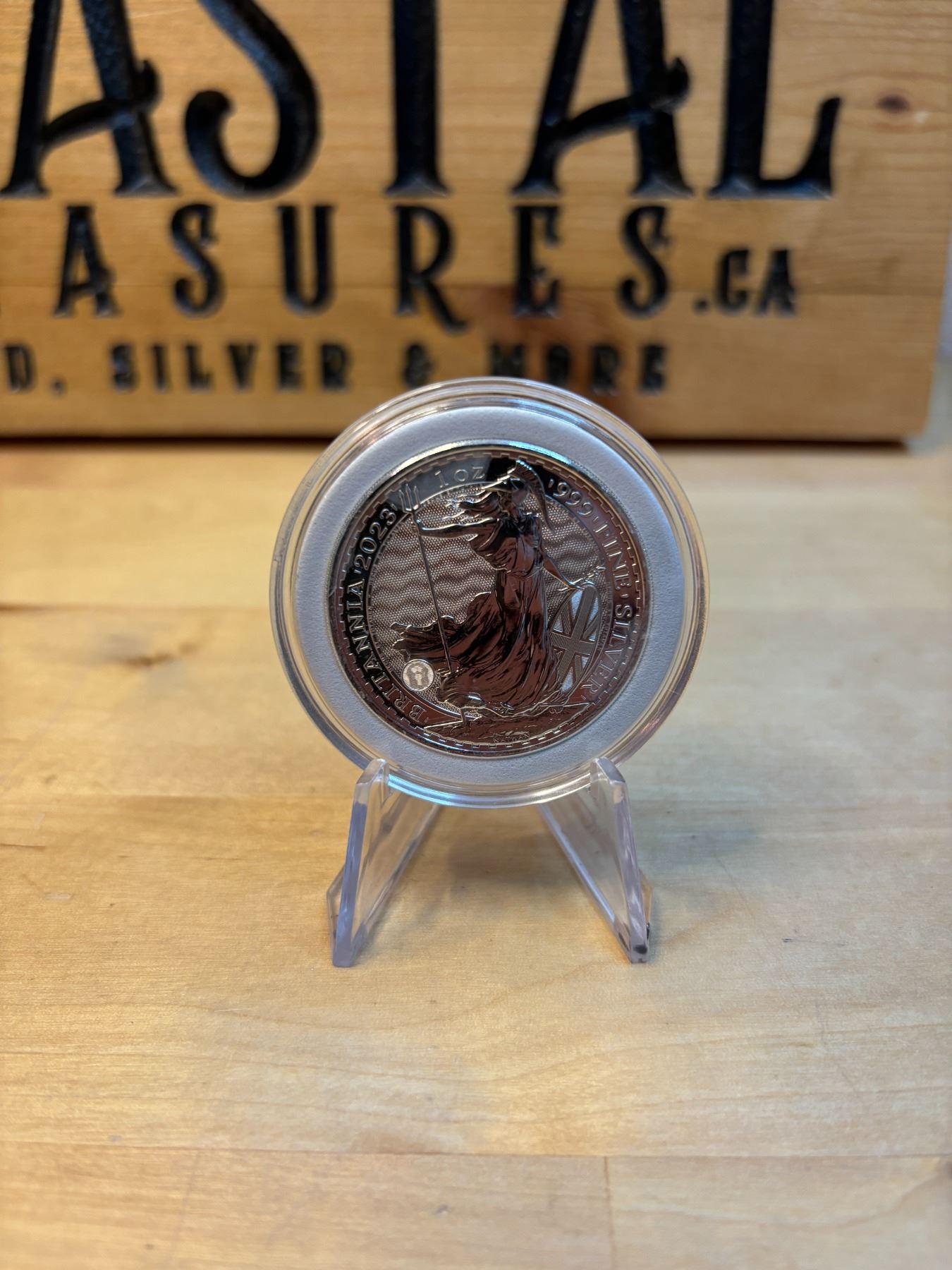 The 1 oz Britannia 2023 Silver Coin is part of the popular Britannia series, produced by the Royal Mint. It contains 1 ounce of .999 fine silver and features the iconic image of Britannia, symbolizing strength and resilience. The 2023 edition features an updated design with enhanced security features, such as a new background wave pattern and a holographic foil that changes in the light, making it more difficult to counterfeit. The coin is widely sought after by collectors and investors alike.