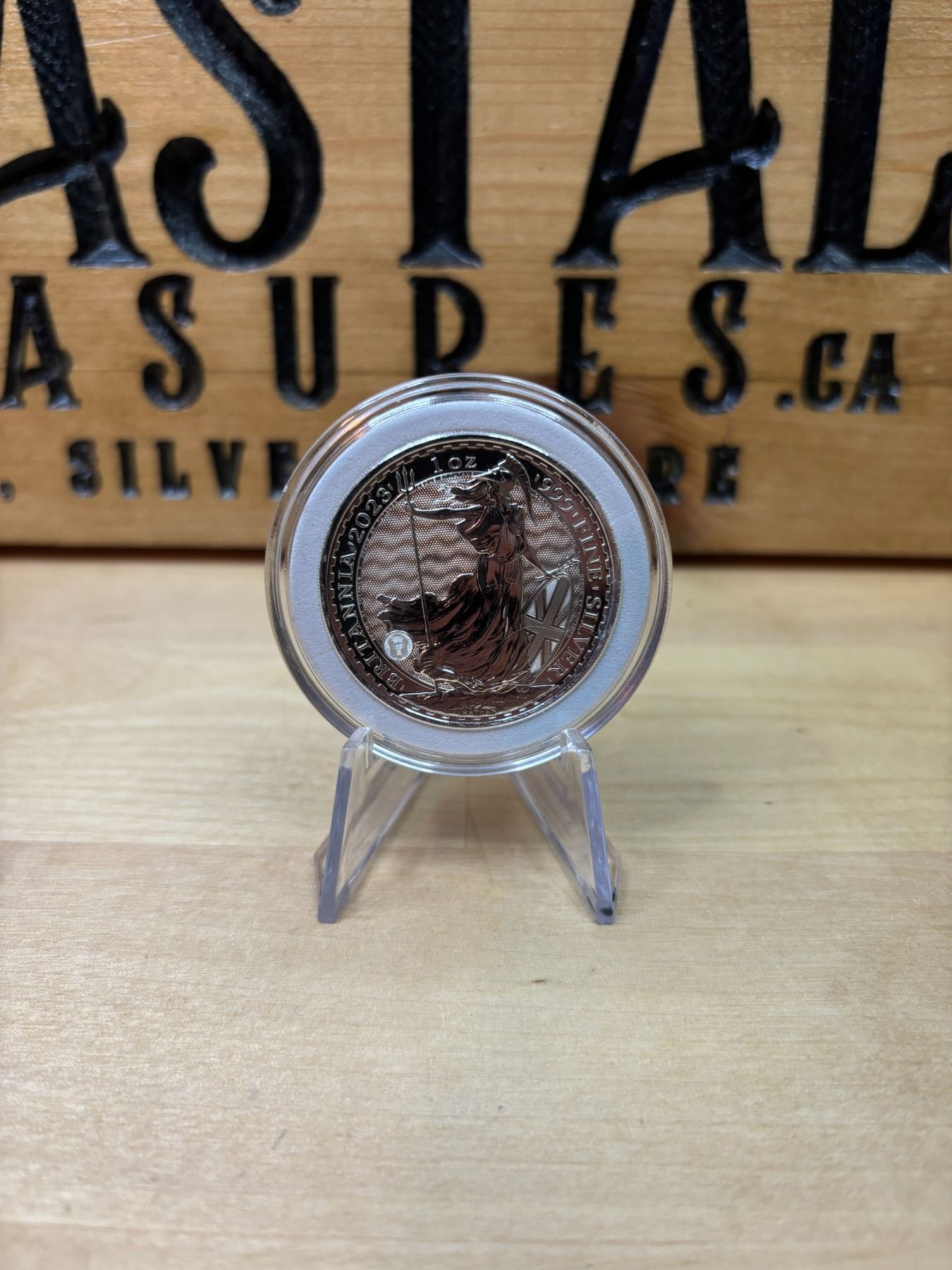 The 1 oz Britannia 2023 Silver Coin is part of the popular Britannia series, produced by the Royal Mint. It contains 1 ounce of .999 fine silver and features the iconic image of Britannia, symbolizing strength and resilience. The 2023 edition features an updated design with enhanced security features, such as a new background wave pattern and a holographic foil that changes in the light, making it more difficult to counterfeit. The coin is widely sought after by collectors and investors alike.