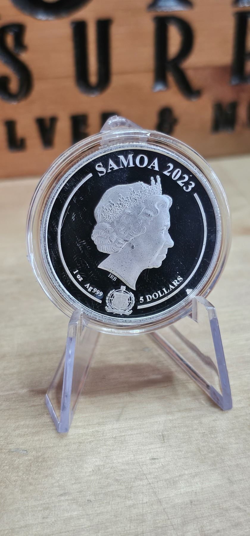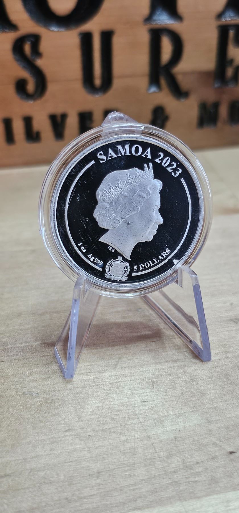 The 1 Oz Silver DC Comics Superman Coin from Samoa, 2023, is crafted from .999 fine silver and features a vibrant design of the iconic superhero. This limited-edition coin is a must-have for comic fans and collectors alike.