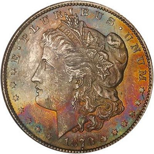 1878-CC Morgan Dollar. Deep, mottled toning that includes warm golds and purples with lively iridescence. (#7080)