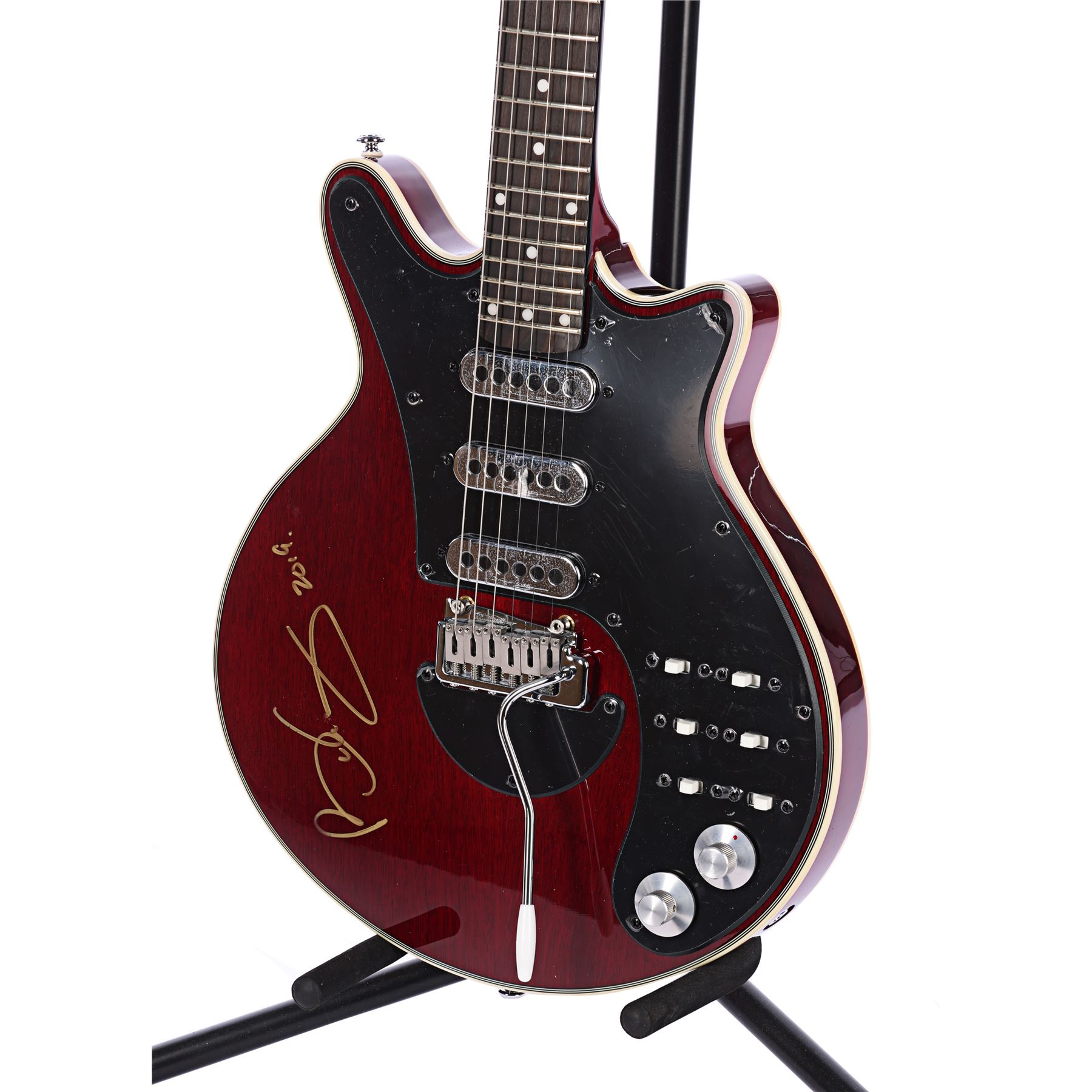 An autographed limited edition BMG Special guitar inspired by Brian May's legendary electric guitar the Red Special, which he used throughout his career with Queen.