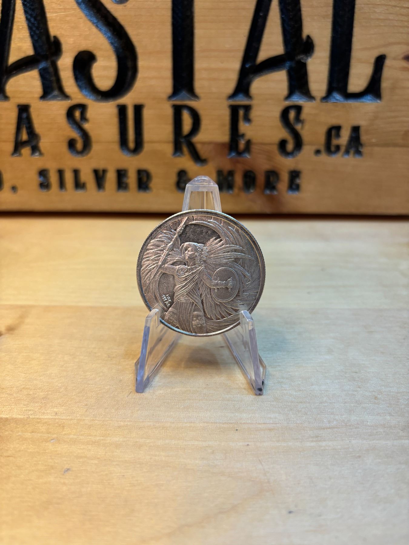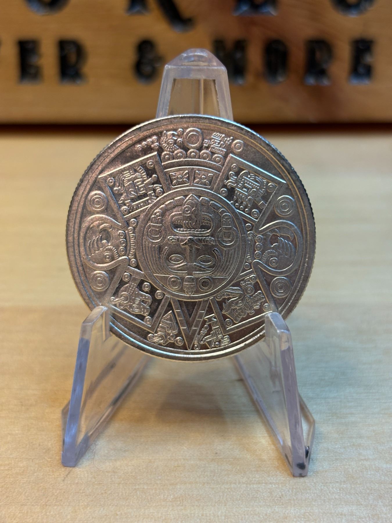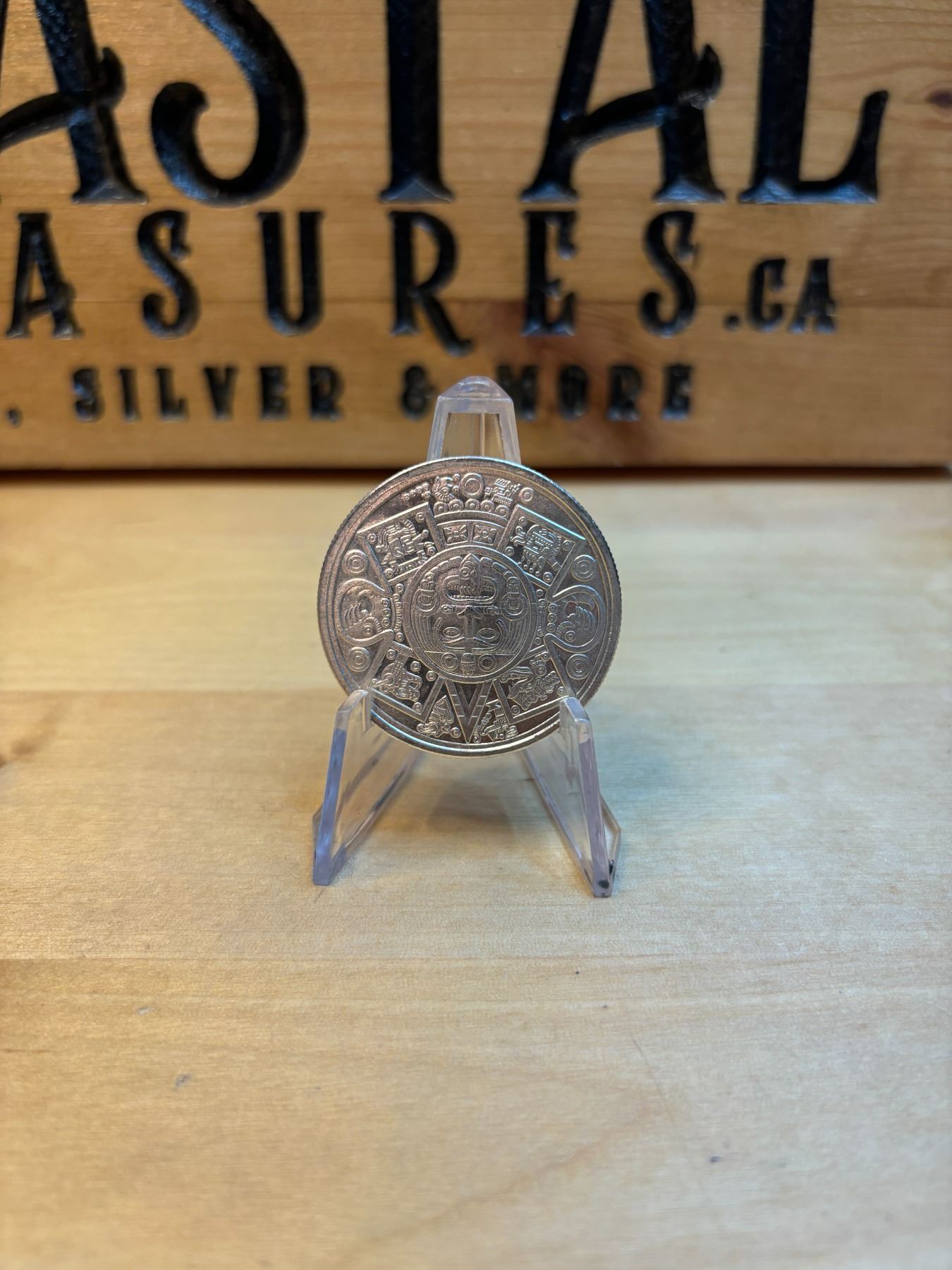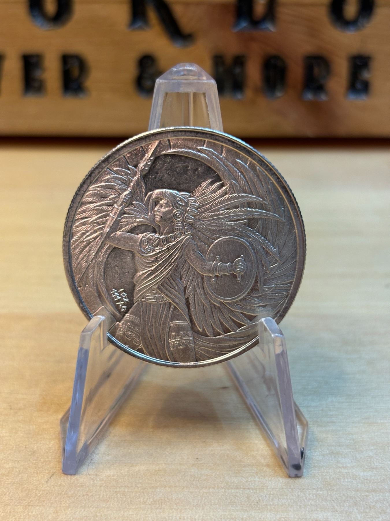 Eagle Warriors Silver Coin is a collectible silver coin that typically contains 1 ounce of .999 fine silver. The design features the Aztec Eagle Warriors, elite soldiers in Aztec society who wore eagle feathers and were revered for their bravery. The coin often depicts an Aztec warrior in full regalia, including a feathered headdress and armor, holding weapons like a spear or shield. This coin is part of a series celebrating Aztec culture and history, and it's popular among collectors due to its rich cultural theme and the value of its silver content.