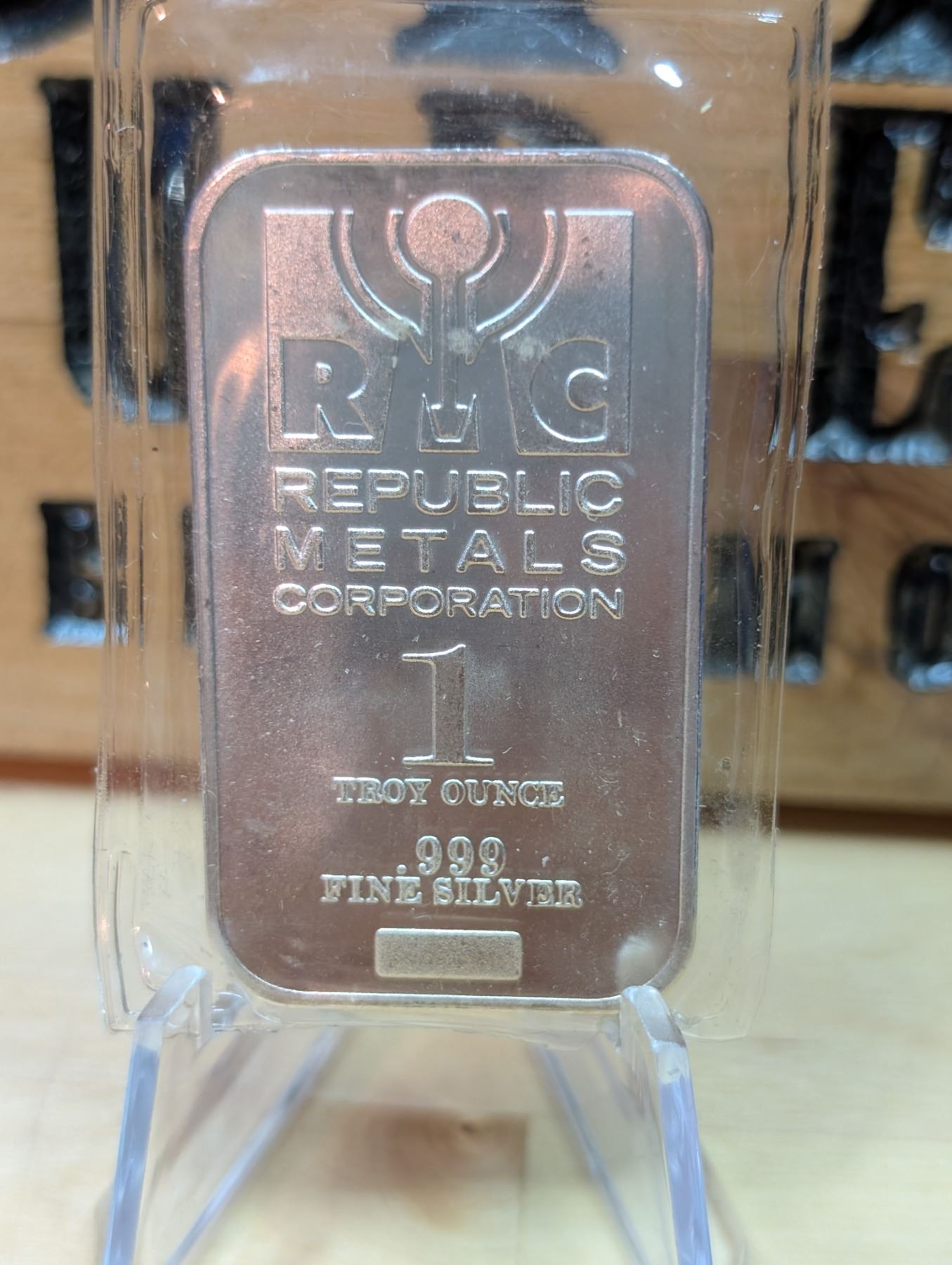The 1 oz RMC Silver Bar is a 1-ounce bar made of 99.9% pure silver, produced by Republic Metals Corporation (RMC). These bars are well-known in the precious metals market for their high-quality craftsmanship and are often stamped with the RMC logo, weight, purity, and serial number for authenticity. The compact 1-ounce size makes it a popular choice for silver investors looking for a convenient and reliable way to accumulate silver. These bars are also collectible due to the trusted RMC brand and their simple yet elegant design.