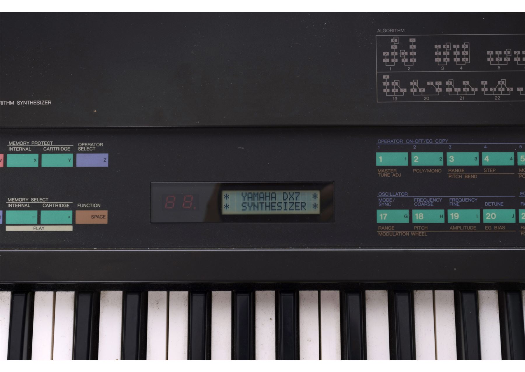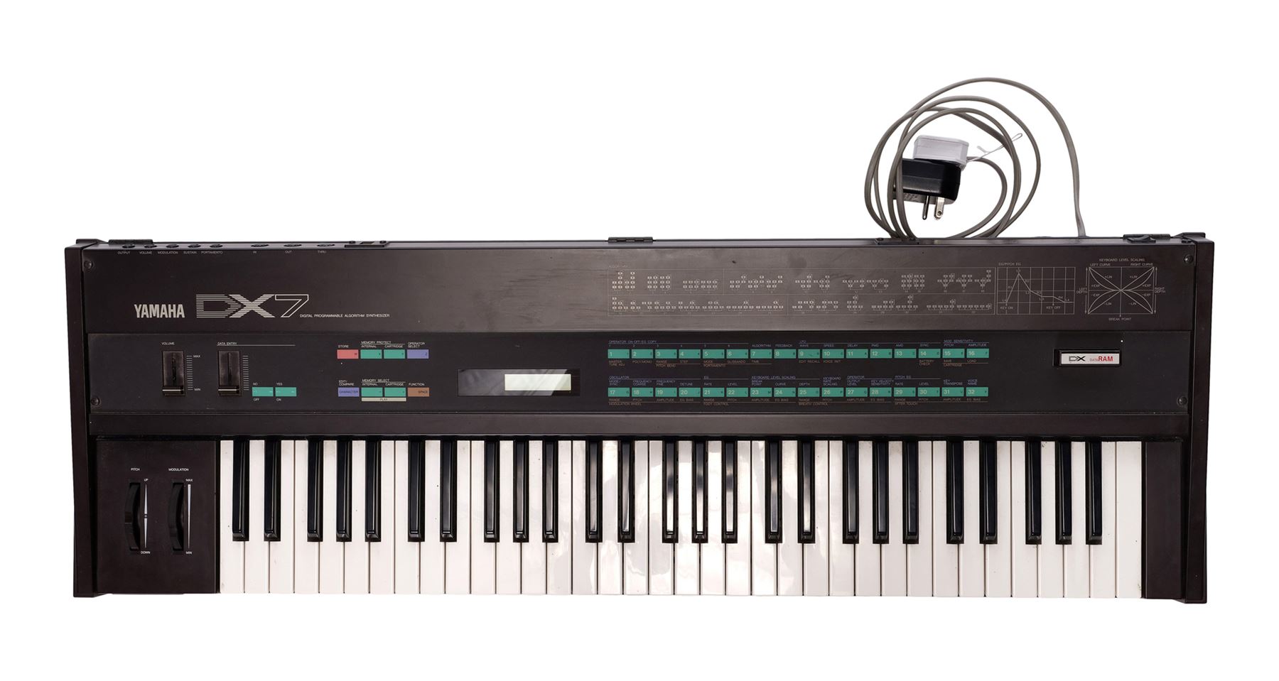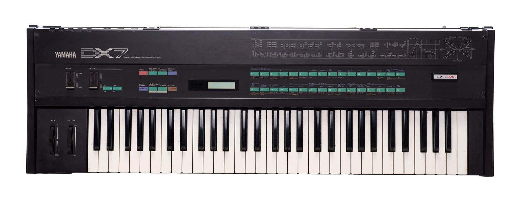 A Yamaha DX7 synthesiser that once belonged to Bill Wyman of the Rolling Stones. The DX7's FM synthesis method allowed it to generate a wider variety of unique sounds, which led to the instrument's long-held popularity.