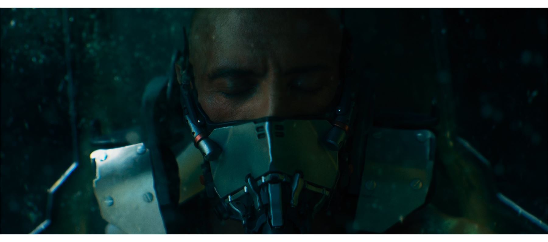 BLACK ADAM (2022) - Rebreather Prison Mask - A rebreather prison mask from Jaume Collet-Serra's action fantasy Black Adam. Teth Adam (Dwayne Johnson) was captured by the Justice Society and placed underwater in suspended animation with a rebreather.