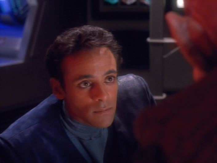 Dr. Julian Bashir's (Alexander Siddig) civilian attire from the science-fiction sequel television series Star Trek: Deep Space Nine. In the Season 2 episode "The Siege," Bashir and several other Starfleet officers remained aboard the recently evacuated Deep Space 9, wore civilian clothing and hid in access conduits in an attempt to stop the Bajoran extremist group known as the Circle (or the Alliance for Global Unity) who were attempting to take over the space station.