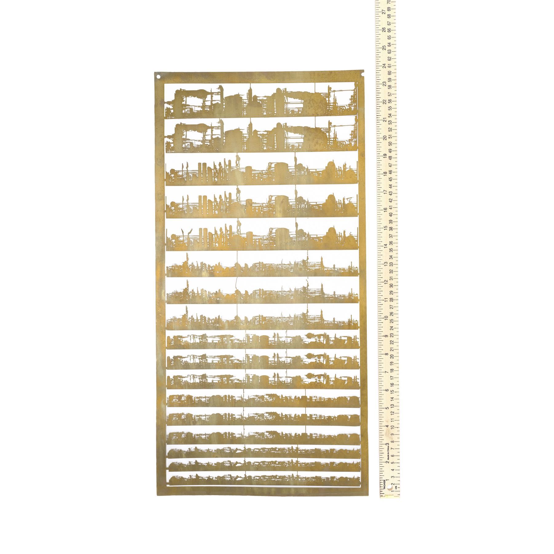 BLADE RUNNER (1982) - Production-Made Small-Scale Hades Refinery Etched Brass Sheet - A small-scale Hades refinery etched brass sheet from the production of Ridley Scott's sci-fi classic Blade Runner. Model miniatures etched into brass were used to depict the hellish Los Angeles of 2019, including the flaming refineries that dotted its cityscape in the so-called "Hades landscape" sequence.