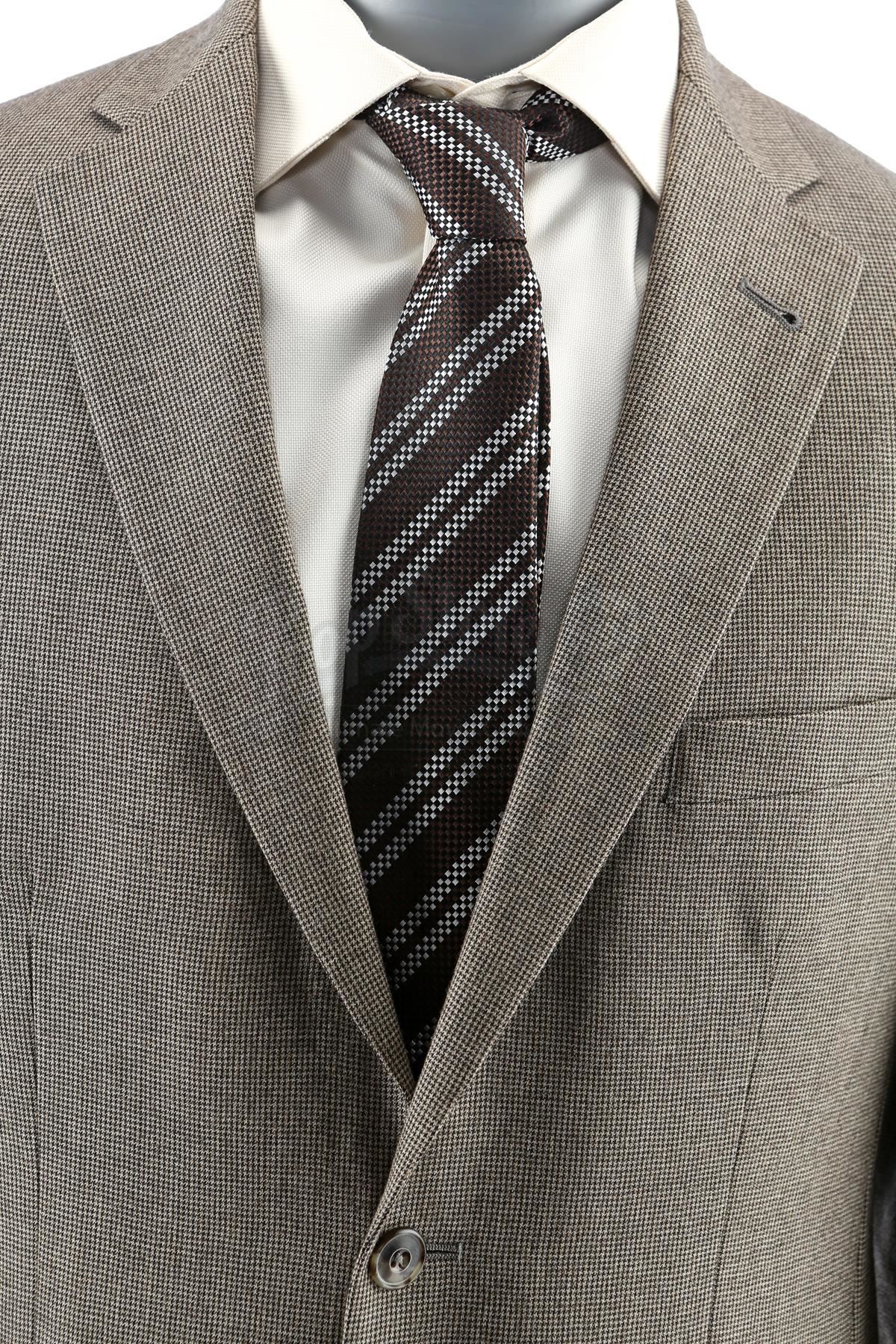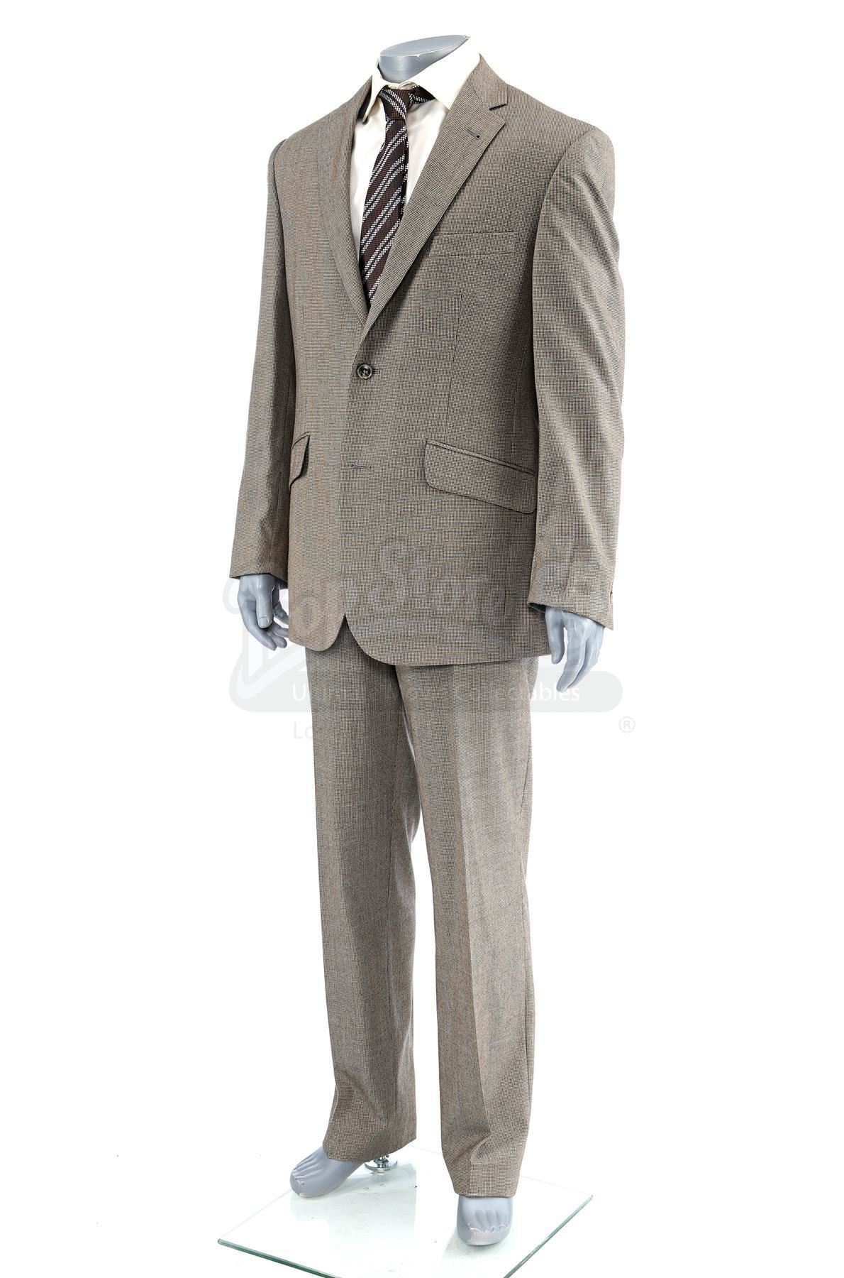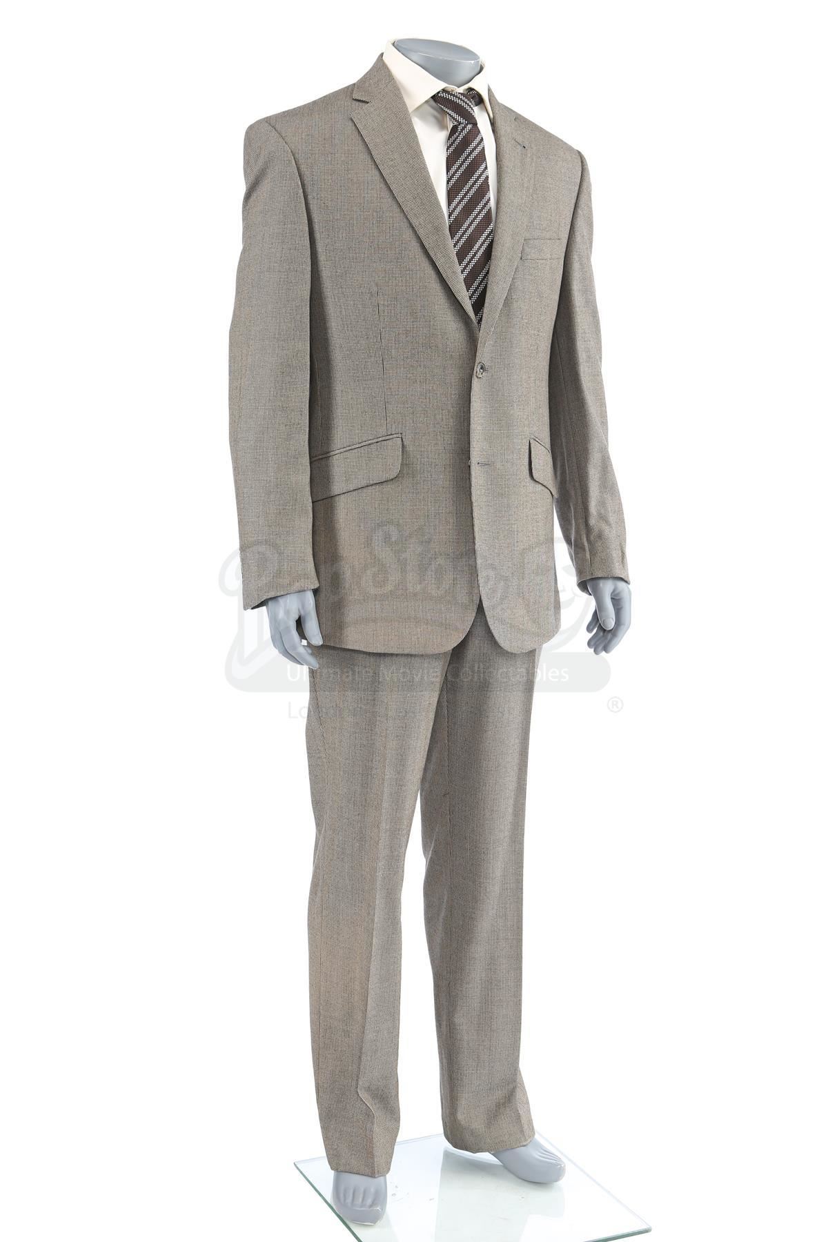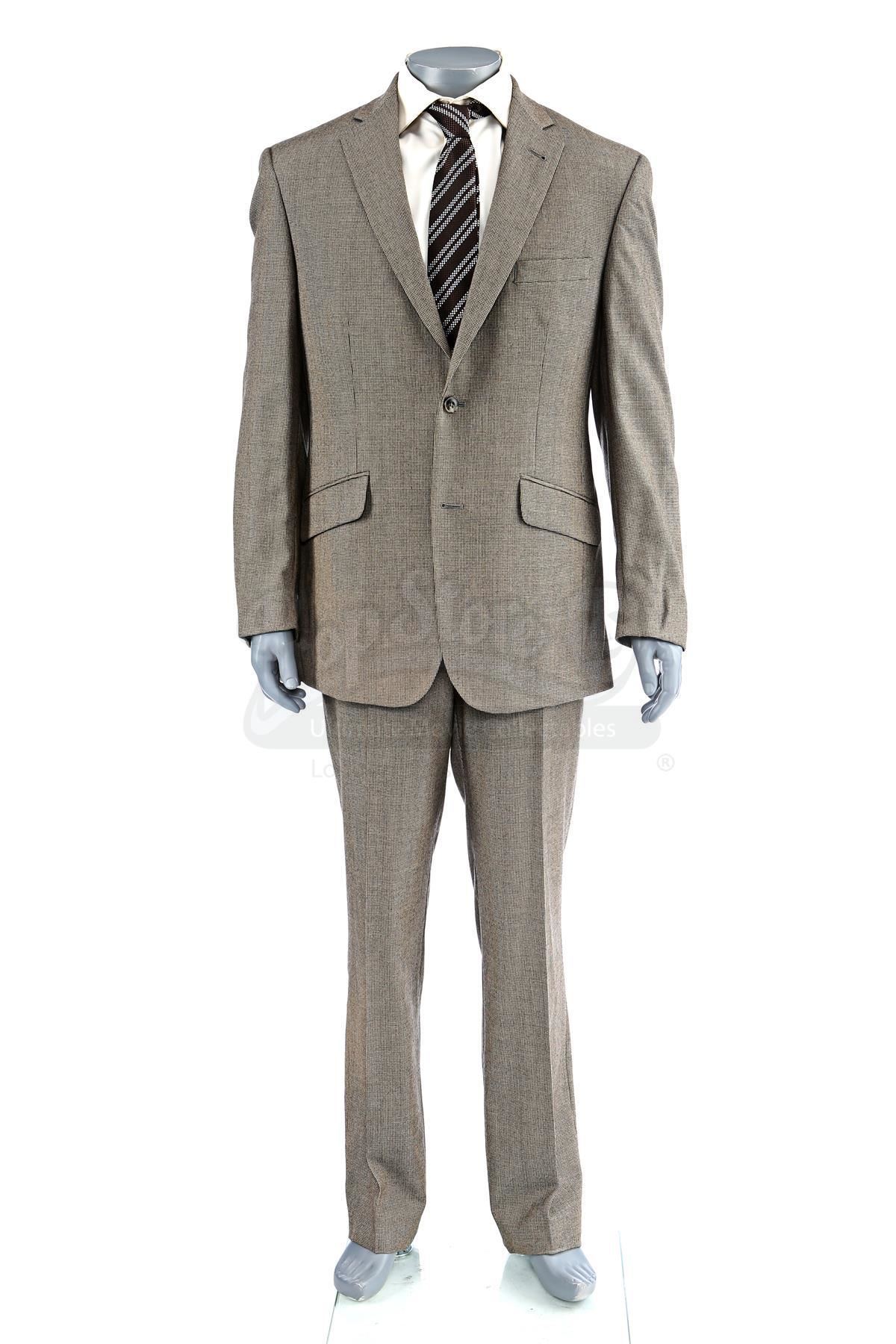 Thomas 'Tom' Ridenhour’s bargaining costume from the episode ‘On and On’ (207) of Marvel's Luke Cage. In the episode, Ridenhour wears his costume while trying to make a deal with Mariah Dillard to give up Hernan ‘Shades’ Alvarez. This lot consists of a gray wool suit jacket and pants, an eggshell-color cotton dress shirt, and a brown and white striped silk tie. It is in good overall condition with minor signs of wear from production.