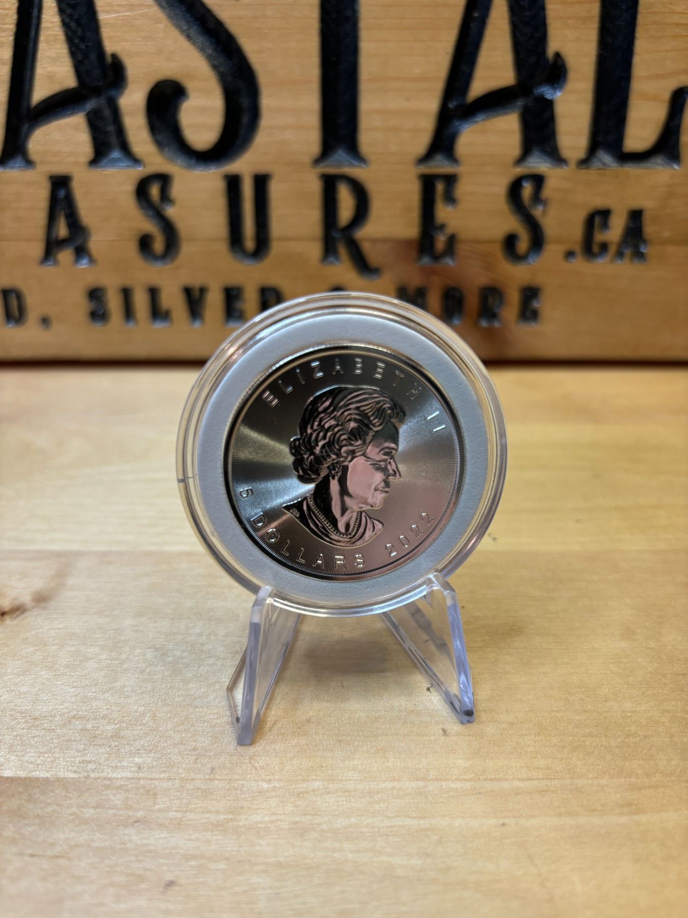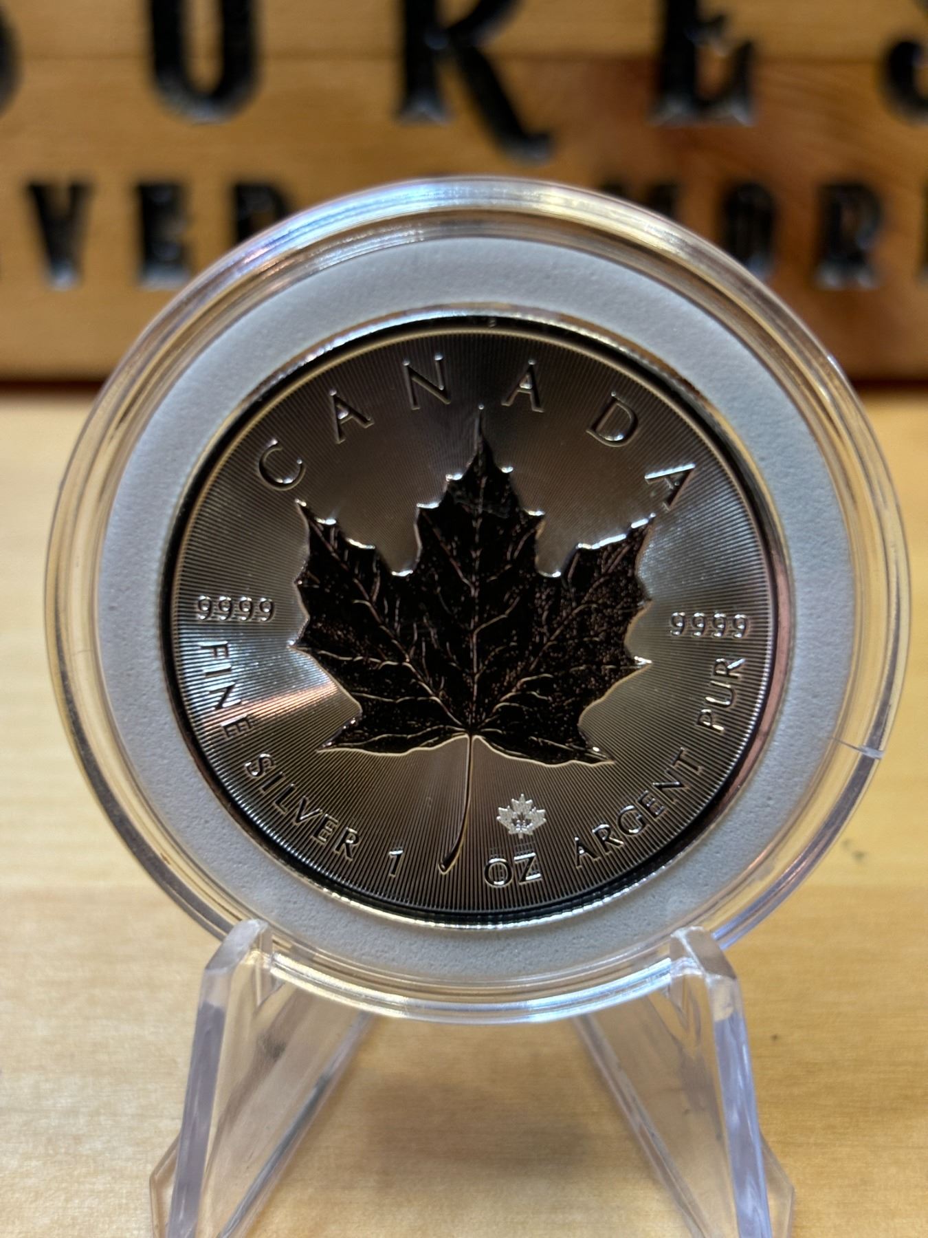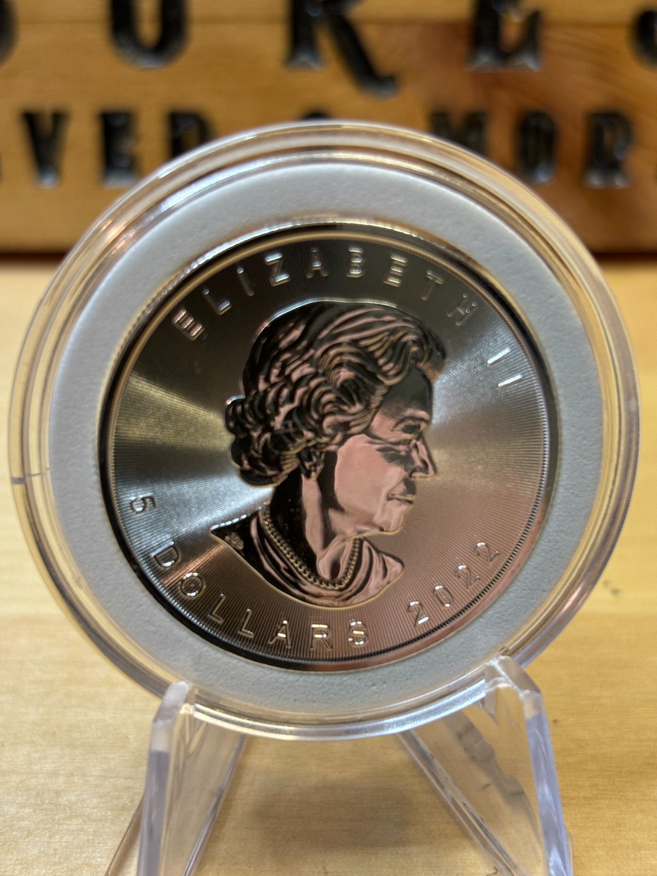The 1 oz Canadian Maple 2022 Silver Coin is a highly sought-after bullion coin produced by the Royal Canadian Mint. Struck from 1 ounce of .9999 fine silver, it features the iconic Maple Leaf design on the reverse, symbolizing Canada's national pride. The coin’s obverse typically showcases the effigy of Queen Elizabeth II, reflecting Canada’s status as part of the Commonwealth. The 2022 edition continues the legacy of the Canadian Maple Leaf series, renowned for its purity, intricate design, and quality. These coins are popular among collectors and investors for their beauty and the trust that comes with the Royal Canadian Mint's reputation.